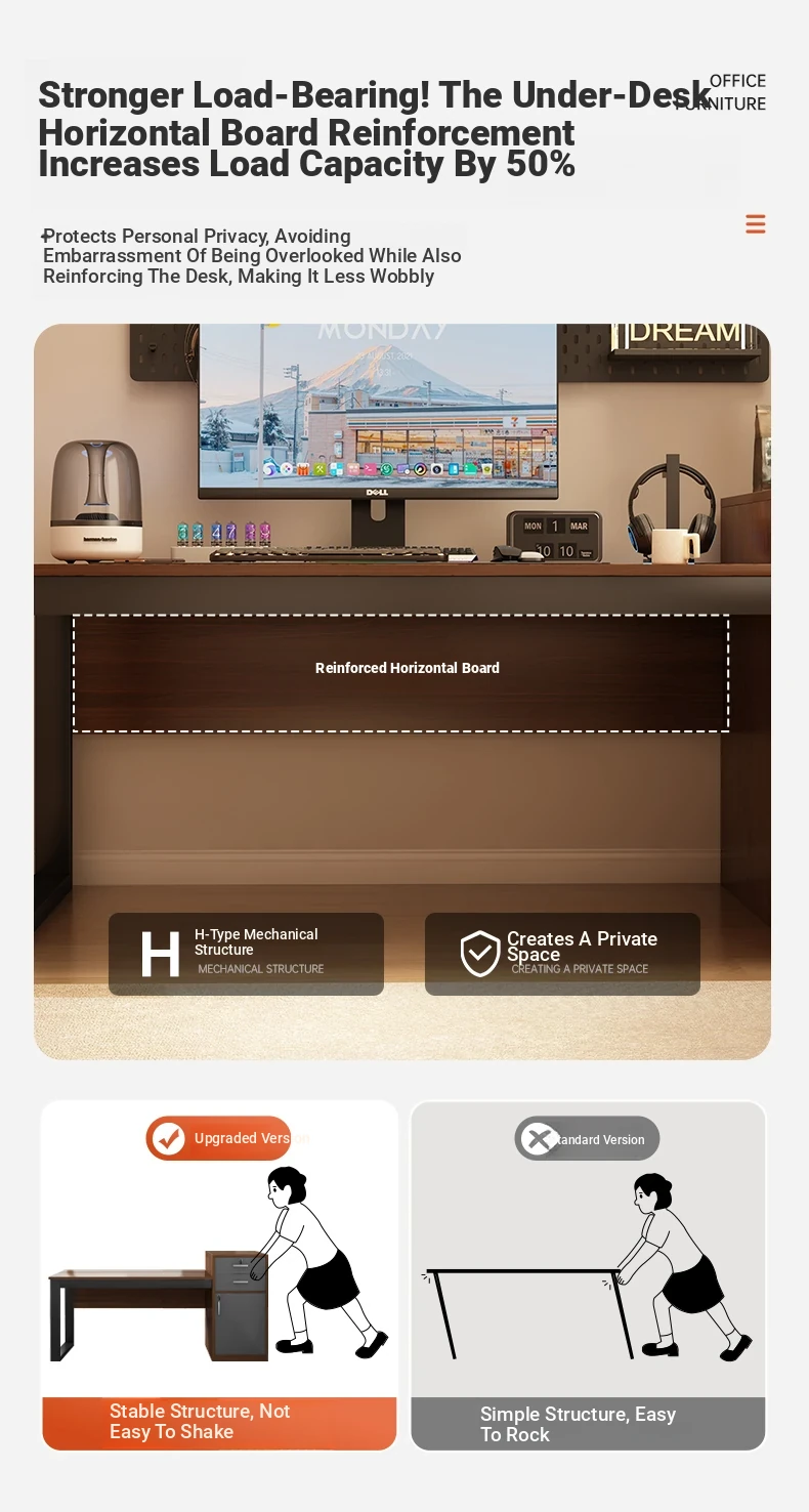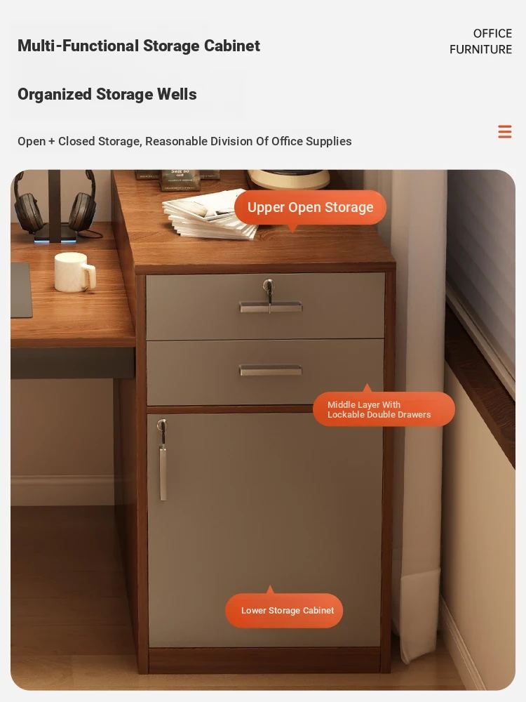 [Liftable Electric Competition Chair Combination] Walnut Color 68.11in*23.62in (Two Draw One Cabinet Super Capacity)