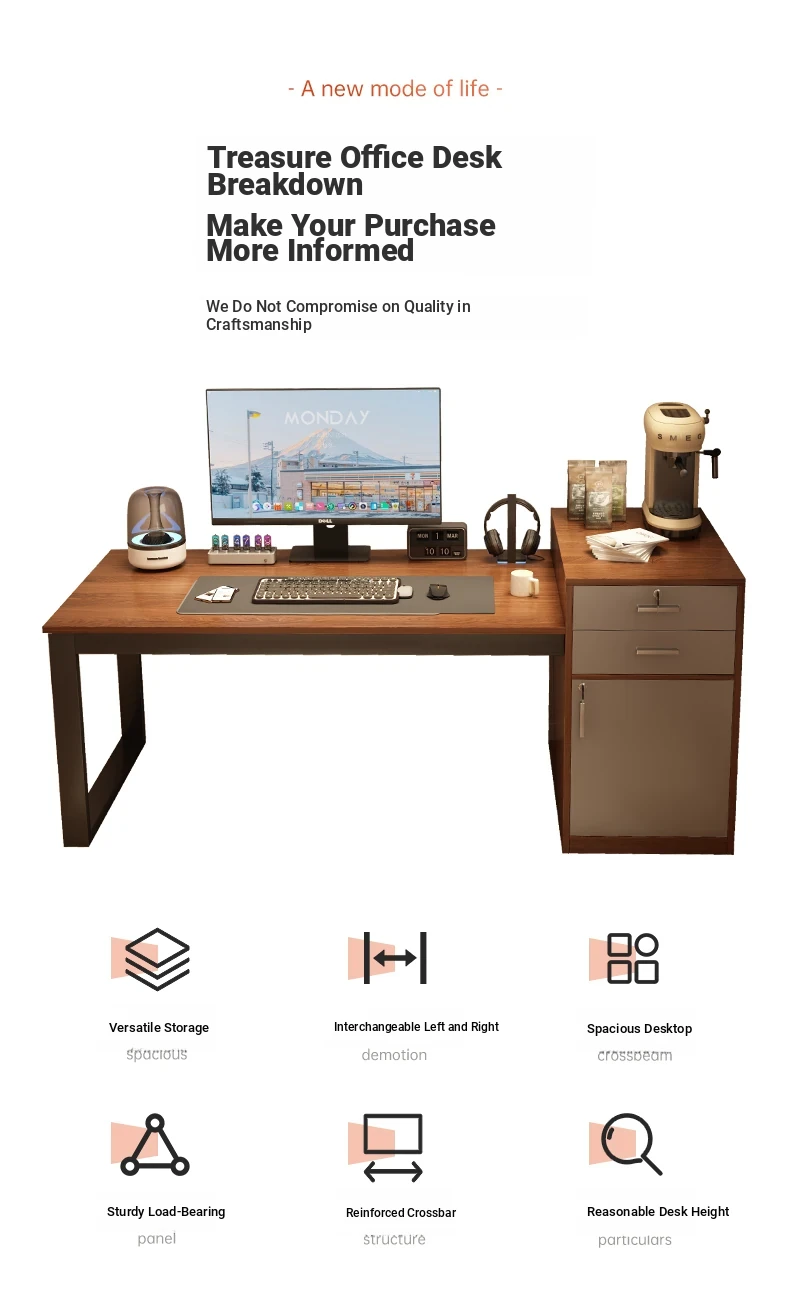 Multifunctional Desktop Computer Table for Home Office - Stylish Writing Desk with Storage Drawers, Ideal for Study and Work in Bedrooms or Living Rooms