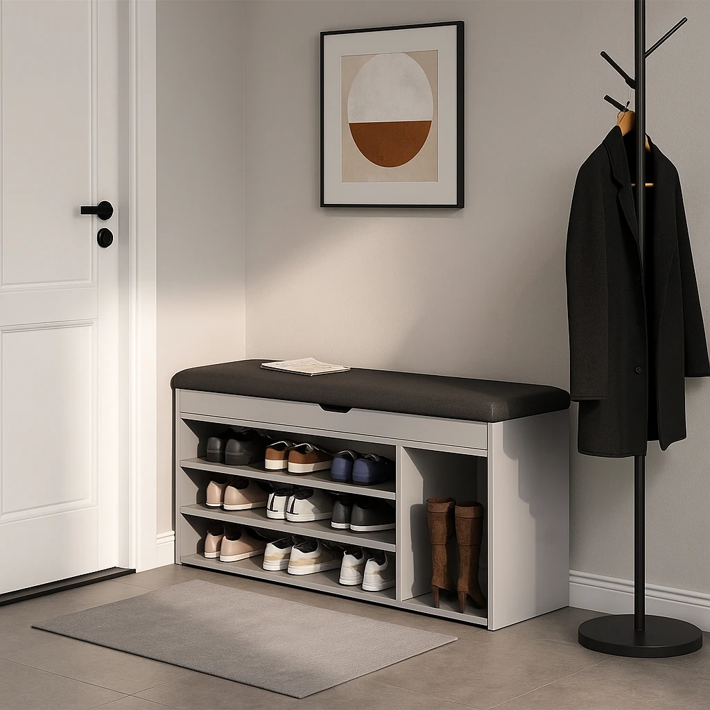 Multifunctional Entryway Shoe Bench with Soft Cushion - Stylish Storage Shoe Rack and Seat for Home, Perfect for Hallway Organization and Easy Shoe Changing