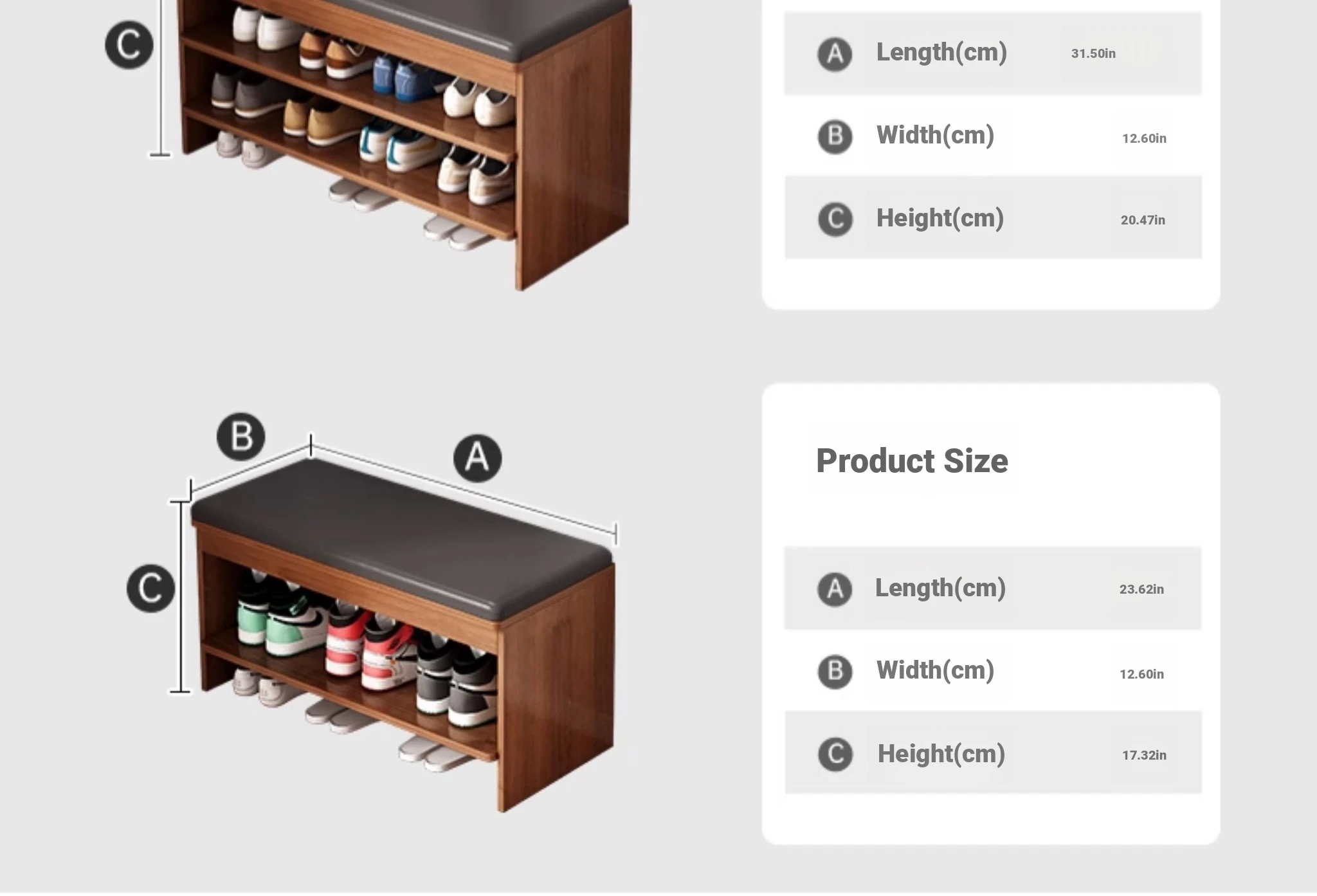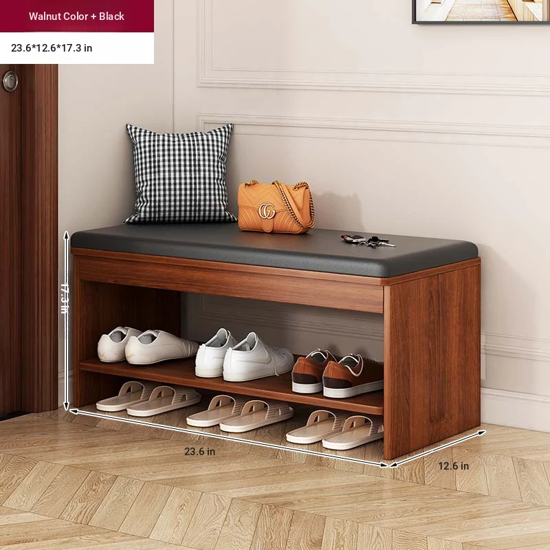[Thickened load-bearing model] can sit + can store shoes | Two-layer Basics 23.62in walnut color + black leather cushion