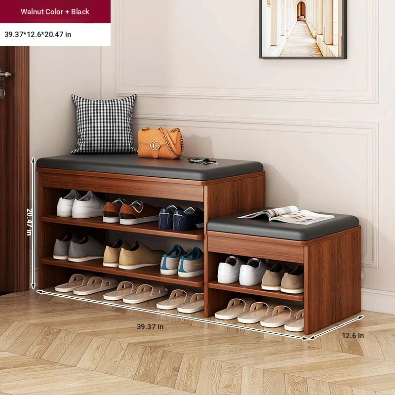 [Thickened load-bearing model] can sit + can store shoes | Matching combination model 39.37in walnut color + black leather cushion