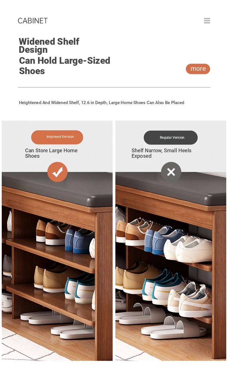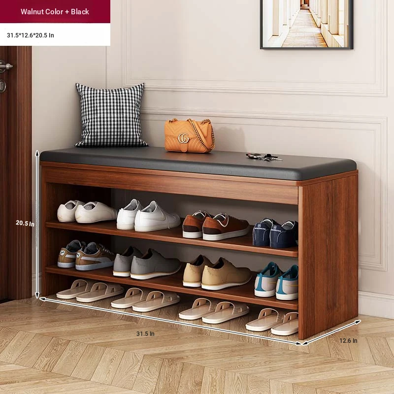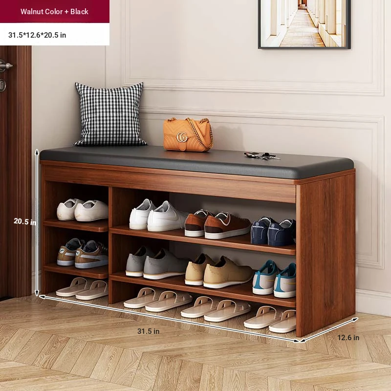 [Thickened load-bearing model] can sit + can store shoes | Three-layer Basics 31.50in walnut color + black leather cushion