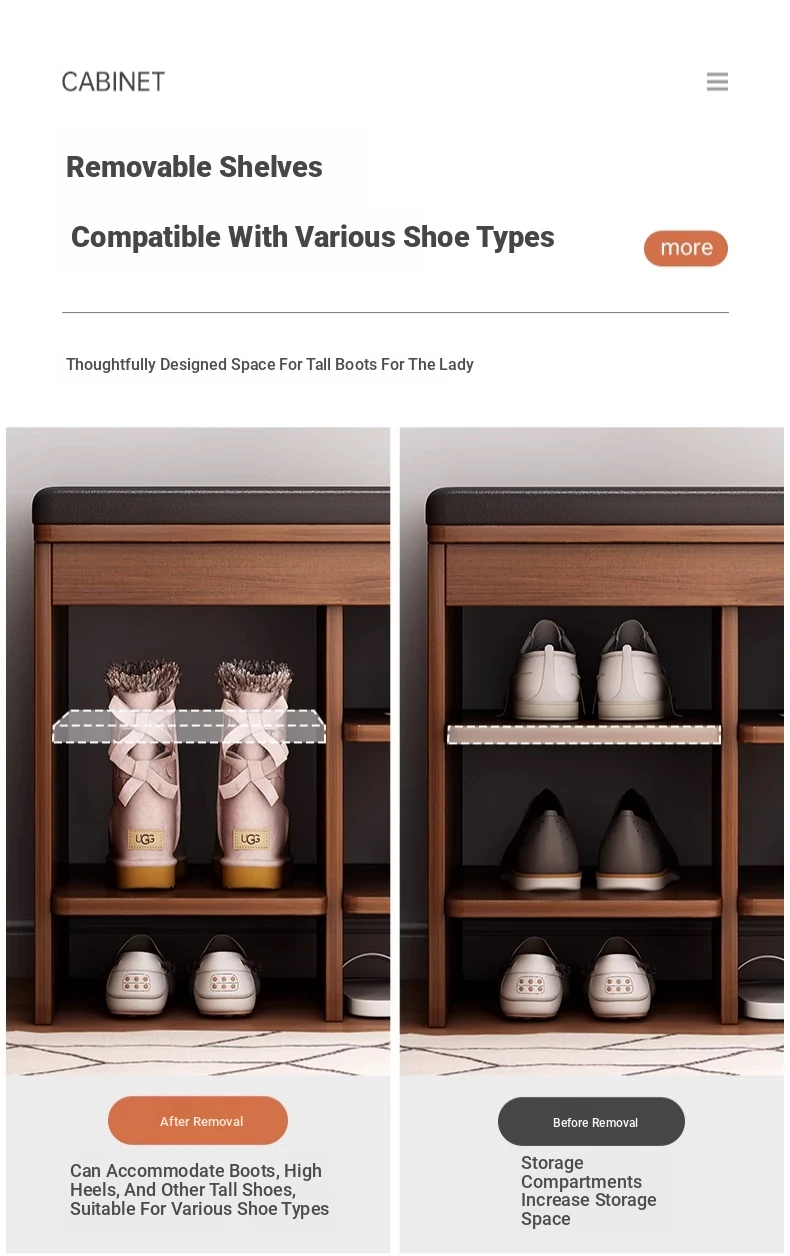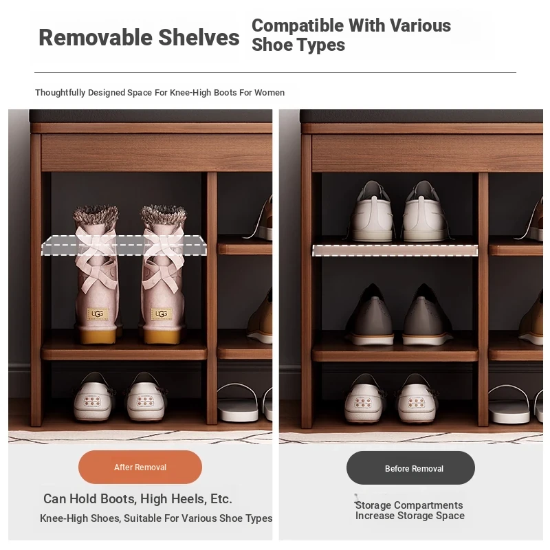 [Thickened load-bearing model] can sit + can store shoes | Three-layer boots 31.50in walnut color + black leather cushion