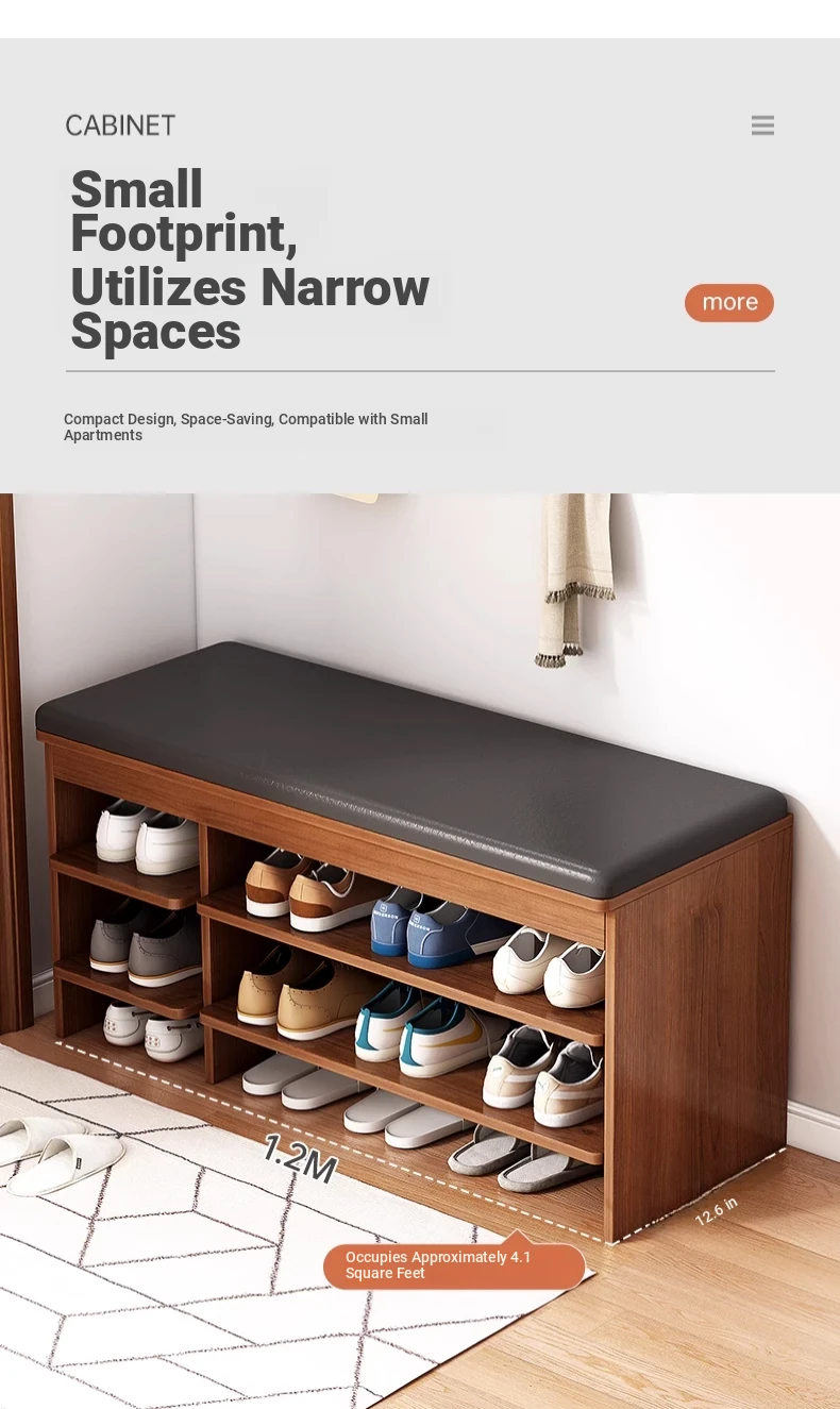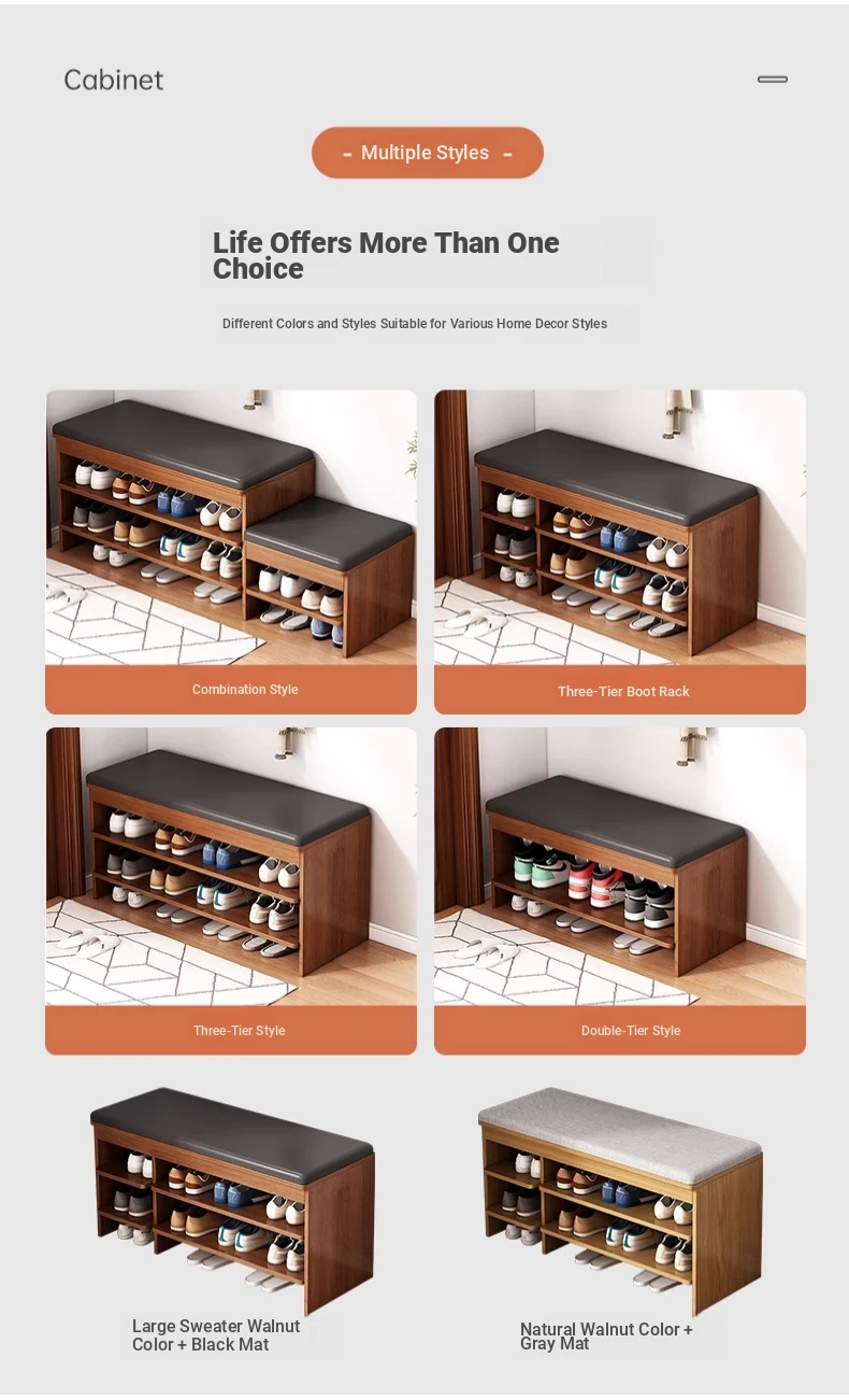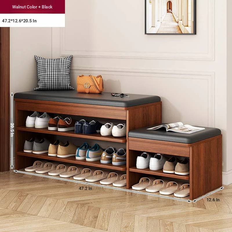 [Thickened load-bearing model] can sit + can store shoes | Matching combination Model 47.24in walnut color + black leather cushion