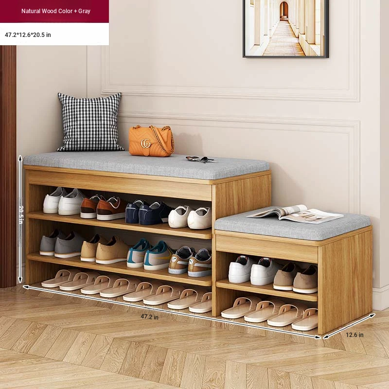 [Thickened load-bearing model] can sit + can store shoes | Matching combination Model 47.24in walnut color + gray cloth cushion