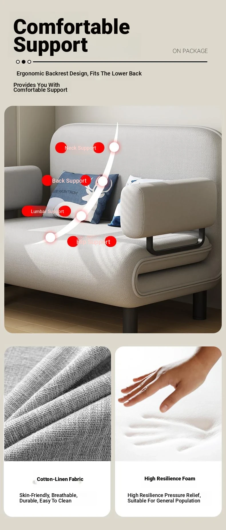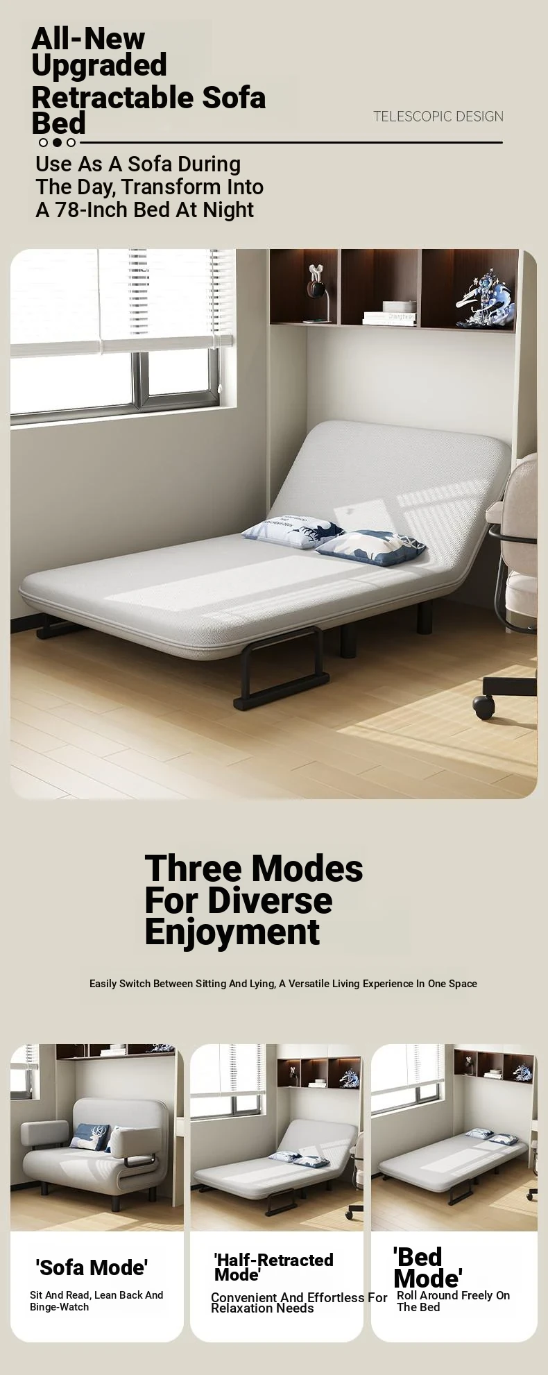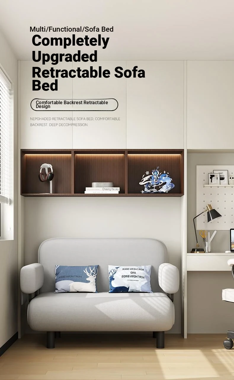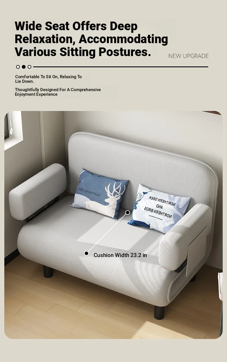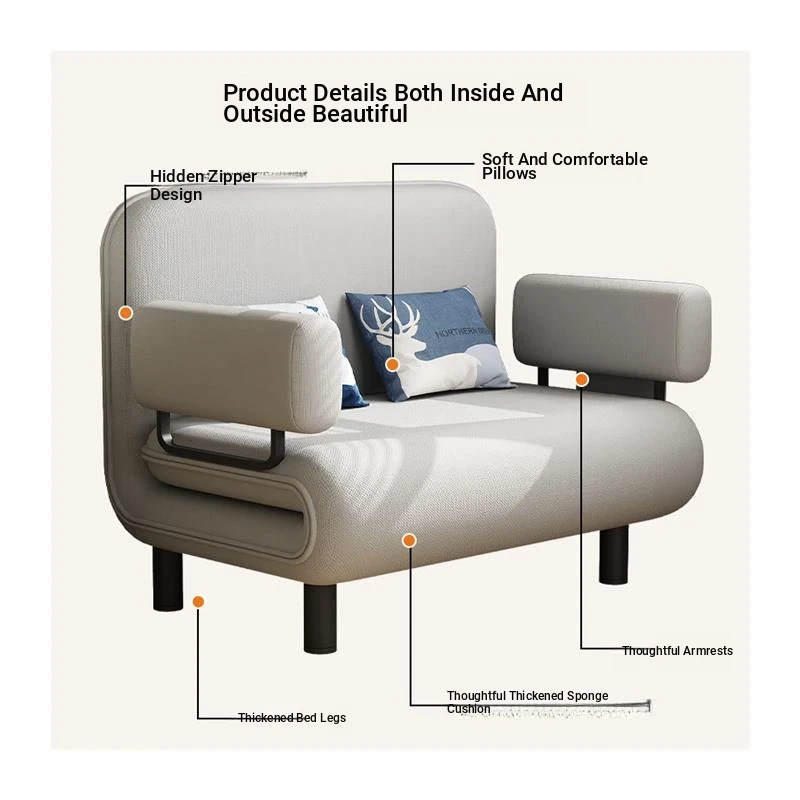 Multifunctional Sofa Bed for Small Spaces - Foldable Design for Study and Balcony, Perfect for Single or Double Use, Stylish Fabric Upholstery, Ideal for Napping and Relaxing