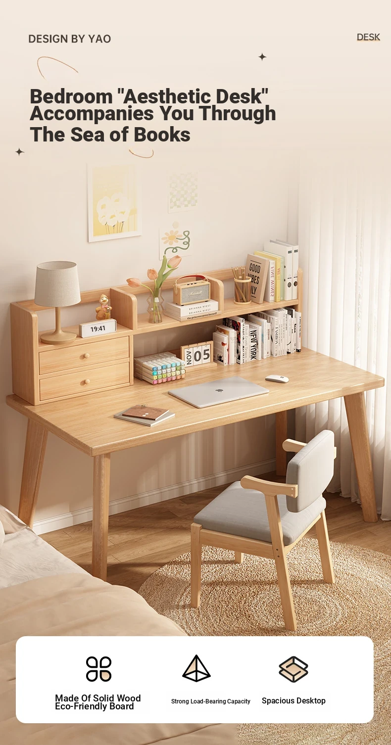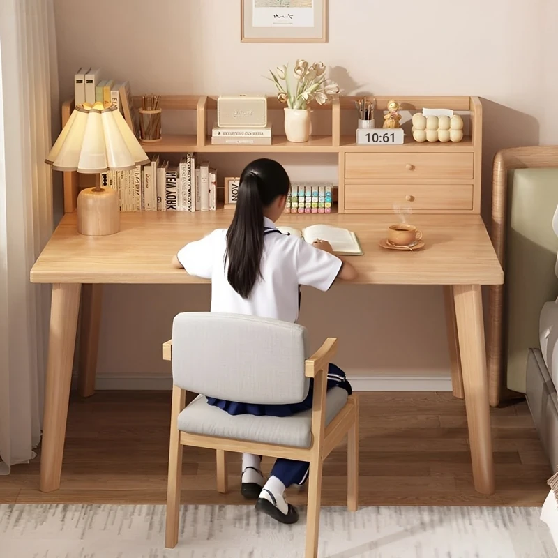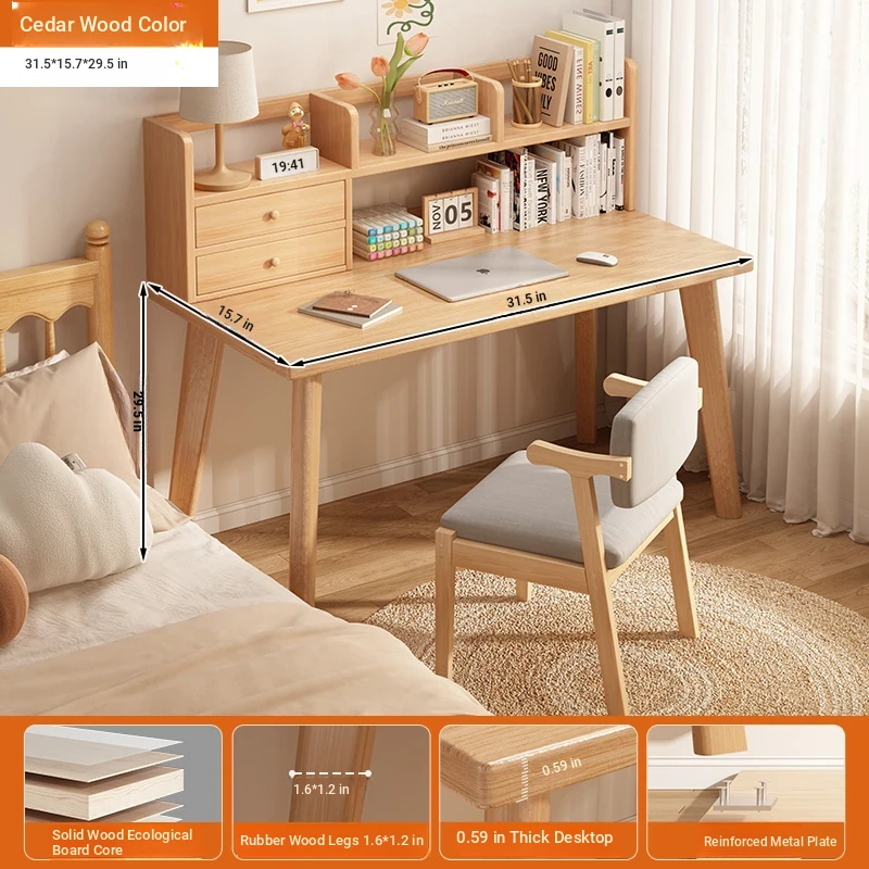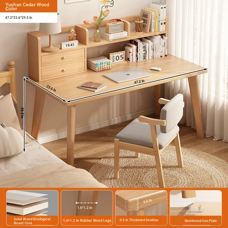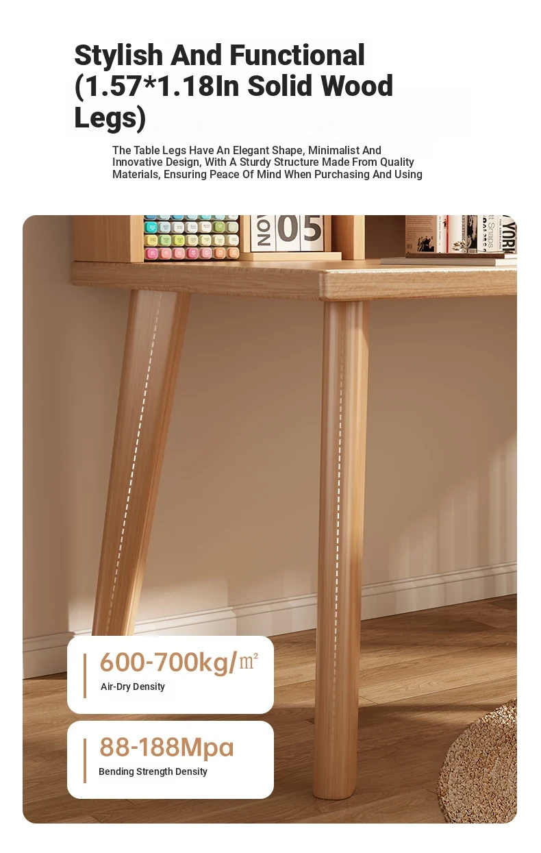 Multifunctional Solid Wood Study Desk & Bookshelf Combo – Ideal Student Desk for Home, Compact Computer Desk for Small Spaces, Perfect Writing and Office Desk for Bedrooms