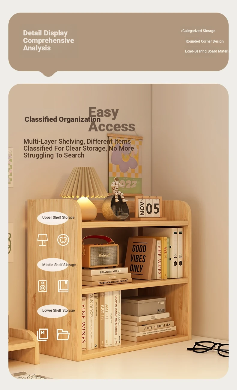 Multi-Tier Desktop Organizer Shelf - Simple Storage Rack for Student Desks, Ideal for Books and Display Items - Perfect for Home and Office Use
