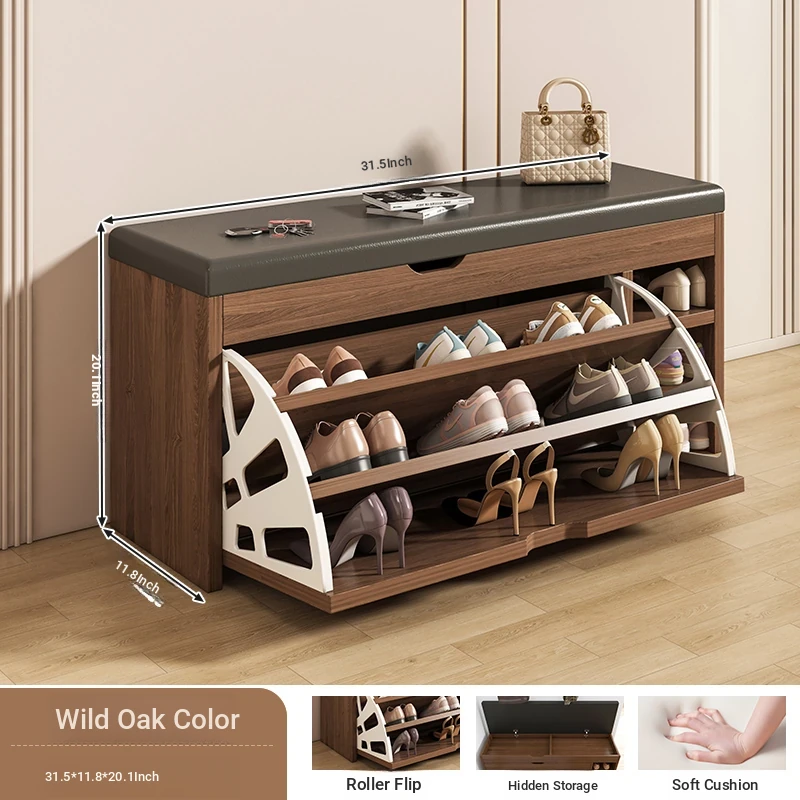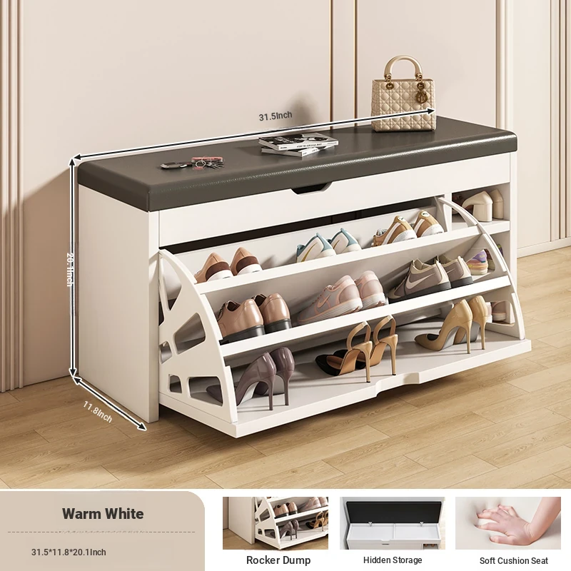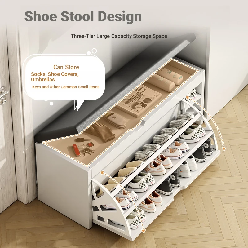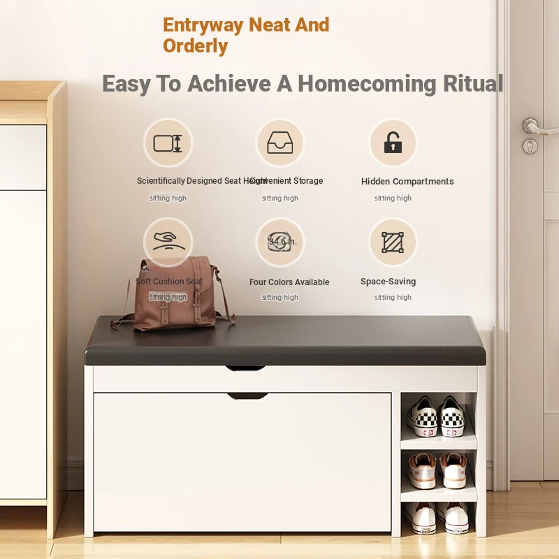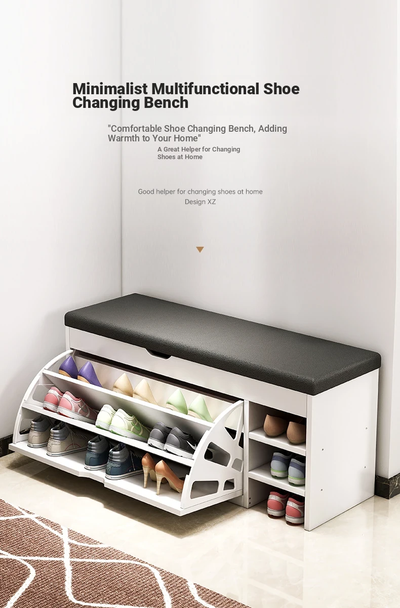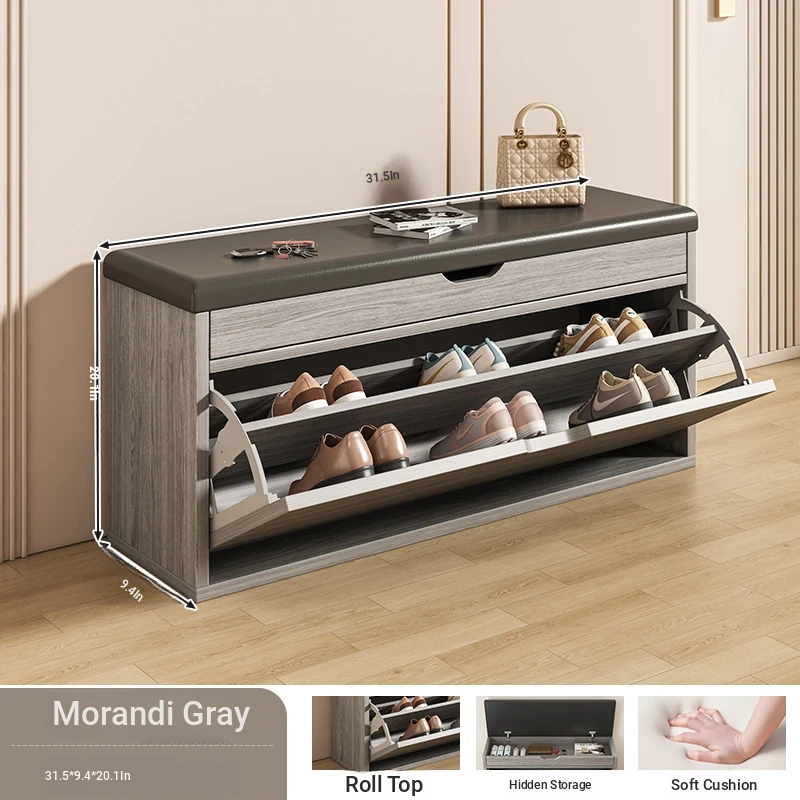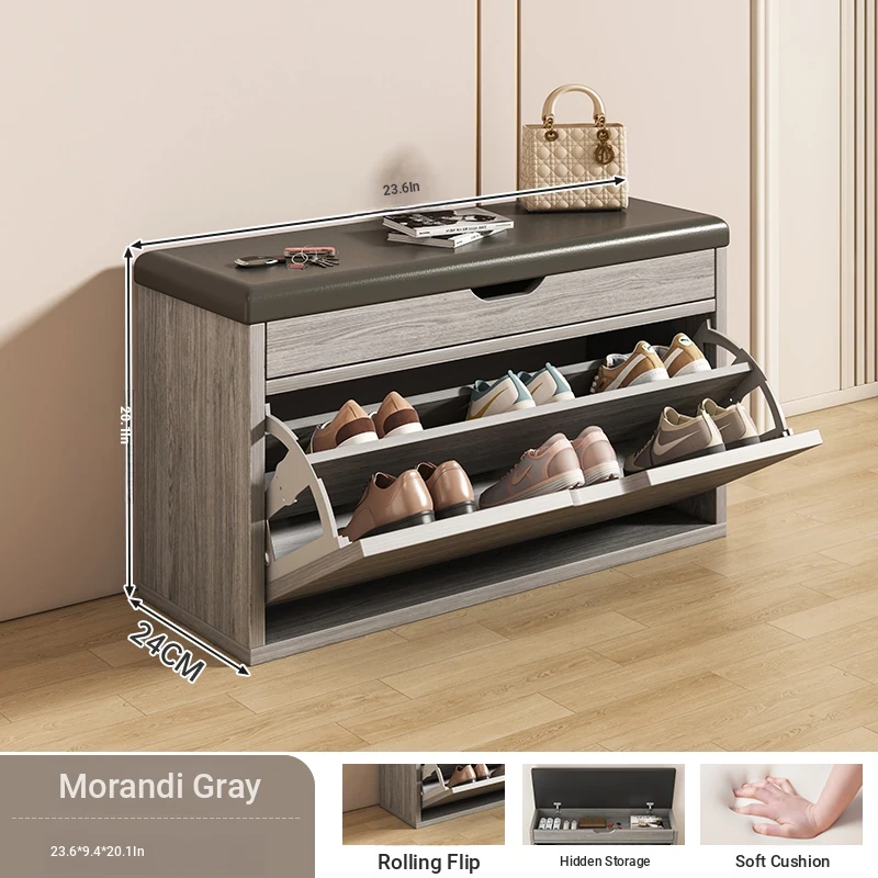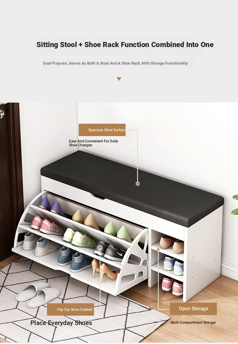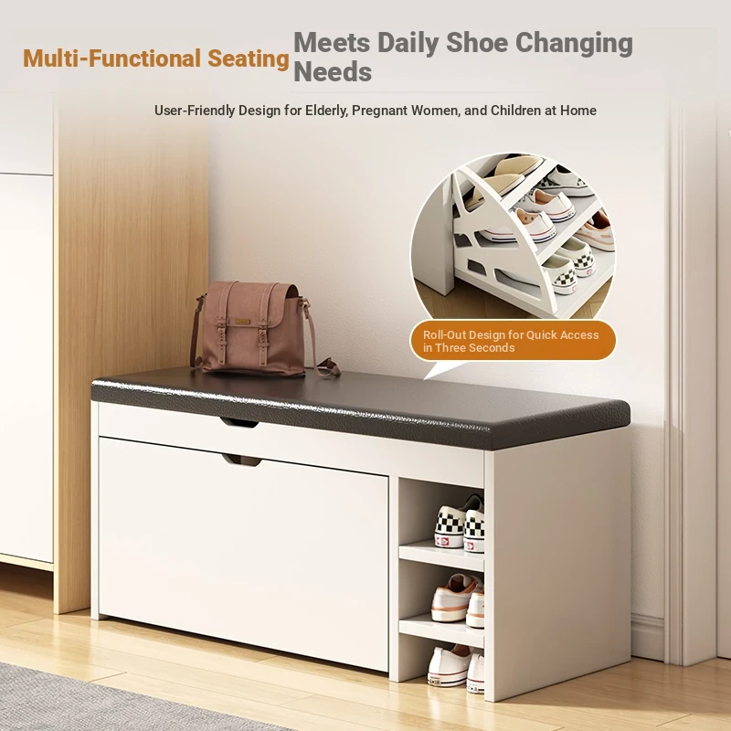 Narrow Entryway Shoe Bench with Storage - Stylish and Functional Foldable Shoe Cabinet and Seat for Easy Shoe Changing at Home, Space-Saving Design for Small Entrances