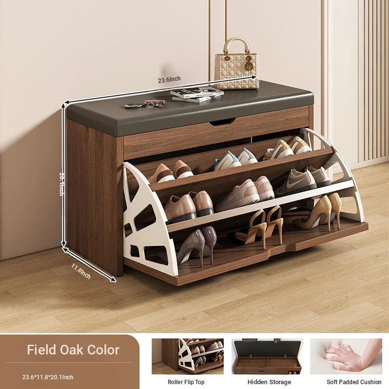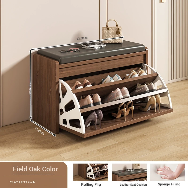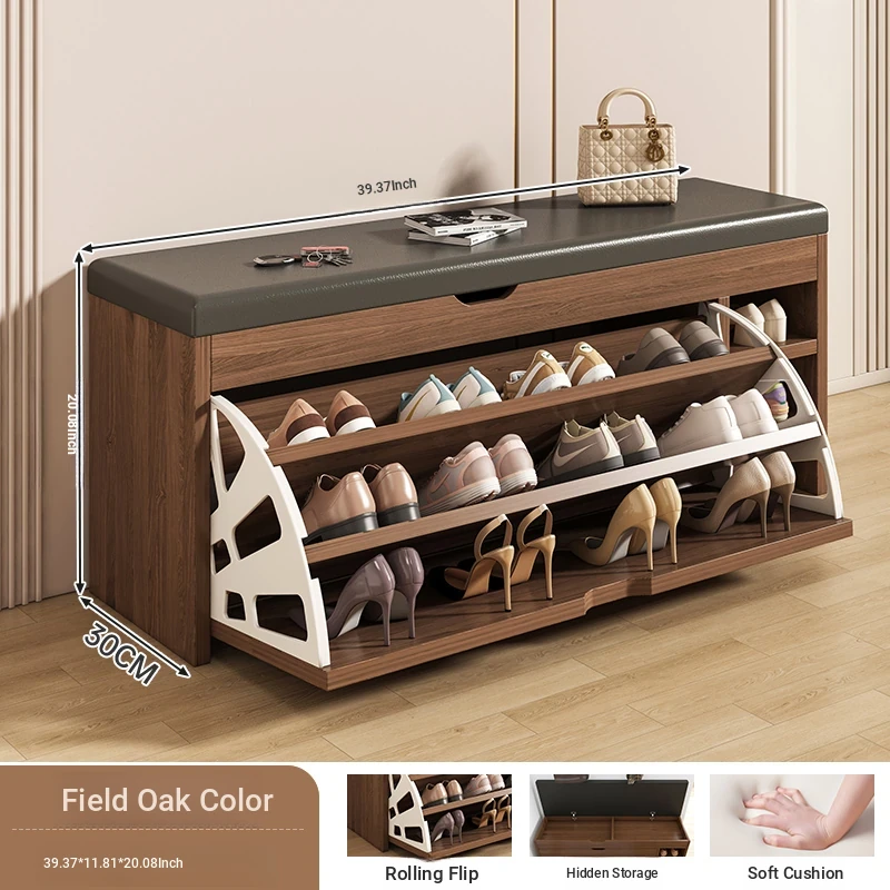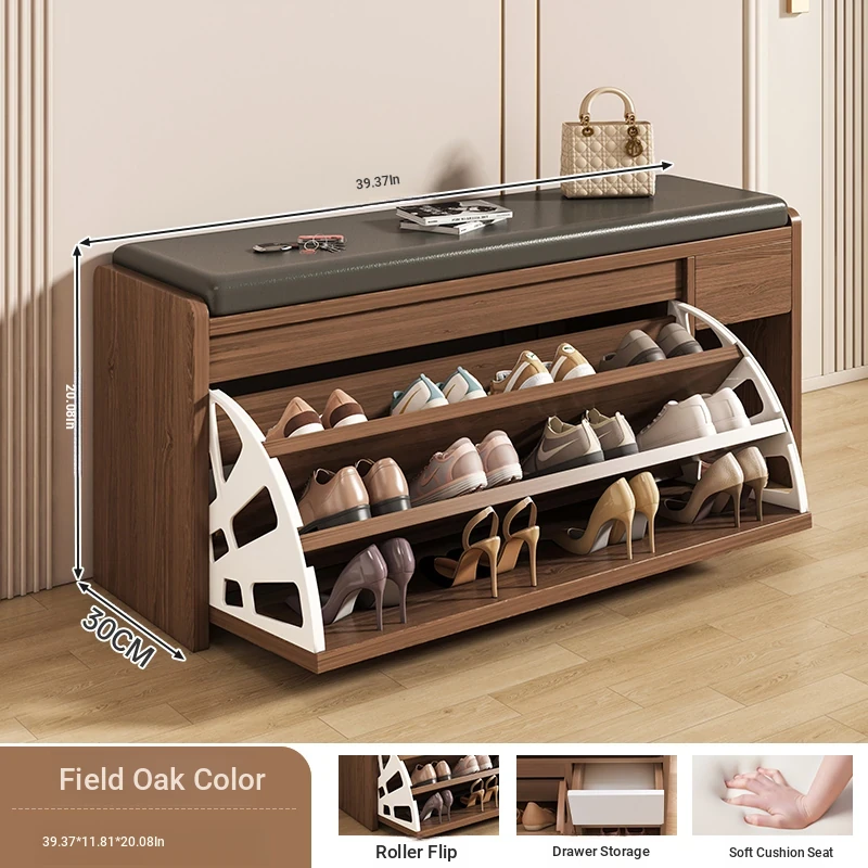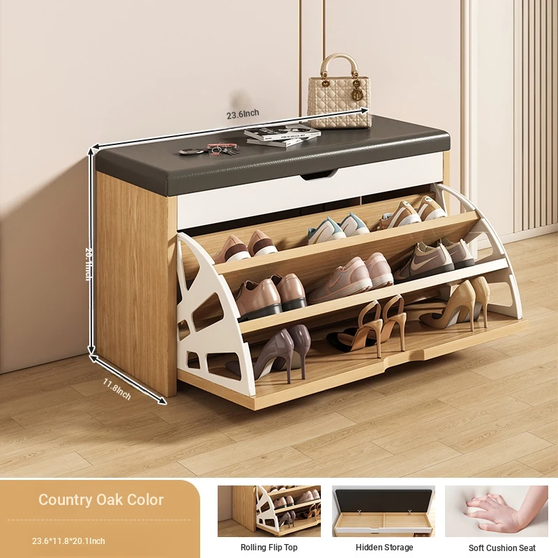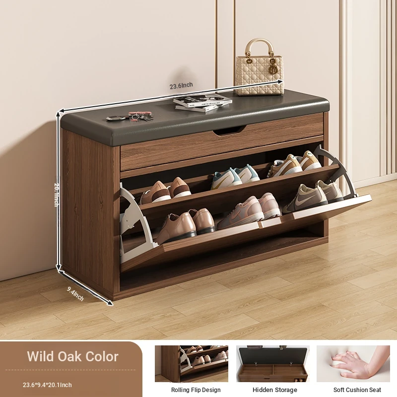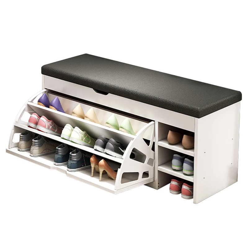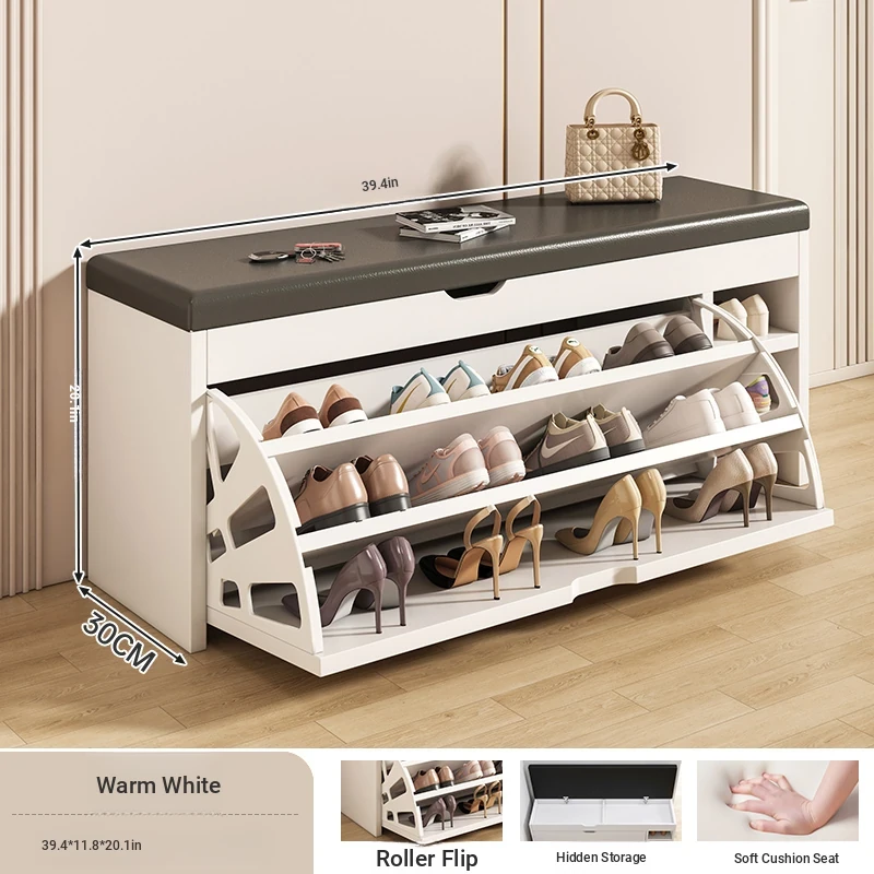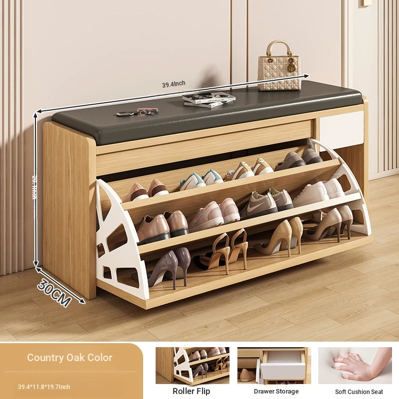 Narrow Entryway Shoe Bench with Storage - Stylish and Functional Foldable Shoe Cabinet and Seat for Easy Shoe Changing at Home, Space-Saving Design for Small Entrances