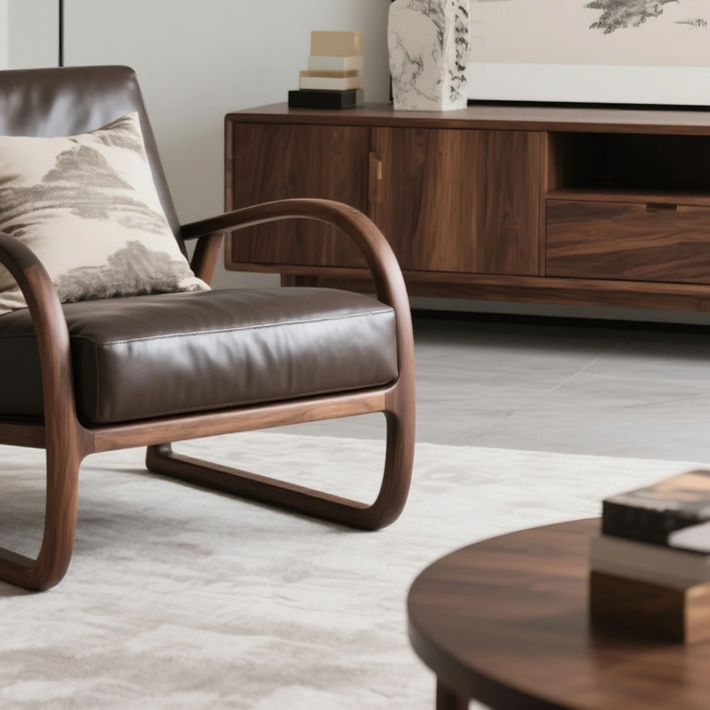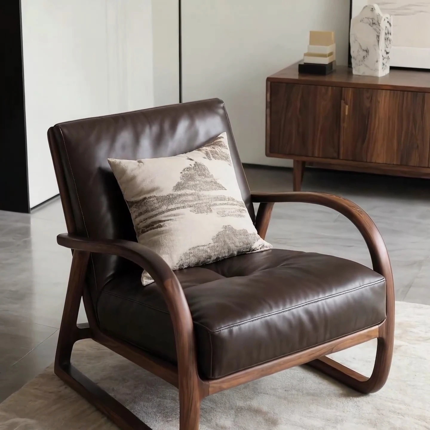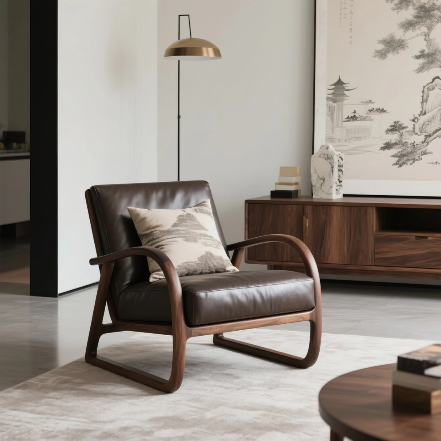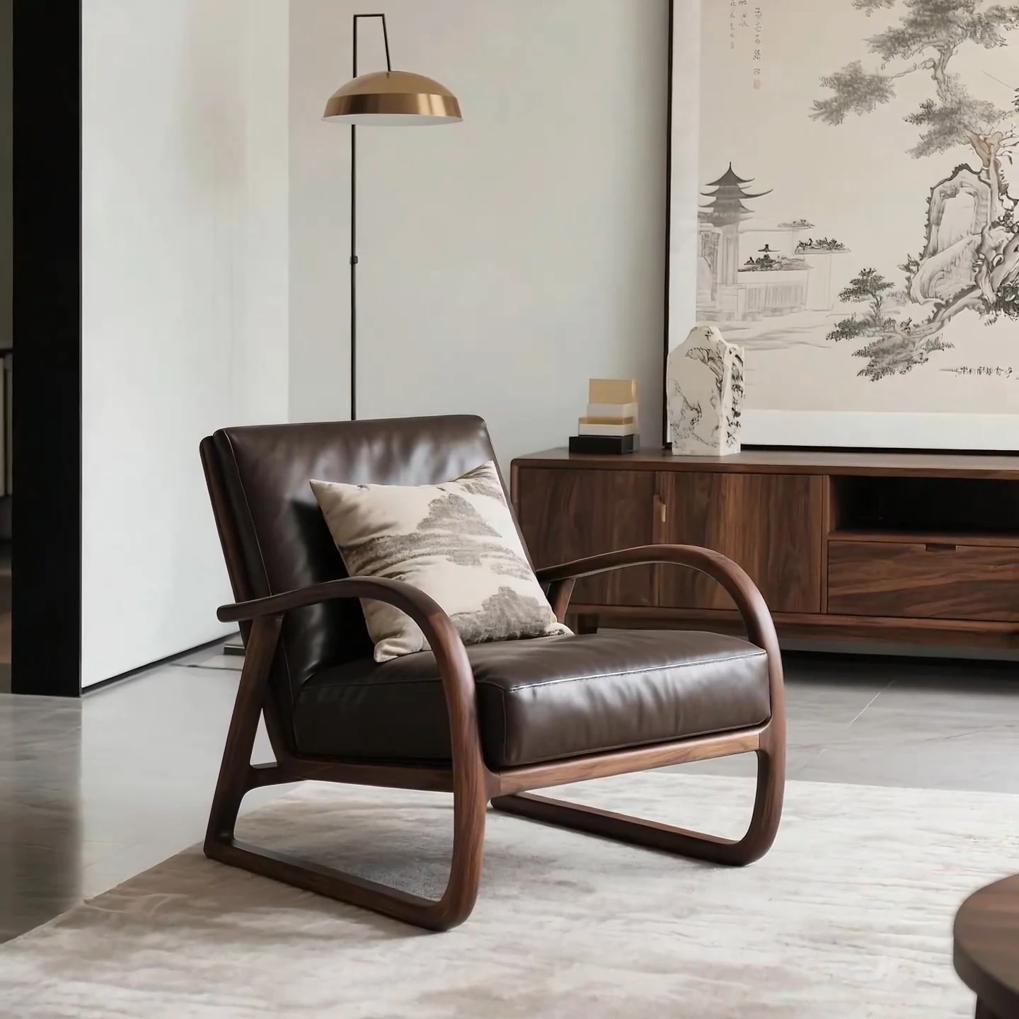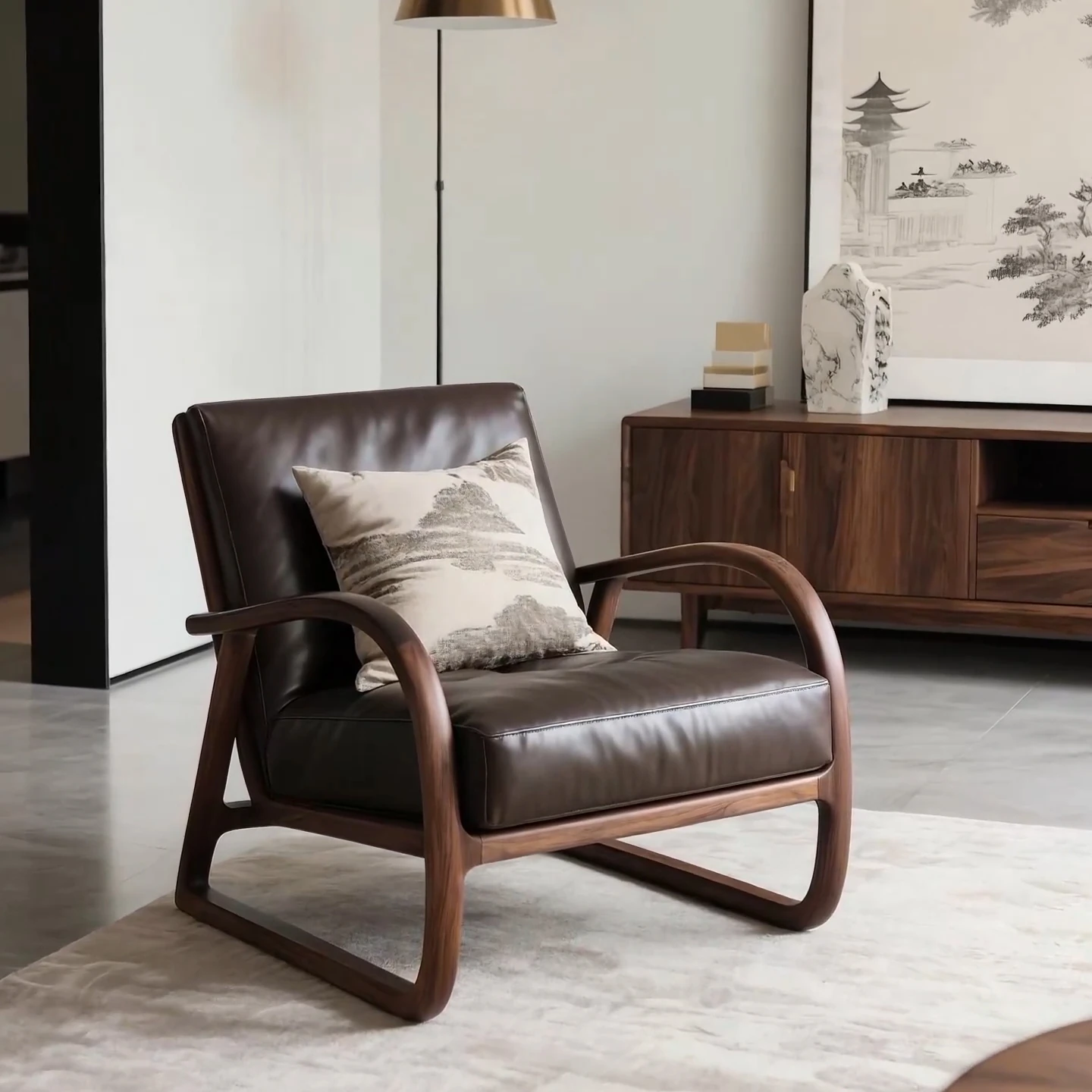 New Chinese Style Black Walnut Sofa Chair - Zen-Inspired Relaxation Lounge Armchair for Reception and Casual Living Room Use, Perfect for Easy Comfort and Conversations.