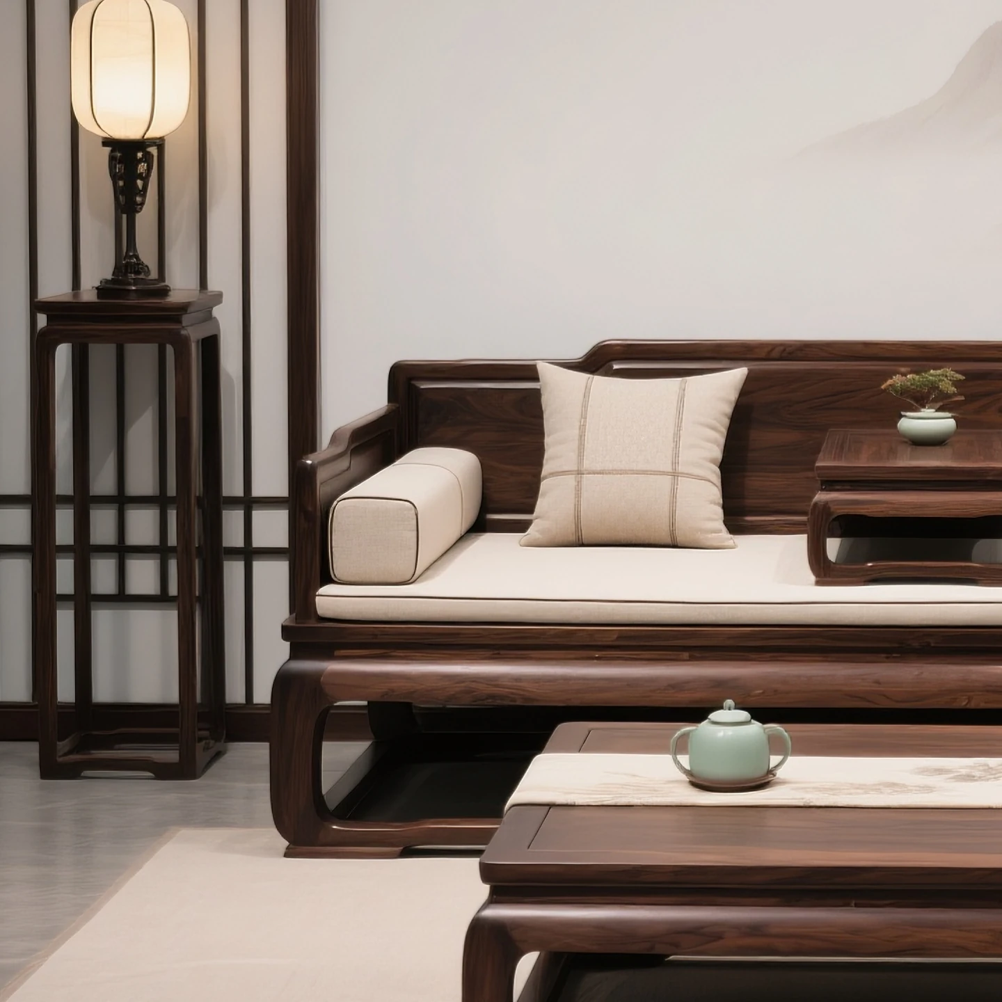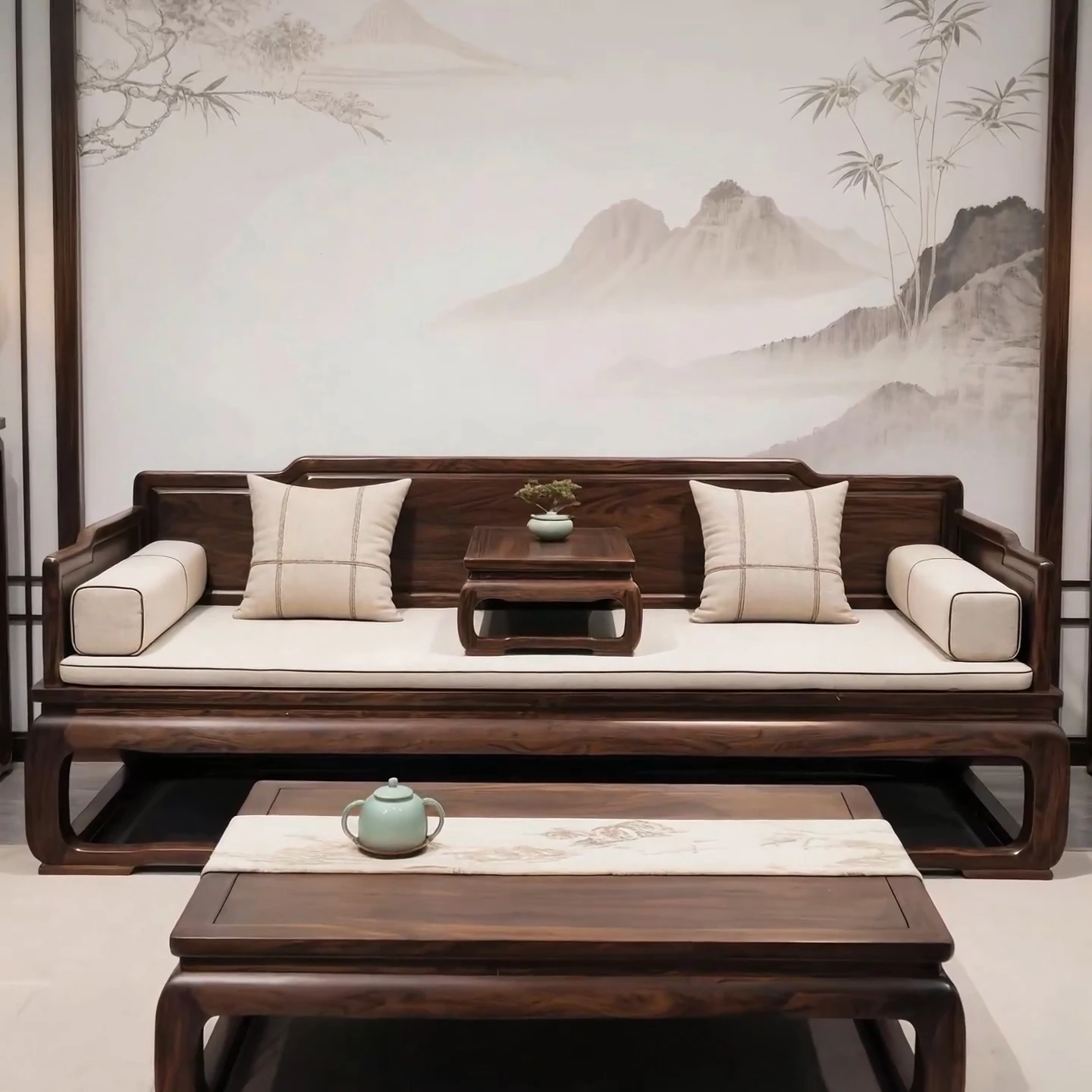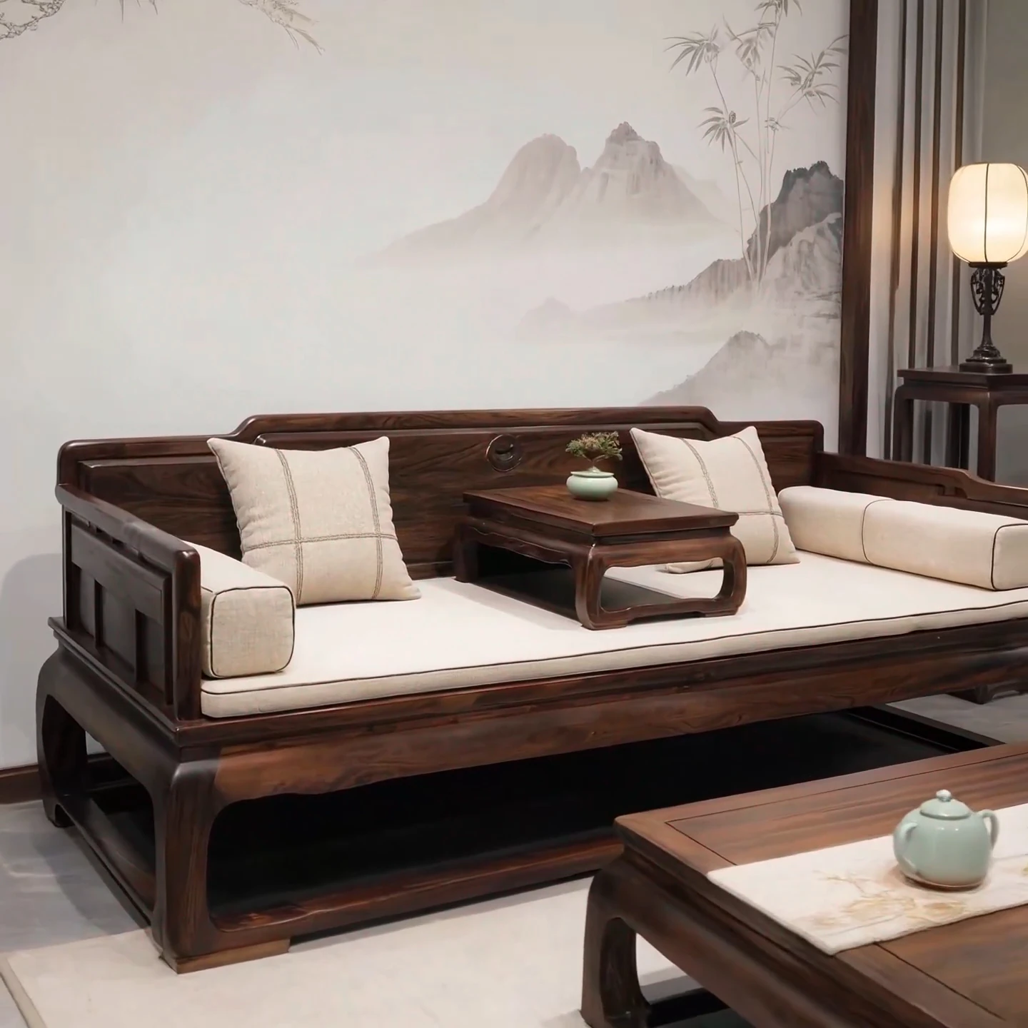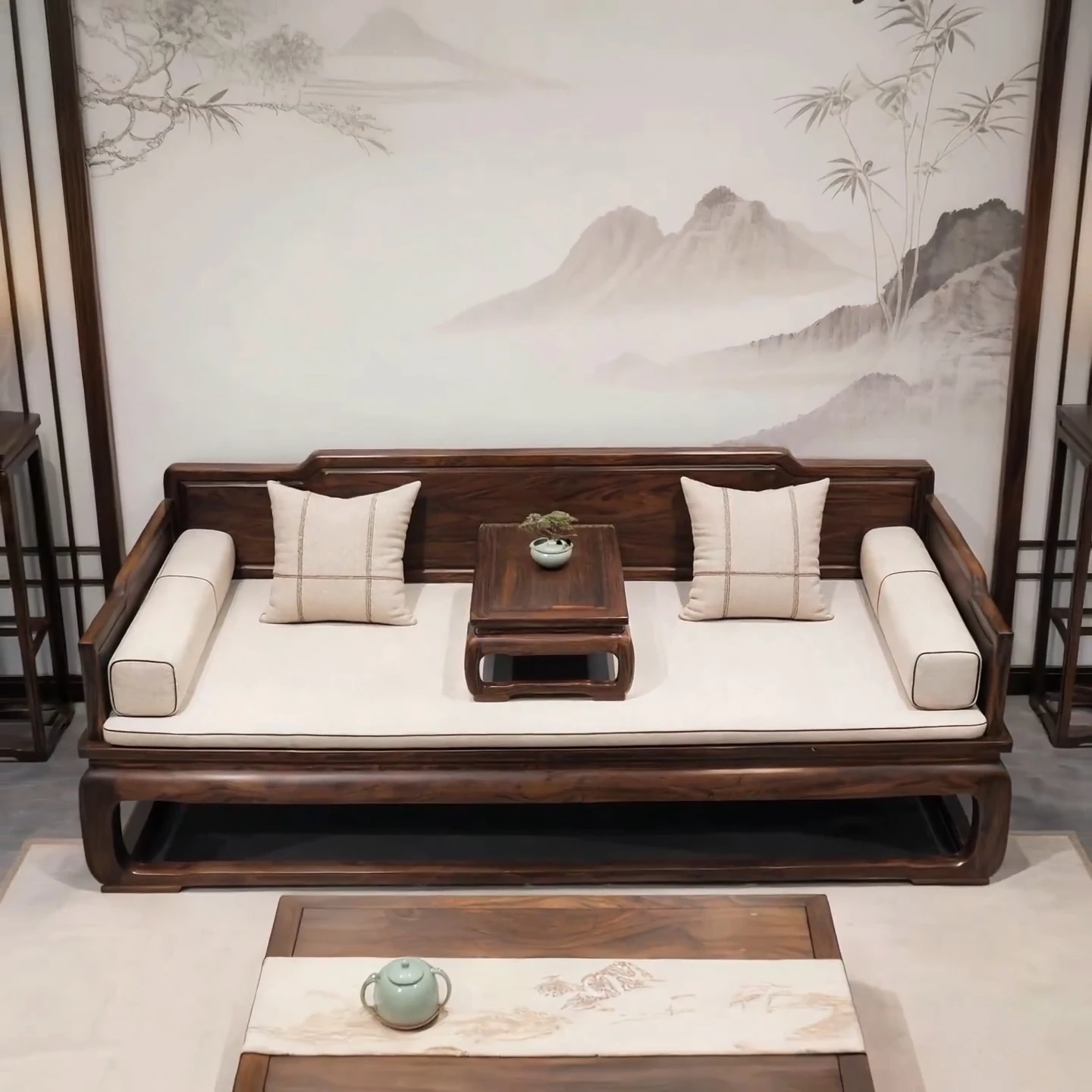 New Chinese Style Luohan Bed - Imported North American Black Walnut Wood - Solid Wood Sofa for All Room Sizes - Song Aesthetics Sofa and Daybed