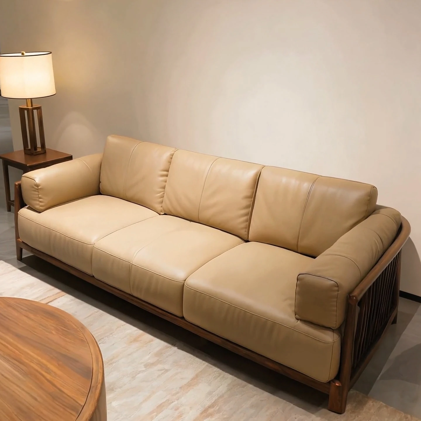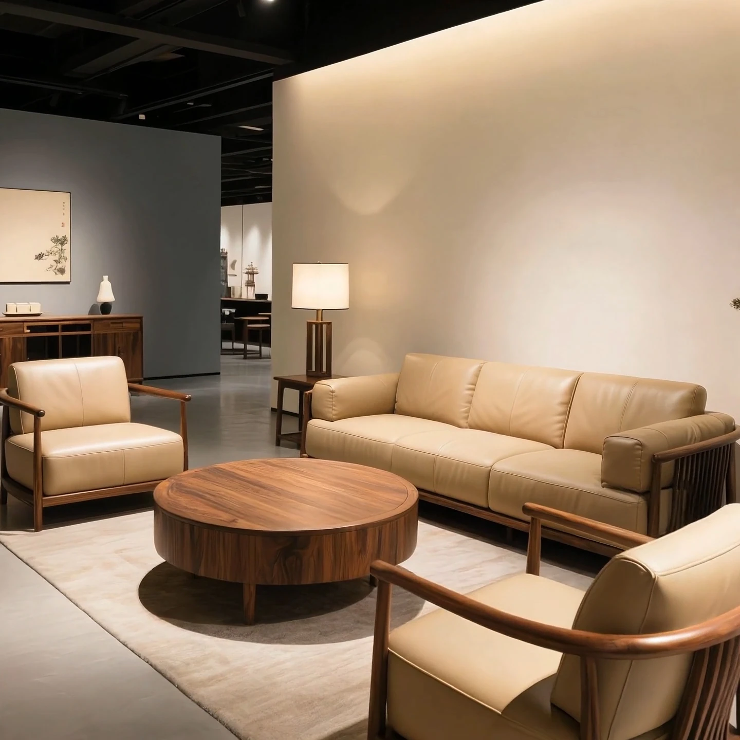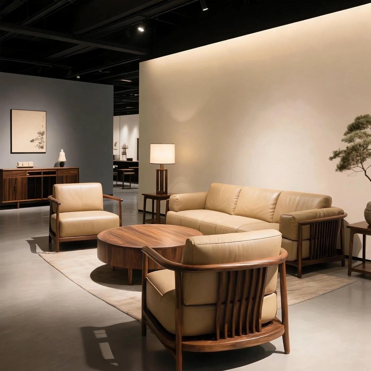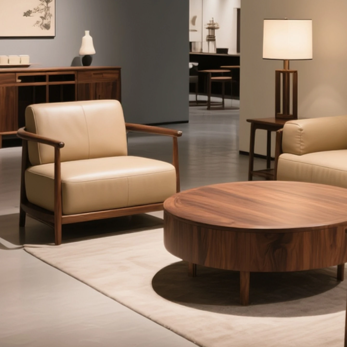 New Chinese Style North American Black Walnut Sofa - Elegant Song Dynasty Aesthetic for Zen-Inspired Office and Villa Living Room, Embracing Wabi-Sabi Design Principles