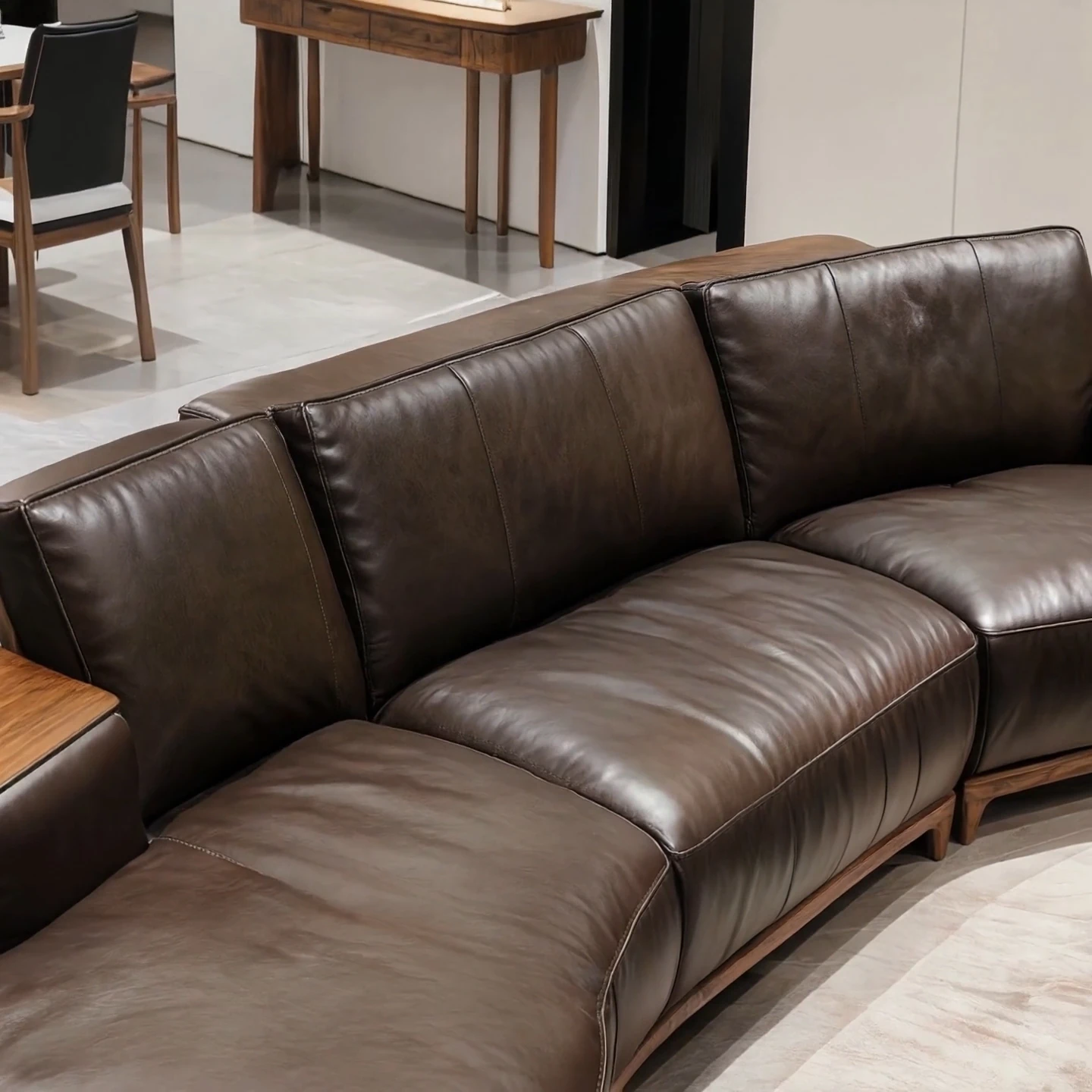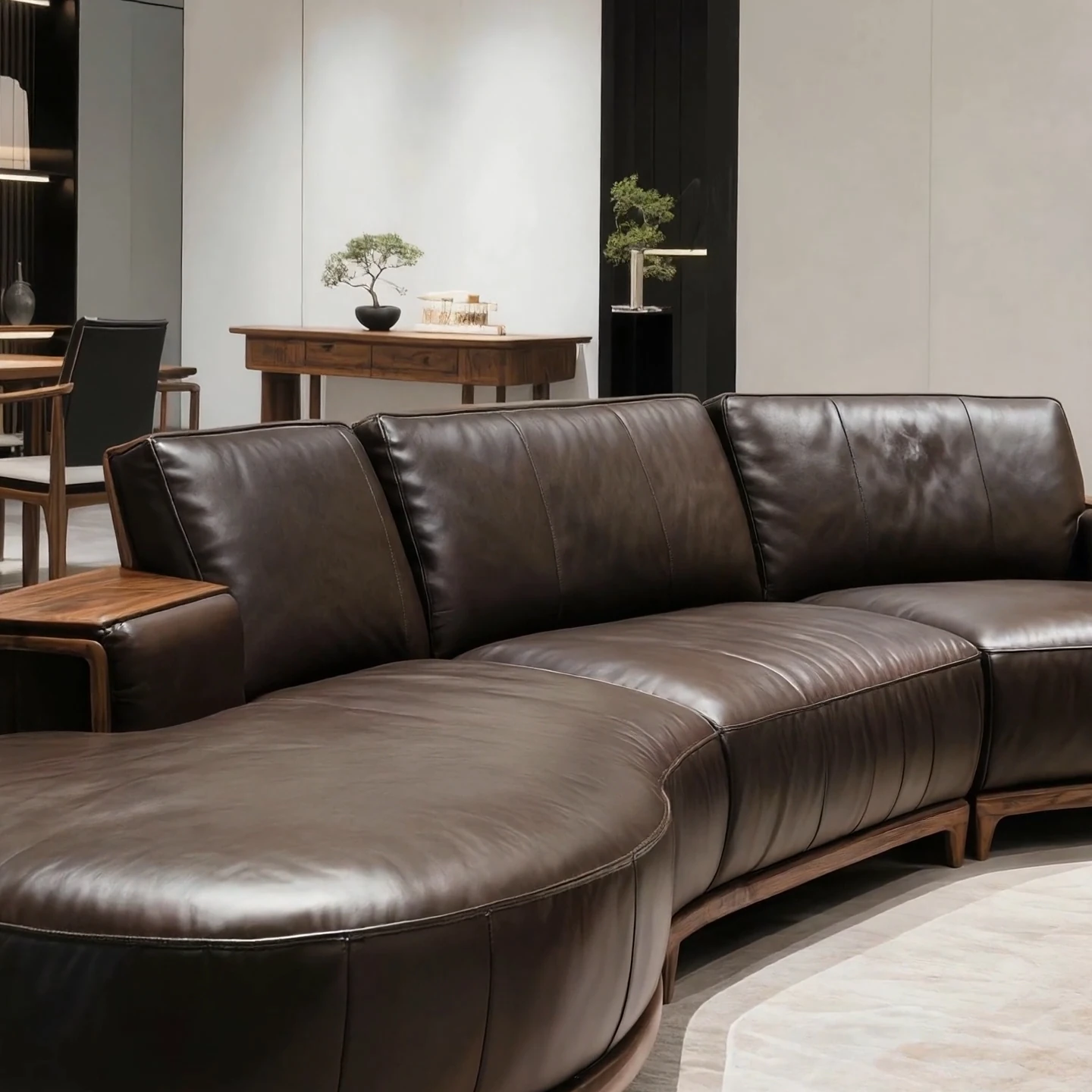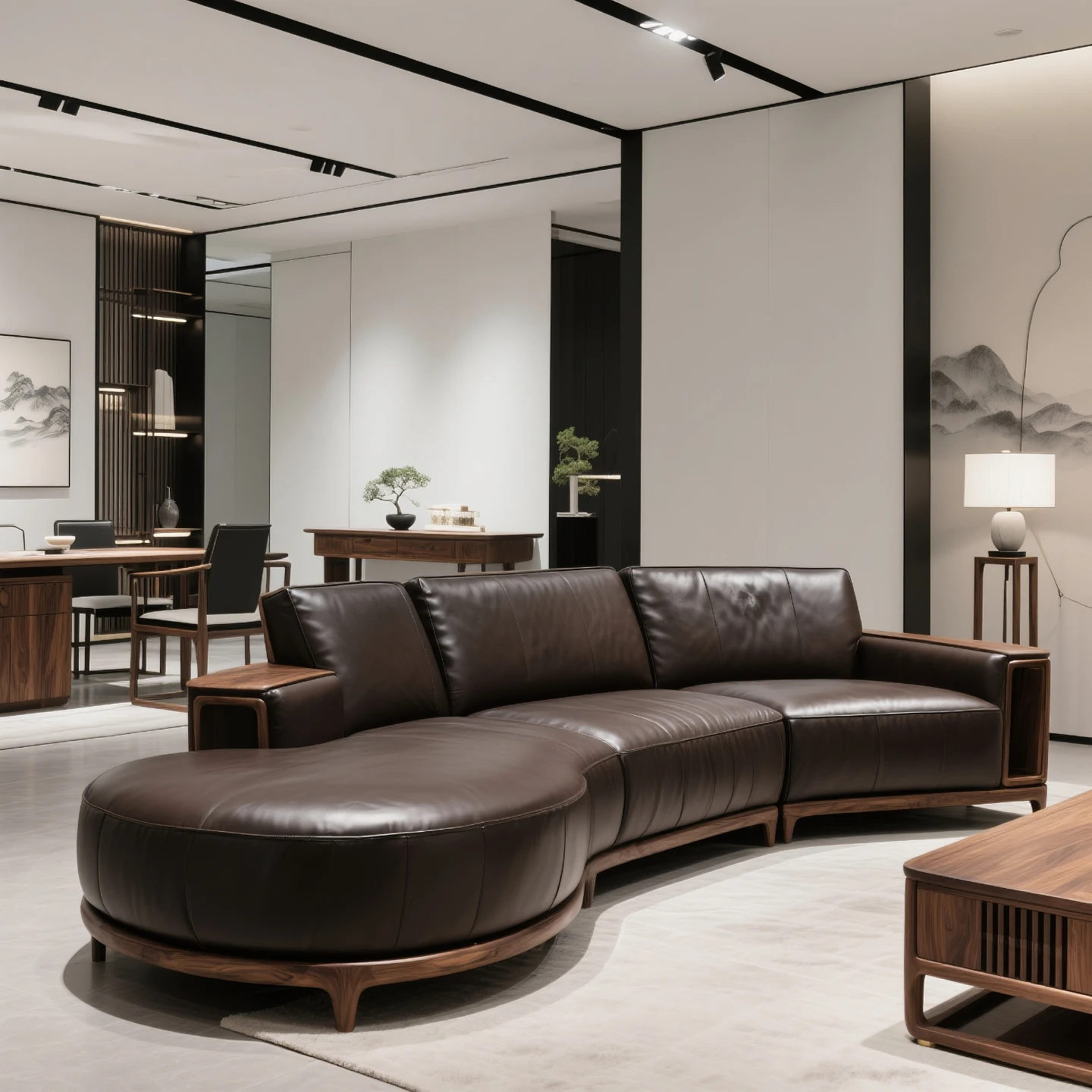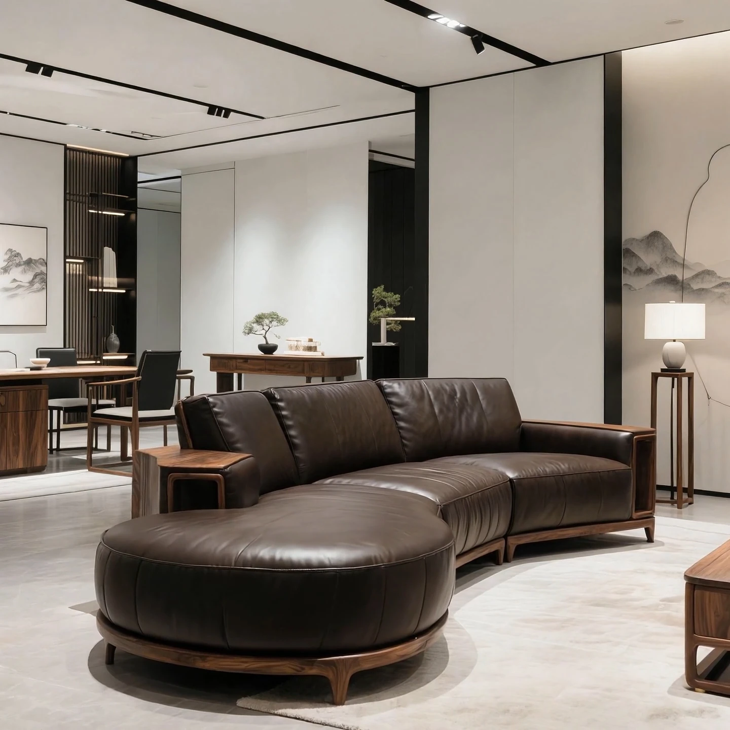New Chinese Style North American Black Walnut Sofa - Solid Wood & Genuine Leather with Song Dynasty Aesthetics, Zen-Inspired Wabi-Sabi Office Furniture