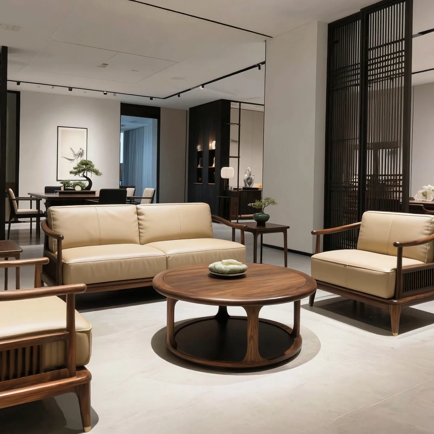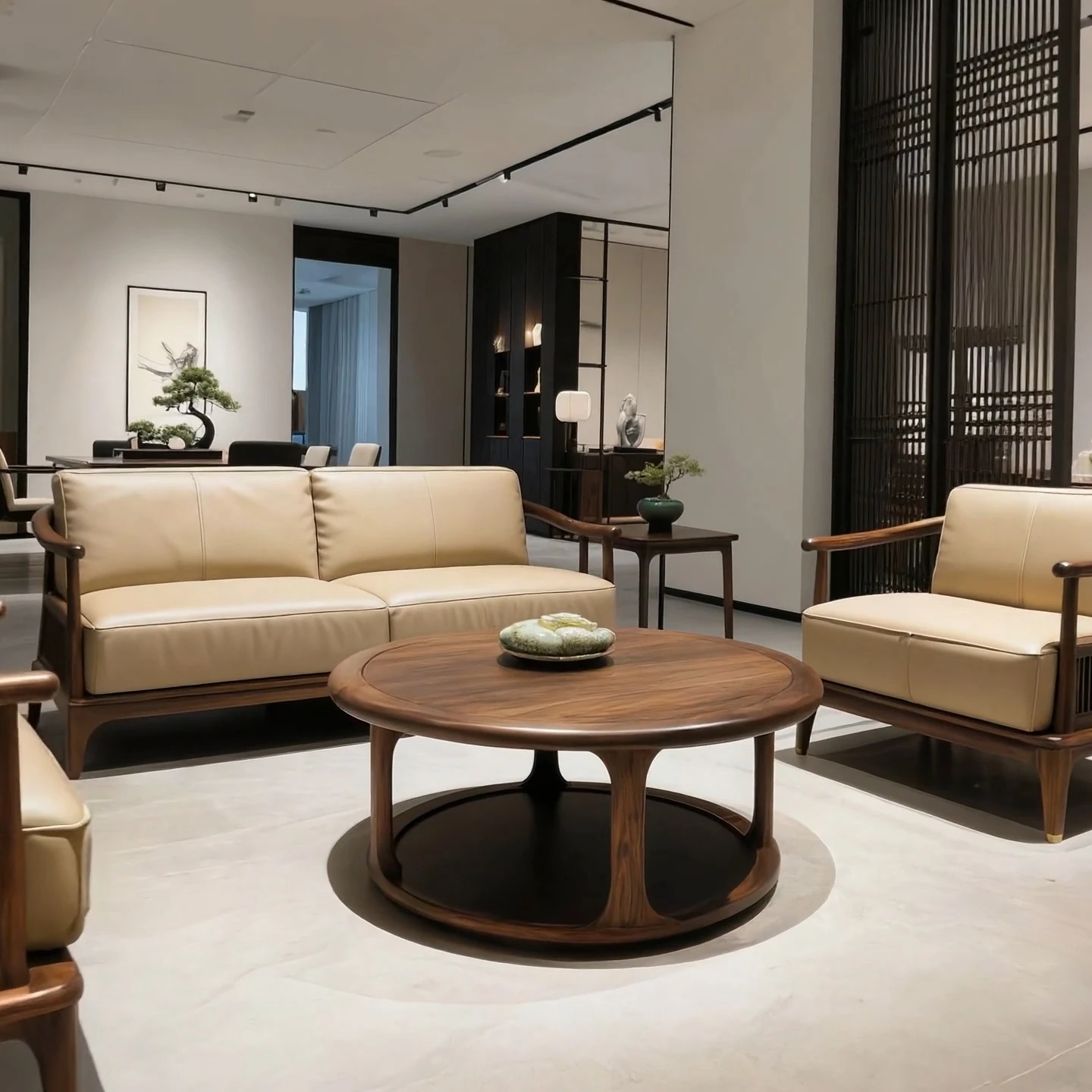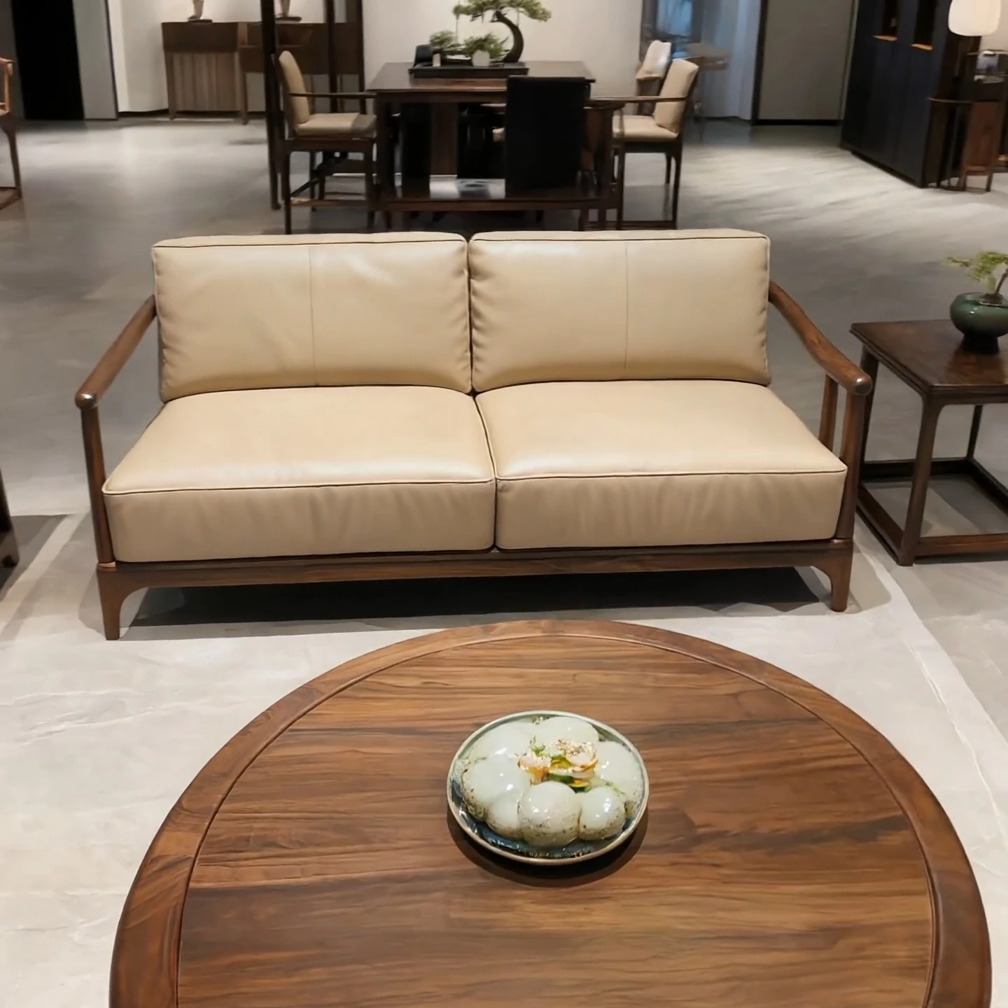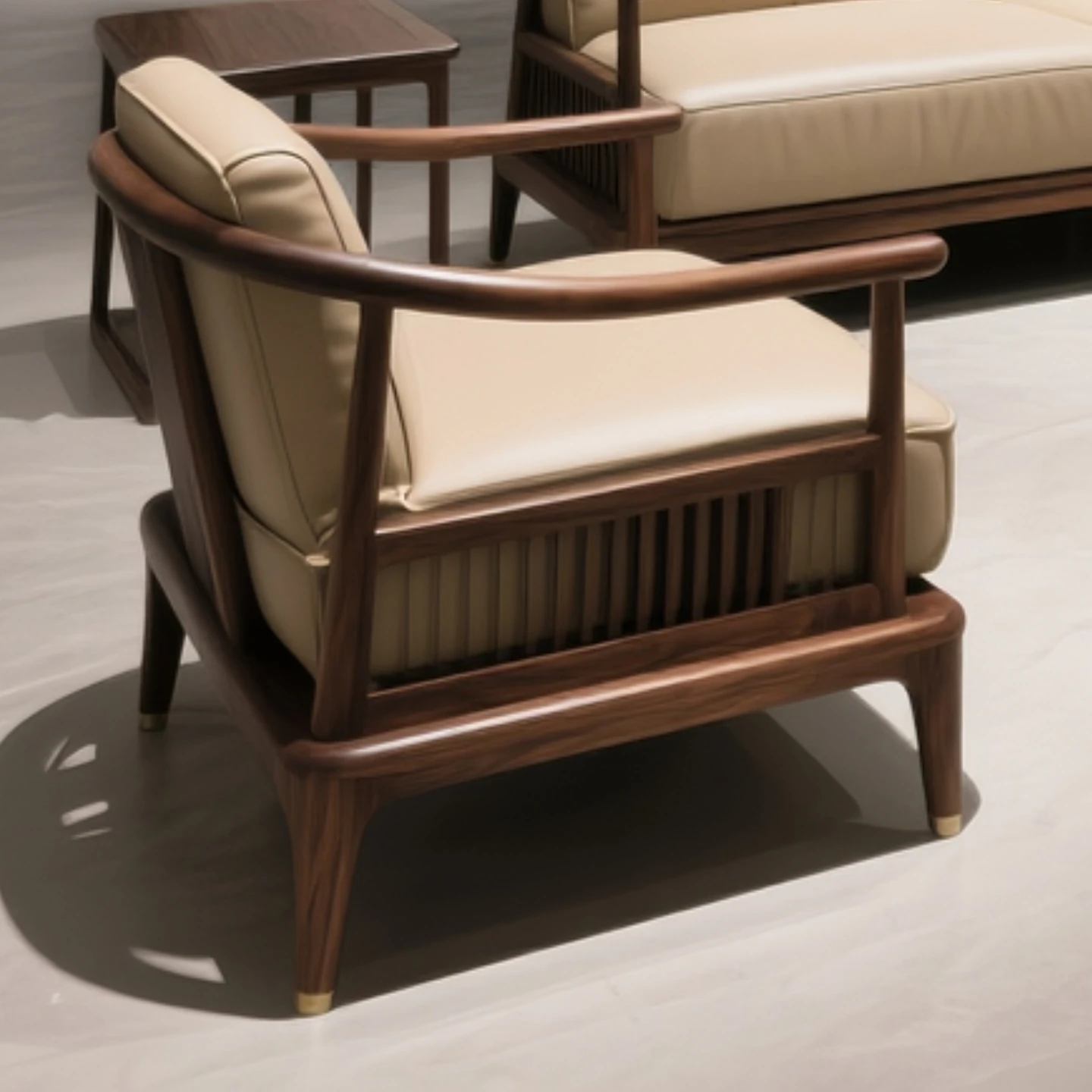 New Chinese Style North American Black Walnut Sofa - Song Aesthetics for a Serene Office and Spacious Living Room, Embracing Wabi-Sabi Furniture Design