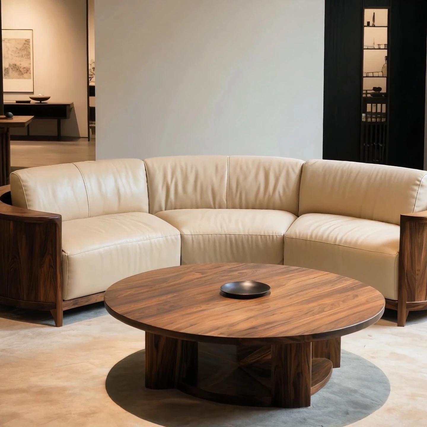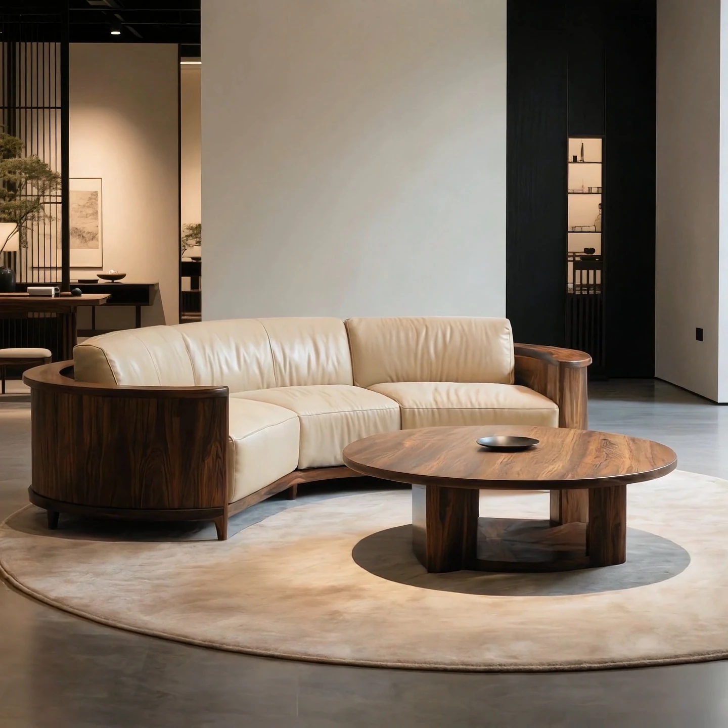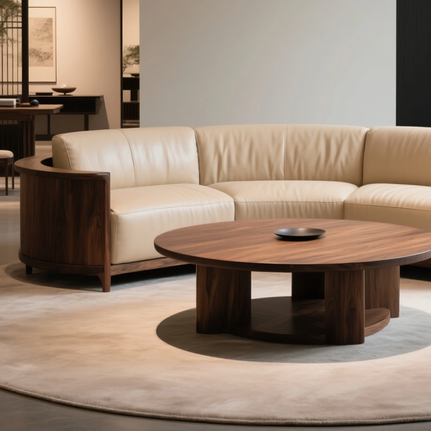 New Chinese Style North American Black Walnut Sofa - Zen Aesthetic for Office, Villa & Living Room, Embracing Wabi-Sabi Elegance