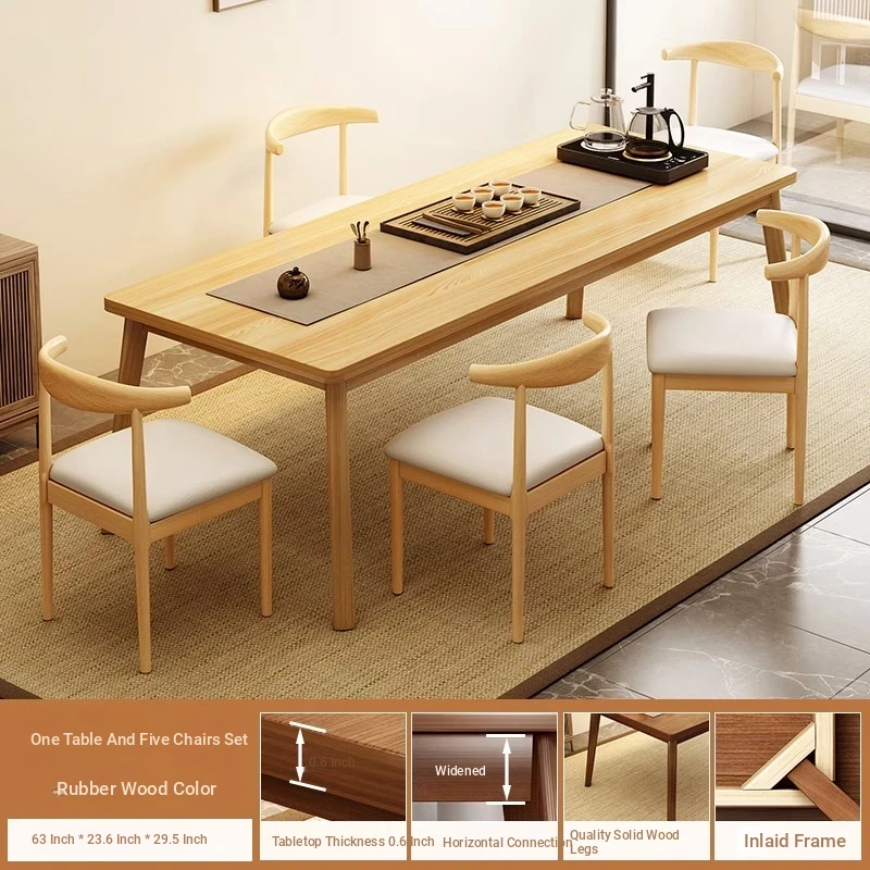 Meeting guests Hao Yao [a table of Iron 4 chairs] 62.99in*23.62in rubber wood color