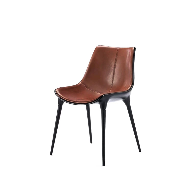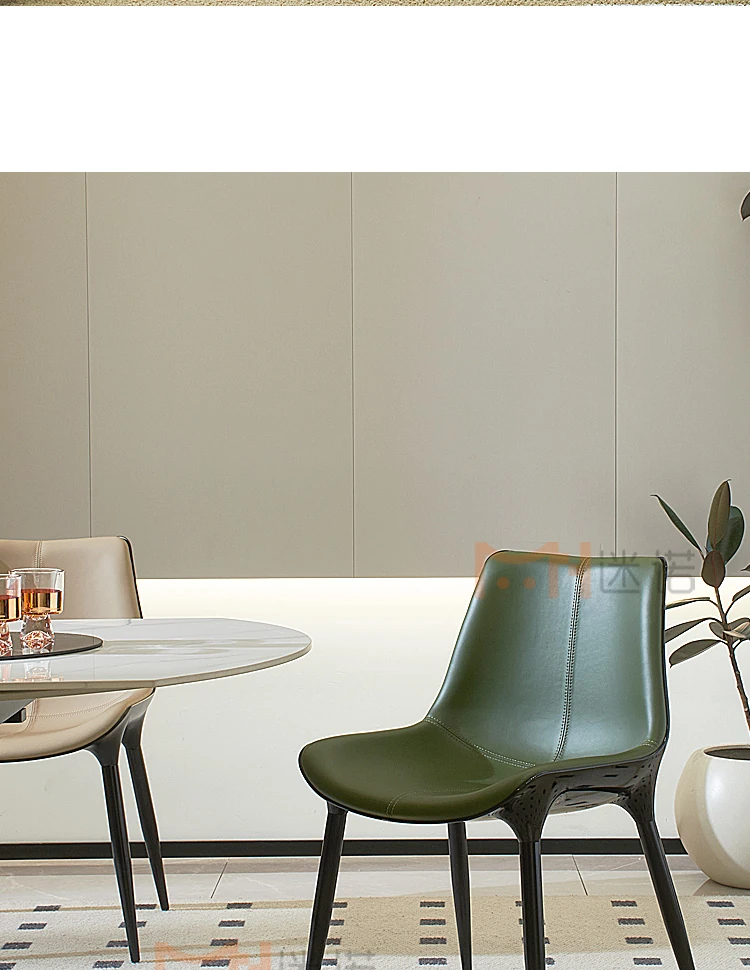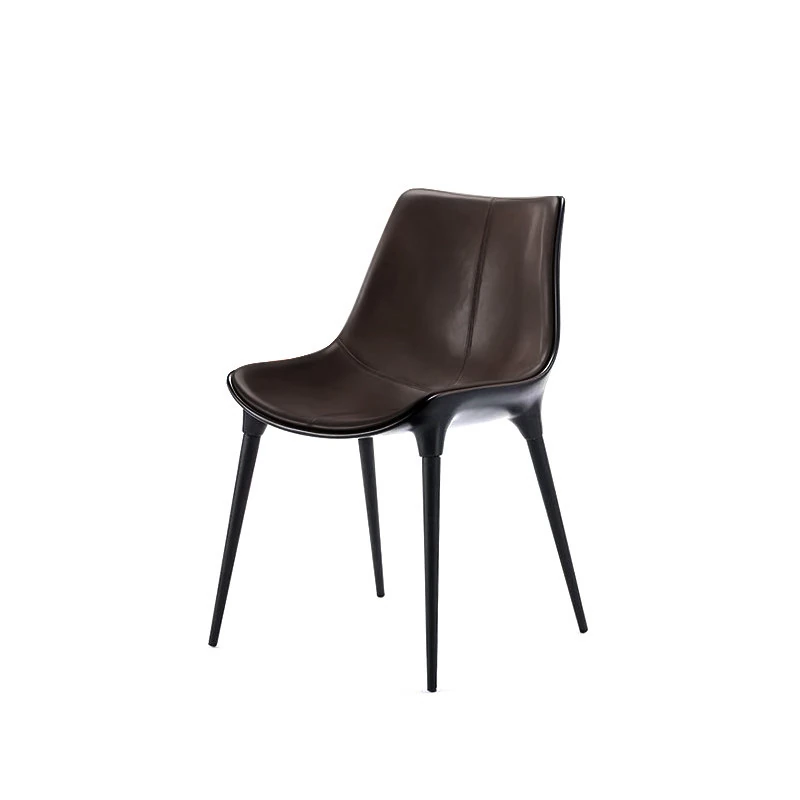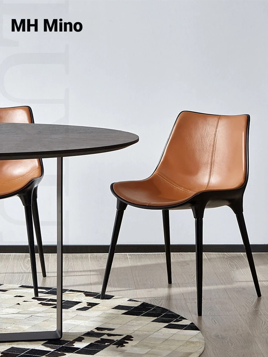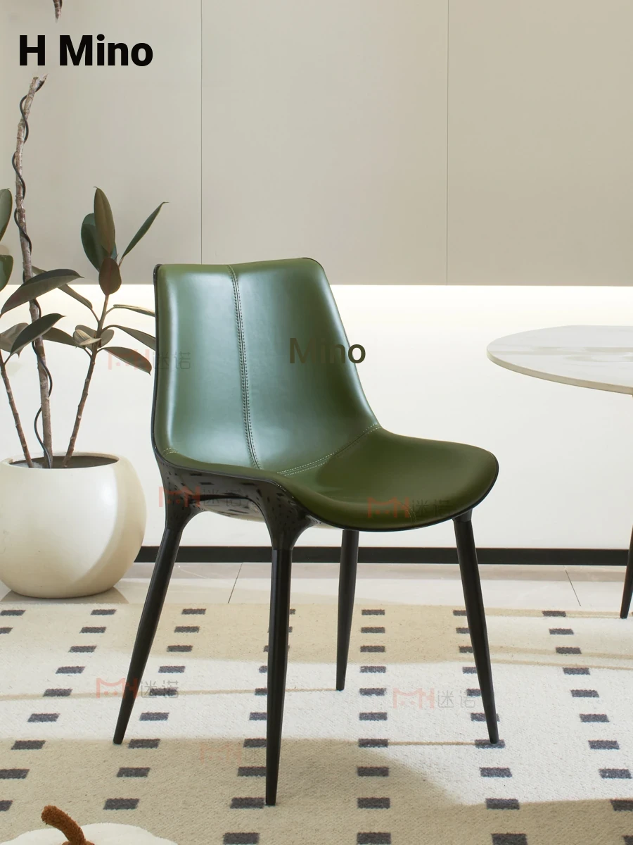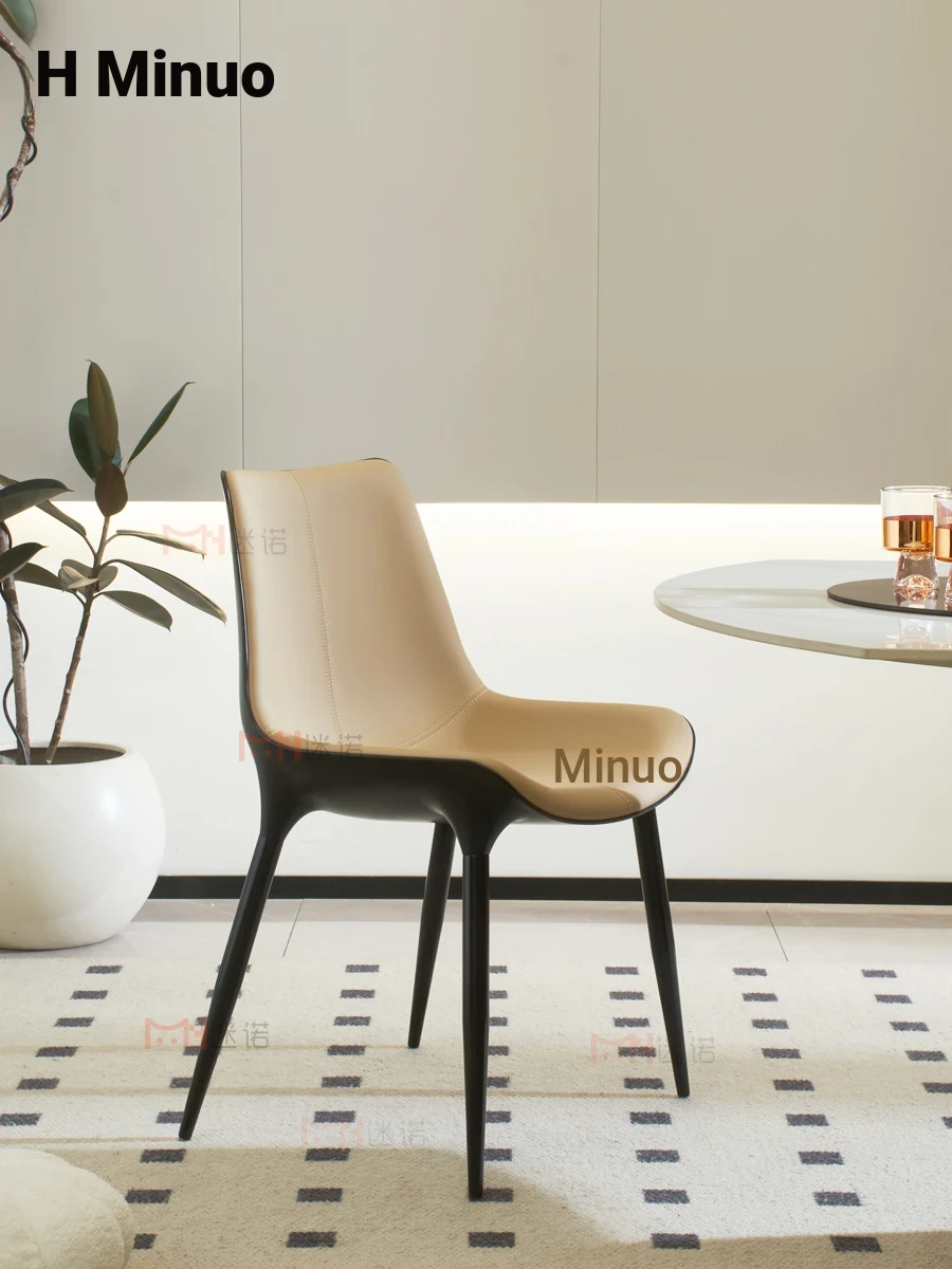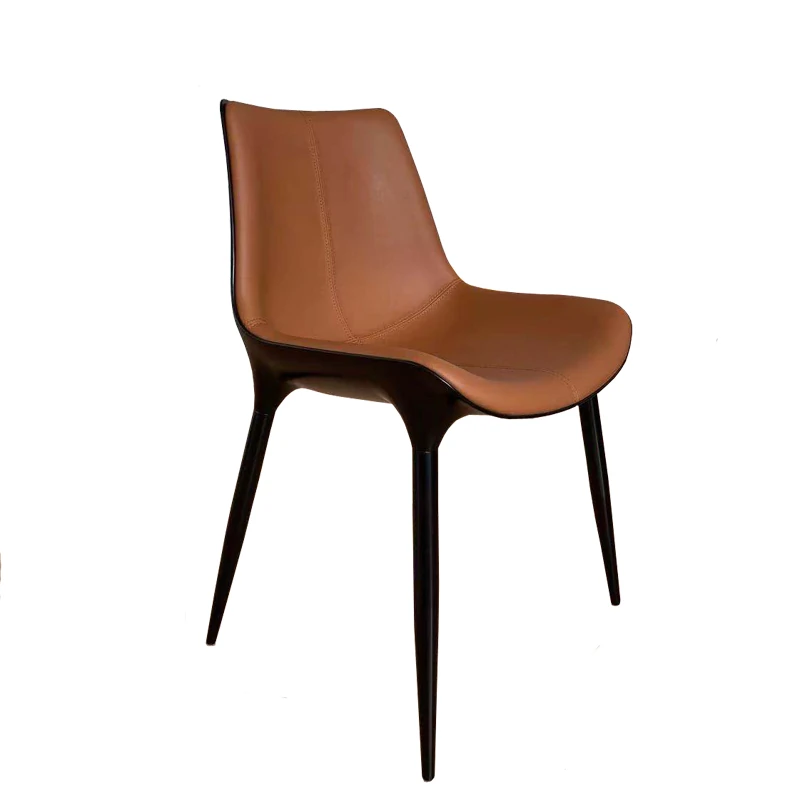 Nordic Luxury Dining Chair - Designer Home Chair for Restaurants and Cafes, Comfortable High-End Leather and Metal Backrest Chair