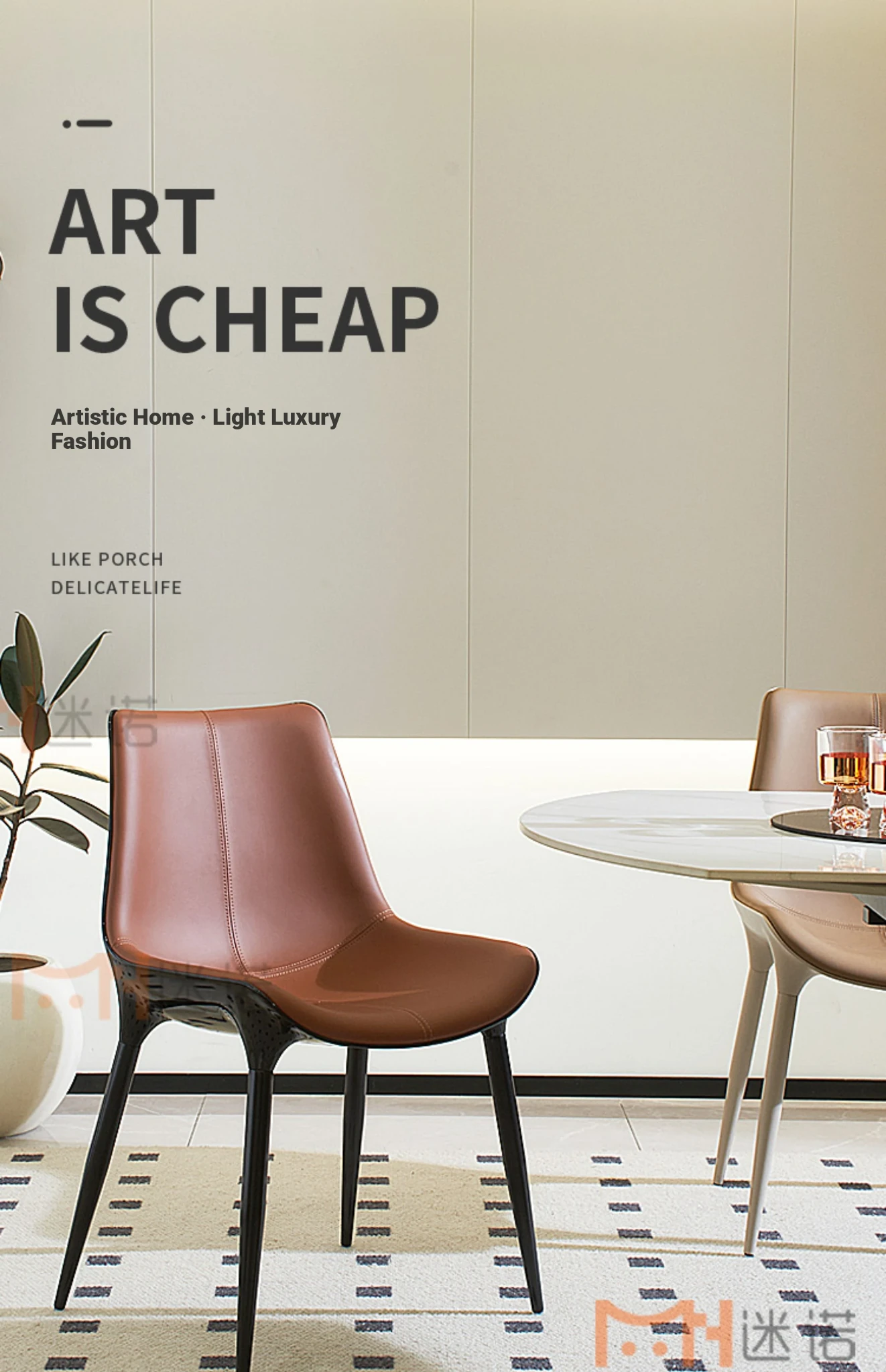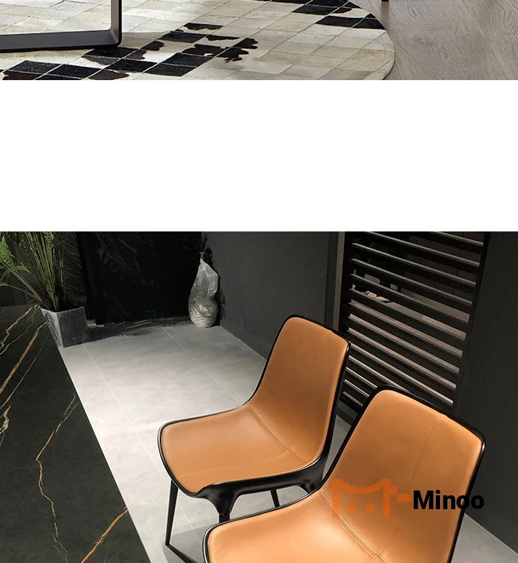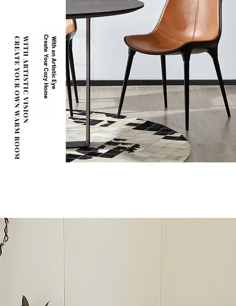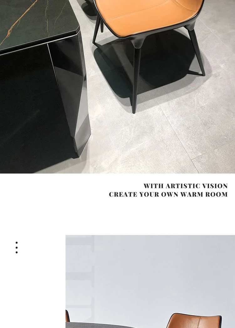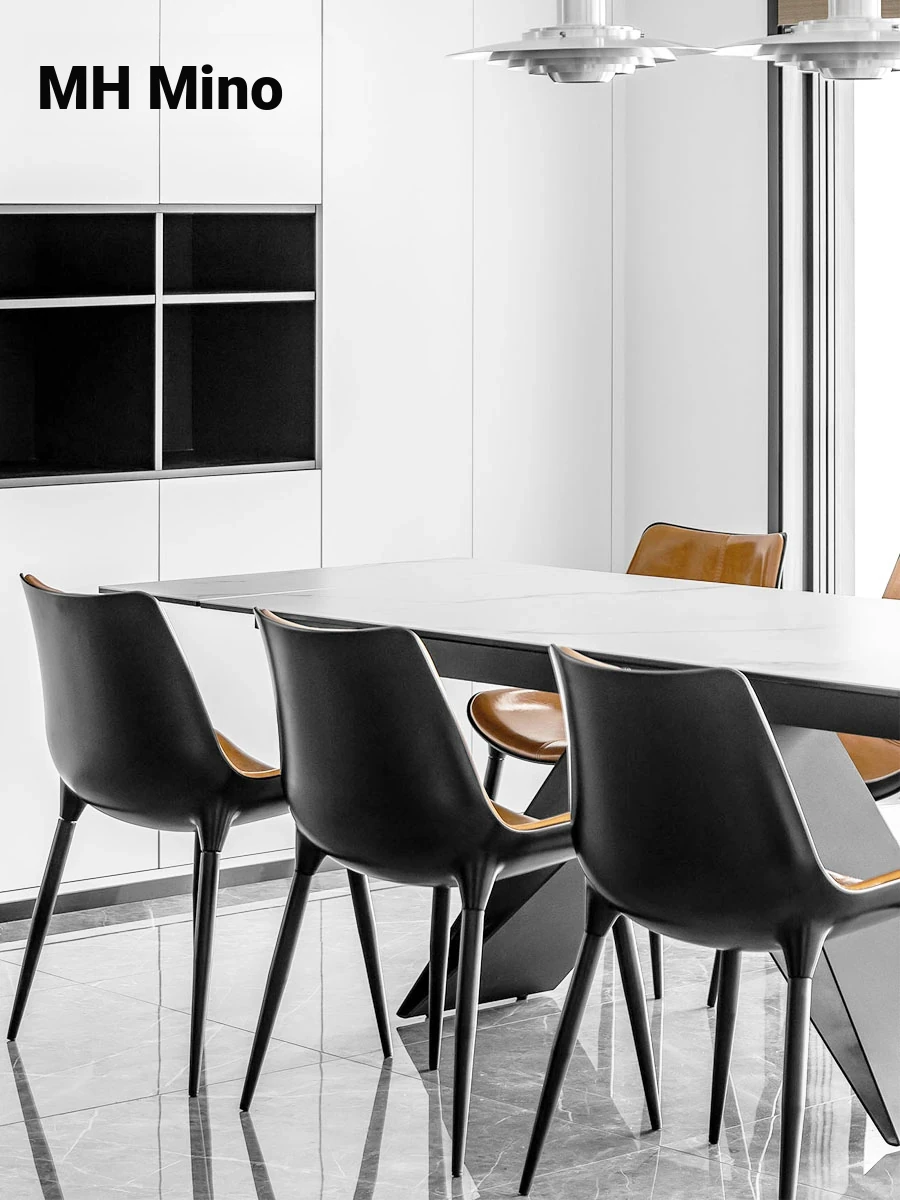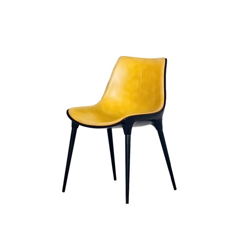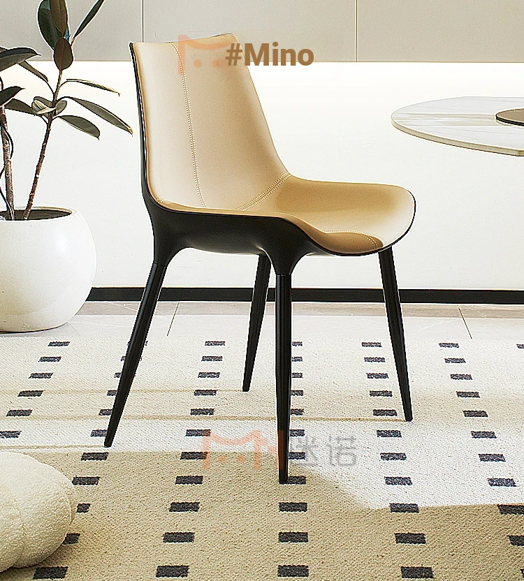 Nordic Luxury Dining Chair - Designer Home Chair for Restaurants and Cafes, Comfortable High-End Leather and Metal Backrest Chair