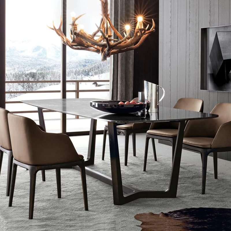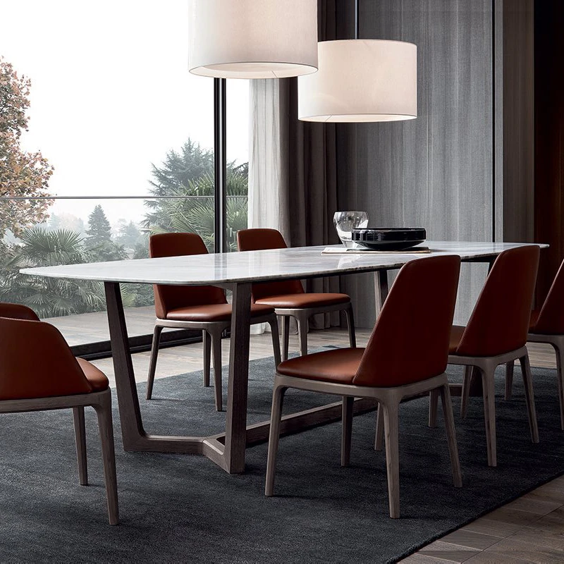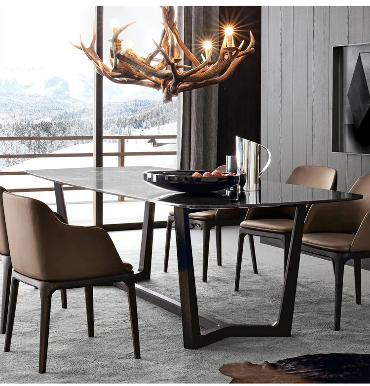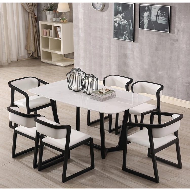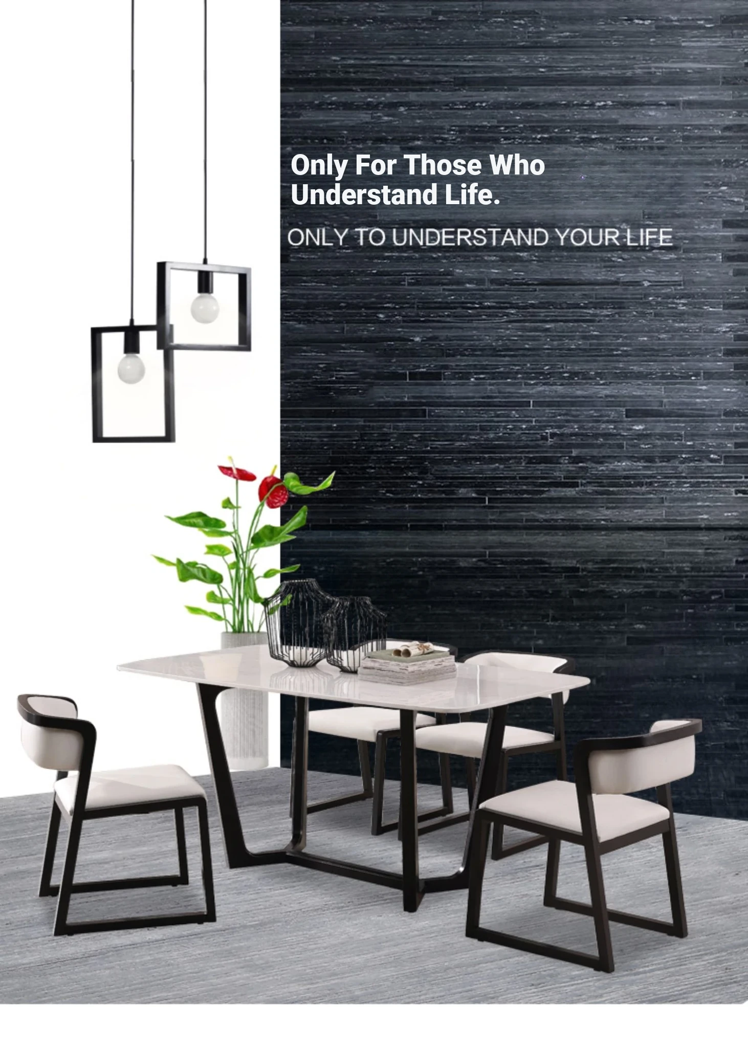 Nordic Marble Dining Table - Modern Minimalist White Ash Wood Stylish Square Table Set for 6 People - Perfect for Elegant Dining Experiences
