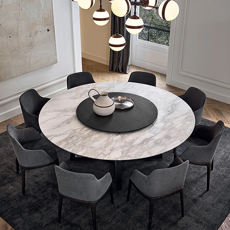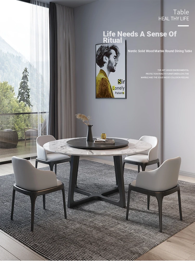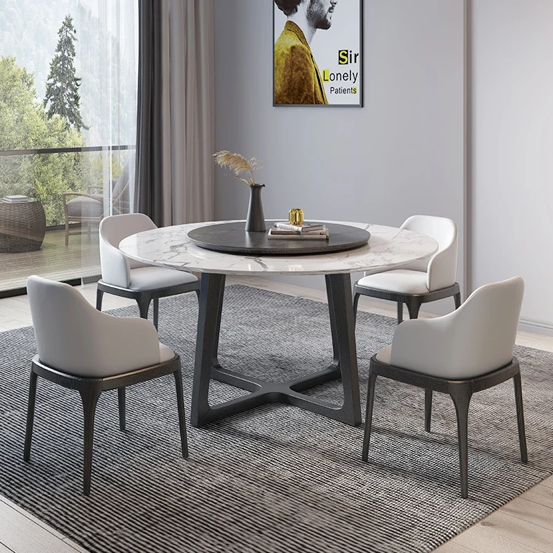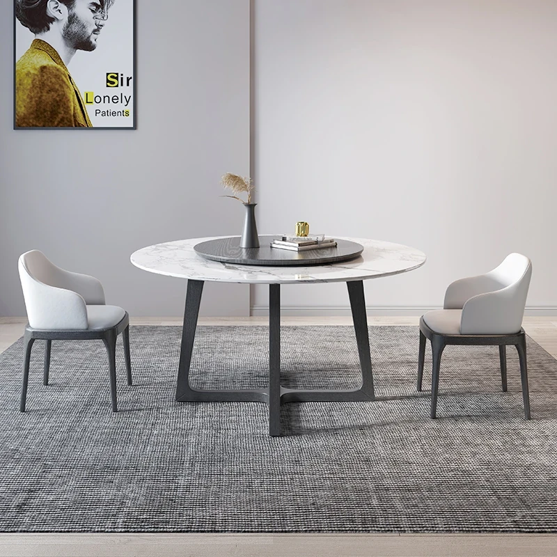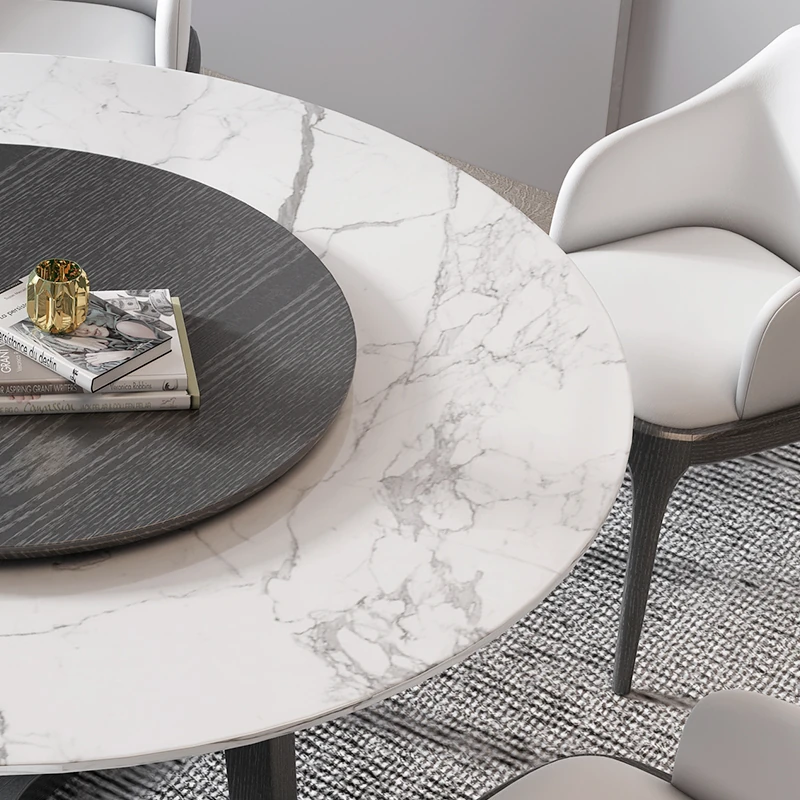 Nordic Marble Dining Table Set - Modern Minimalist Solid Wood Light Luxury Round Table with Rotating Feature for Small Spaces
