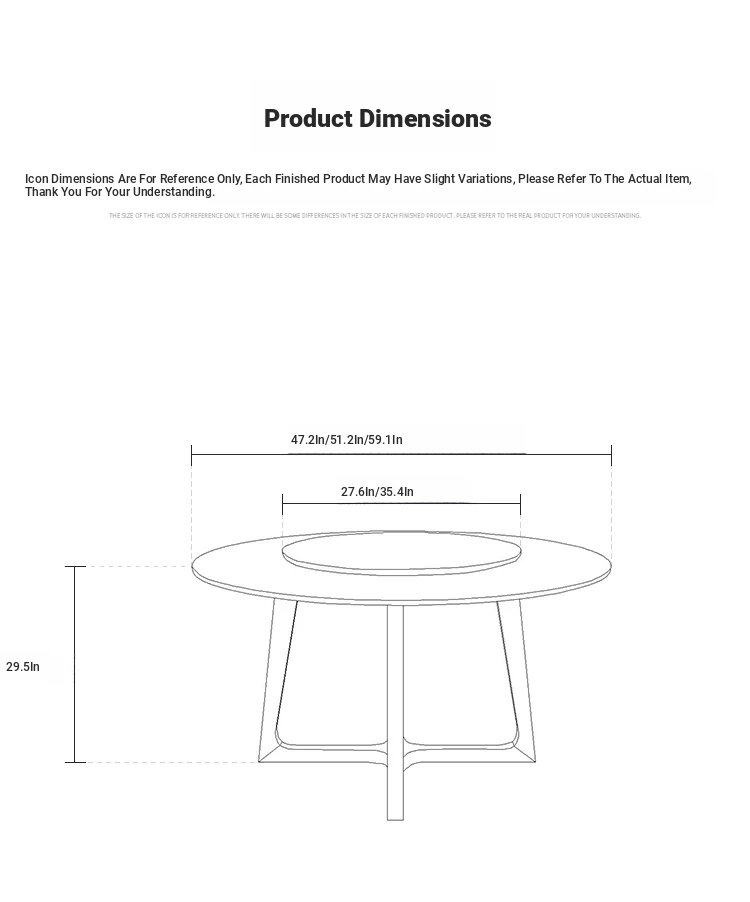 51.18 in with turntable +6 chairs