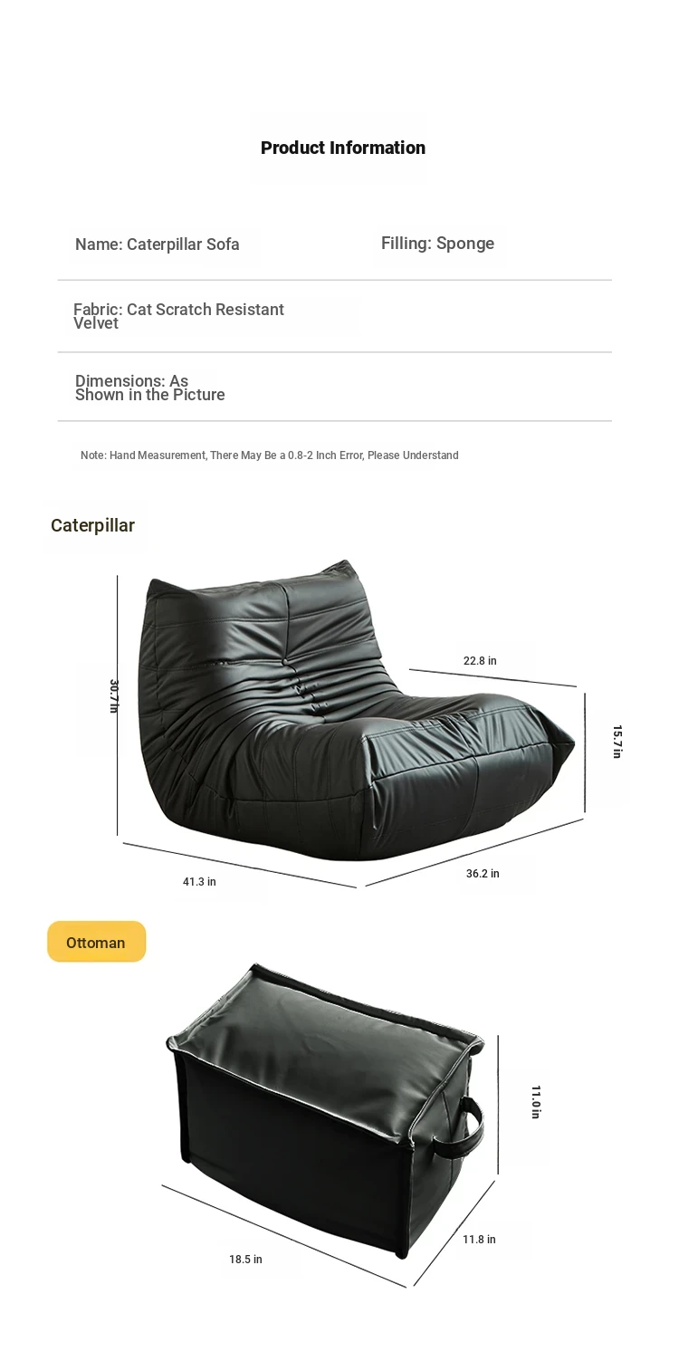Nordic Togo Caterpillar Sofa - Stylish Single Chair for Living Room & Bedroom, Cozy Lazy Sofa, Trendy Balcony Lounger, Perfect for Relaxation and Aesthetic Decor