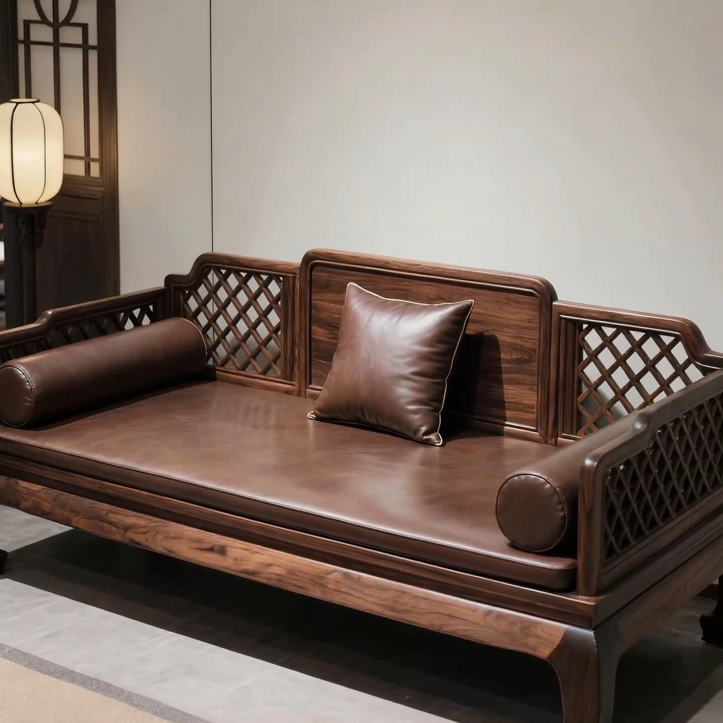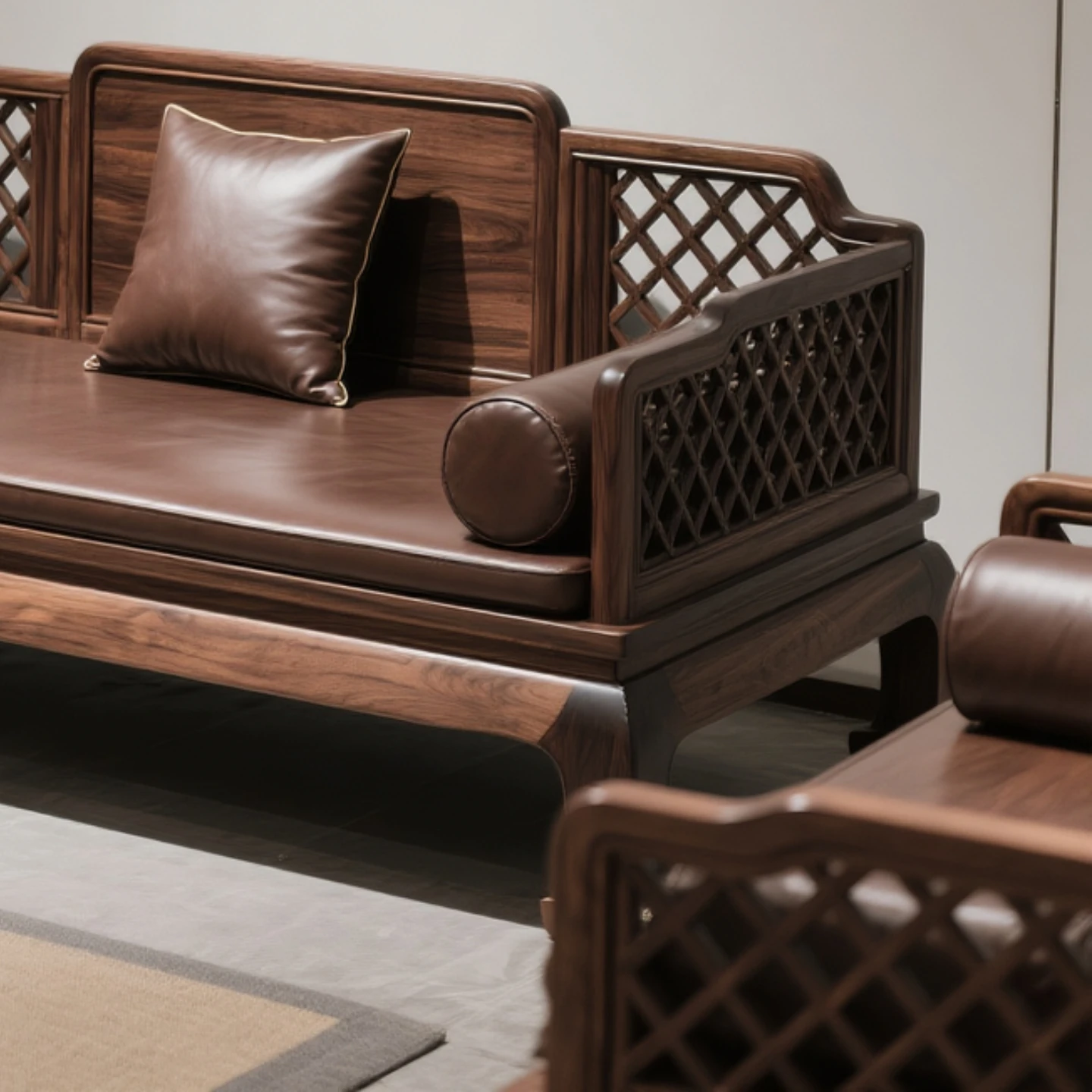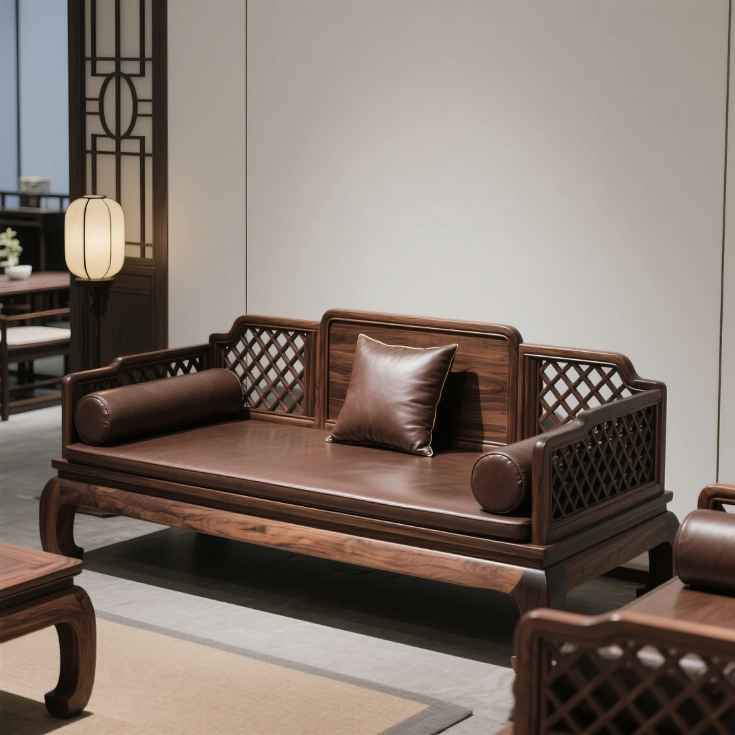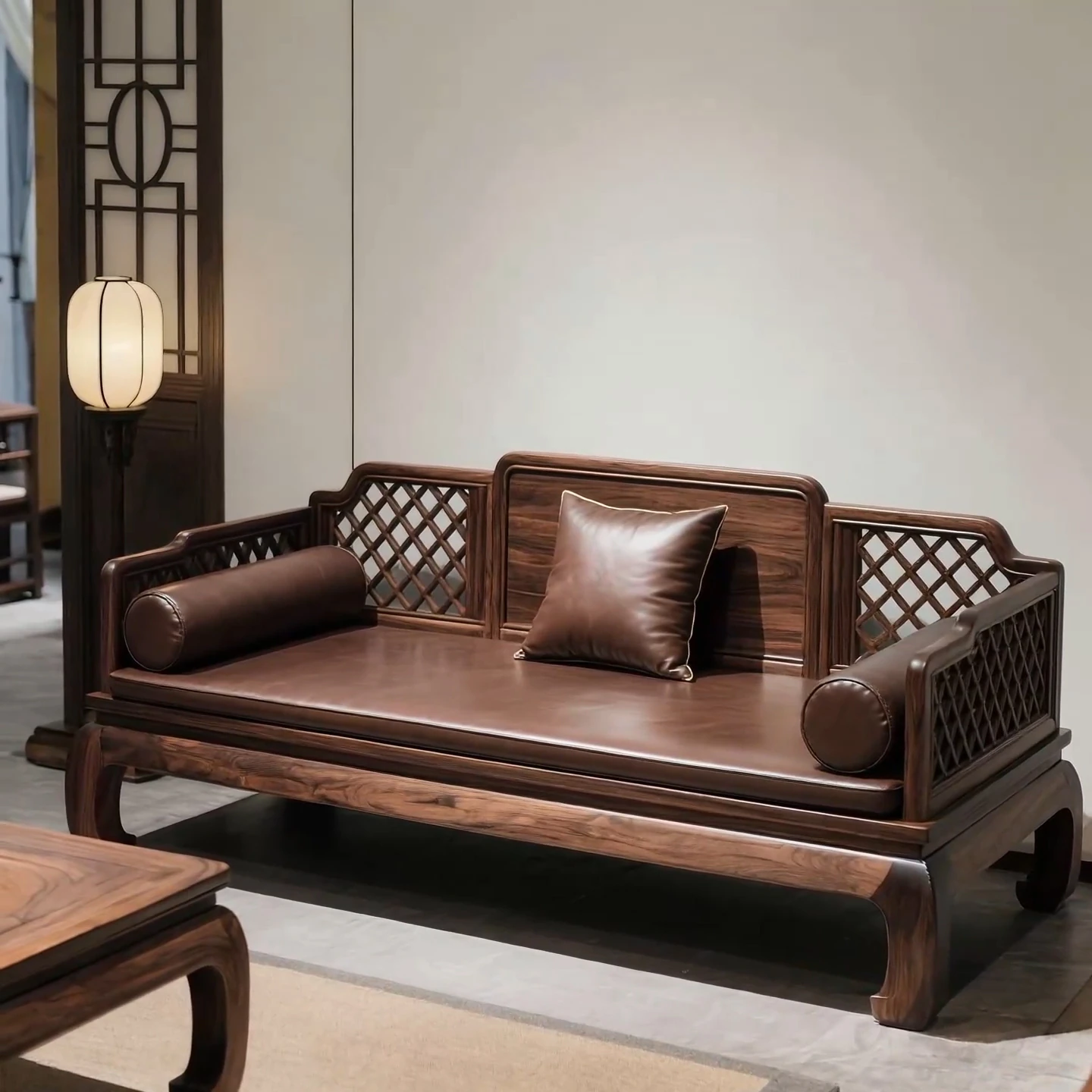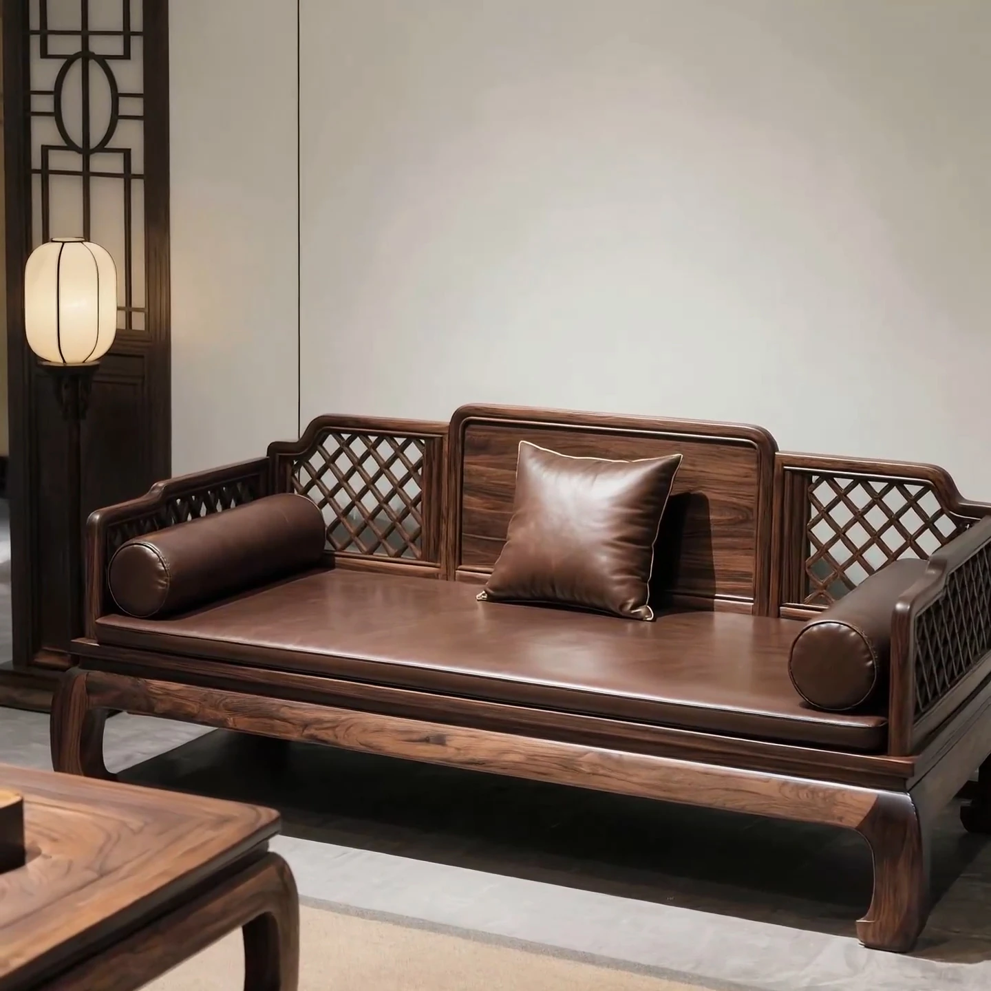 North American Black Walnut New Chinese Style Luohan Bed Sofa - Solid Wood Three-Seater Sofa with Coffee Table, Modern Mortise and Tenon Design for Living Room