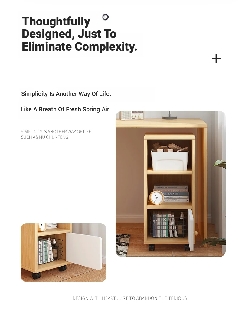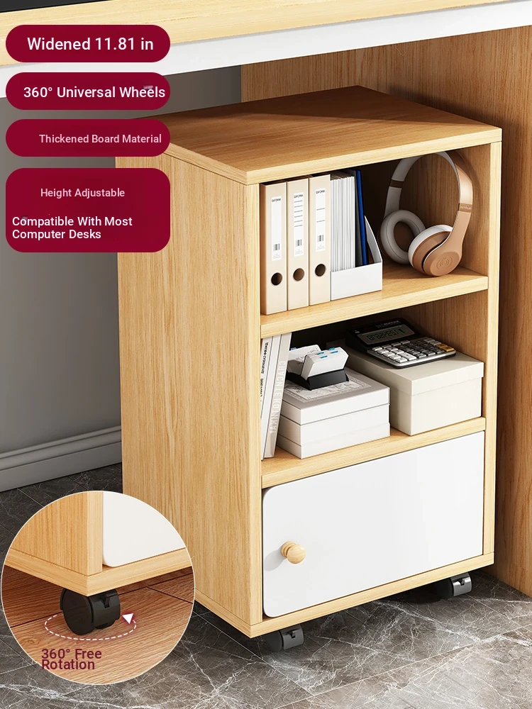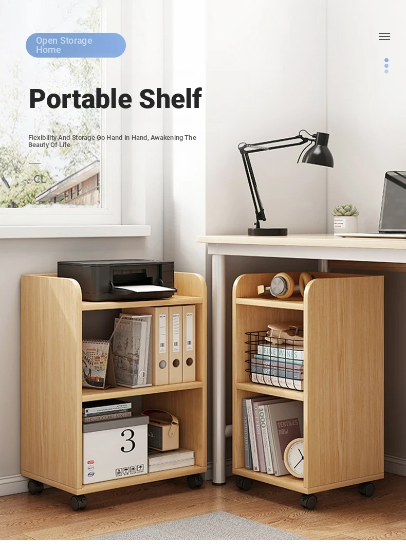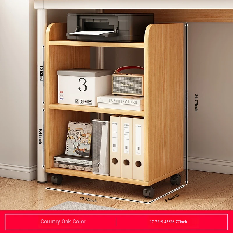 Portable Small Bookshelf with Wheels – Versatile Storage Cabinet for Desk Side, Compact Under-Desk Organizer, Easy Assembly Low Bookcase for Efficient Space Management
