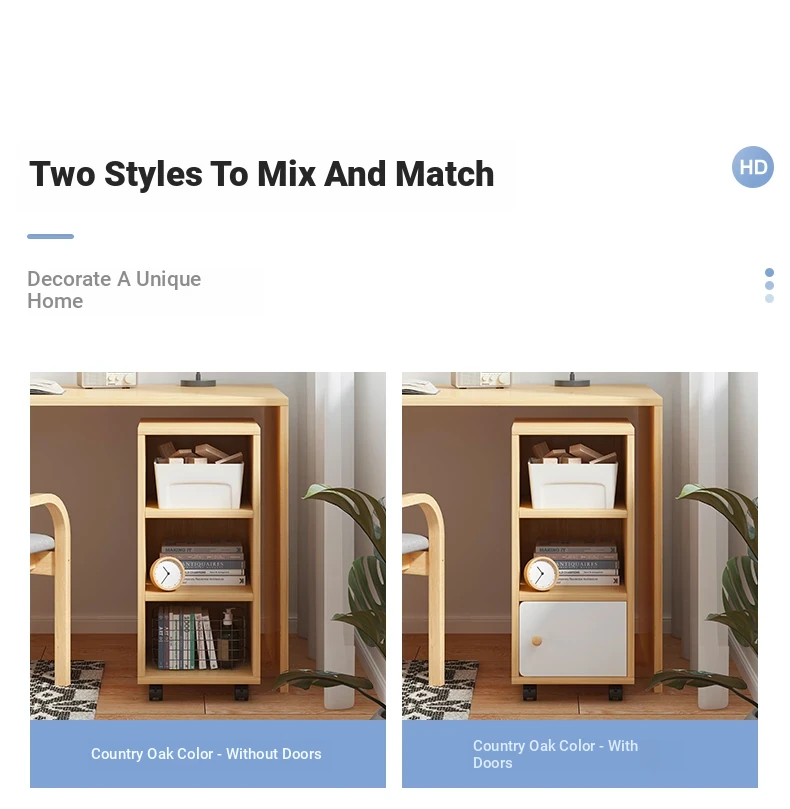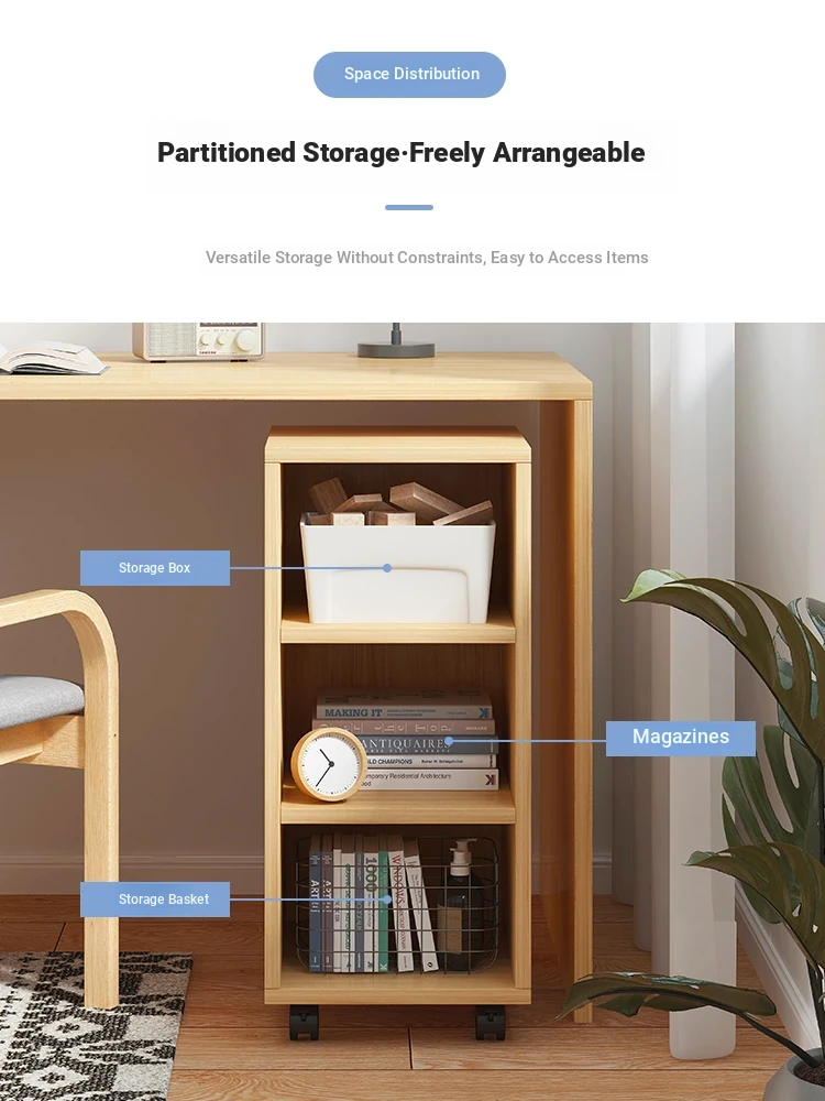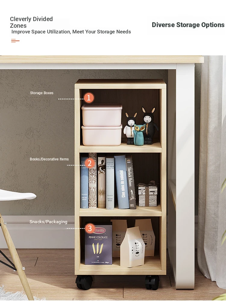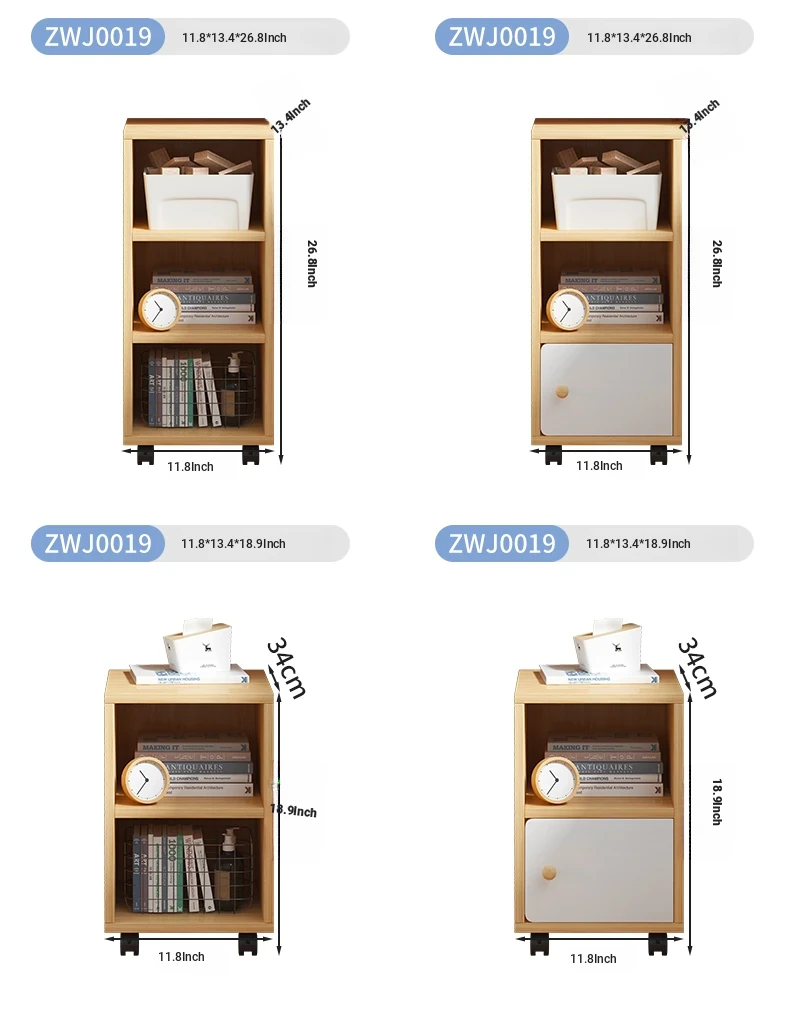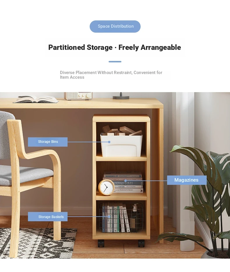 Portable Small Bookshelf with Wheels – Versatile Storage Cabinet for Desk Side, Compact Under-Desk Organizer, Easy Assembly Low Bookcase for Efficient Space Management
