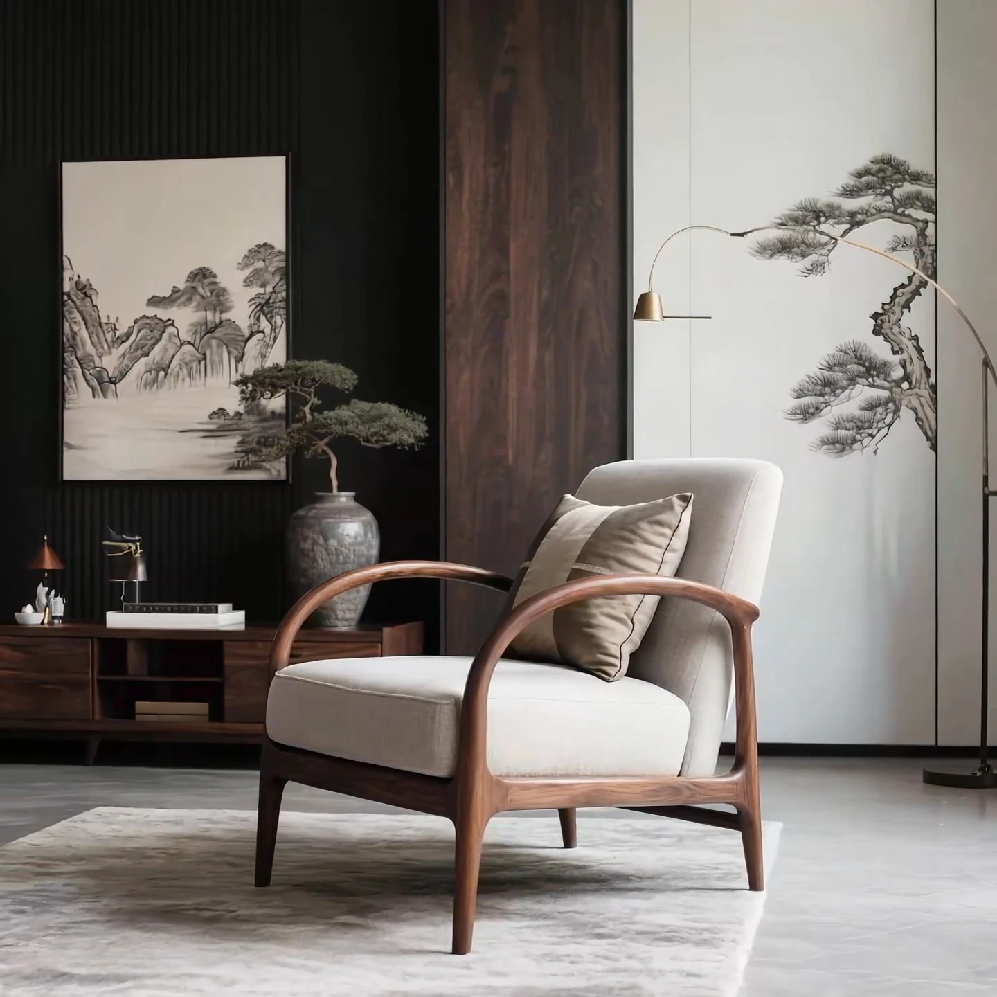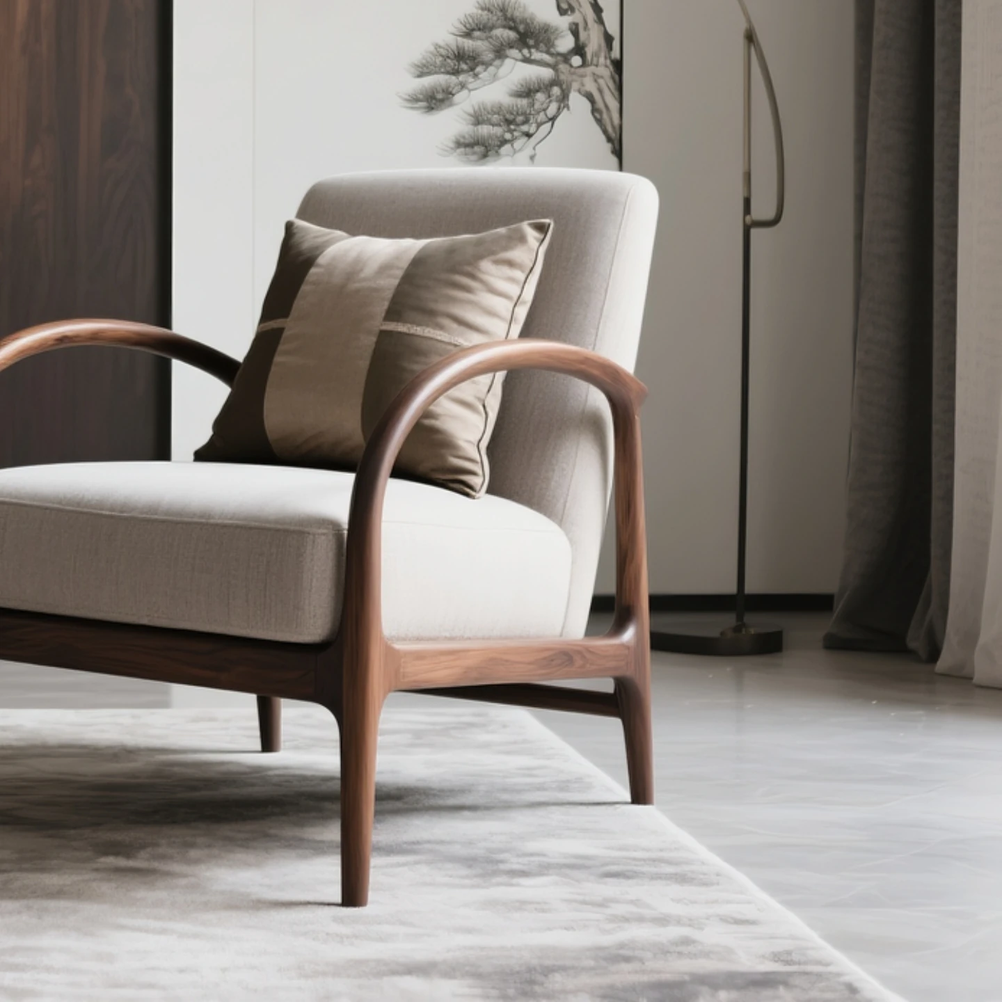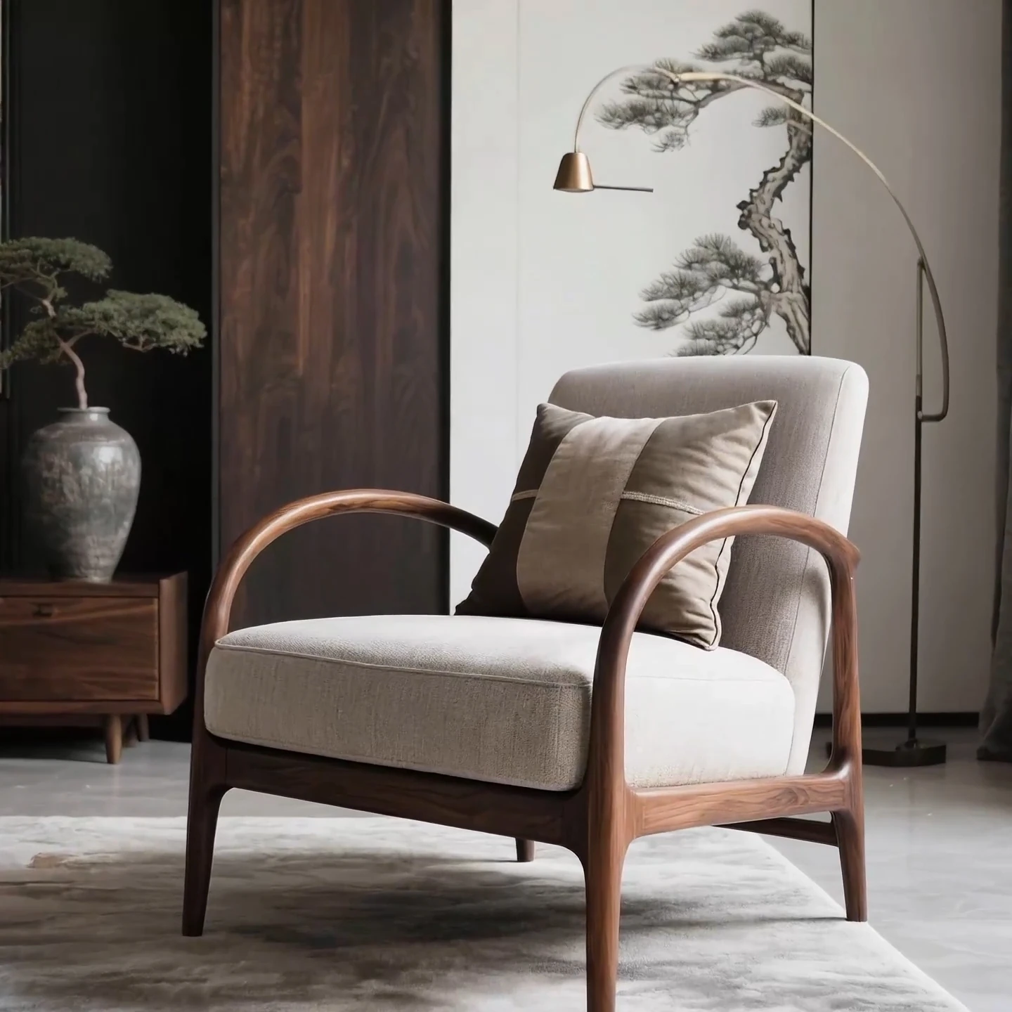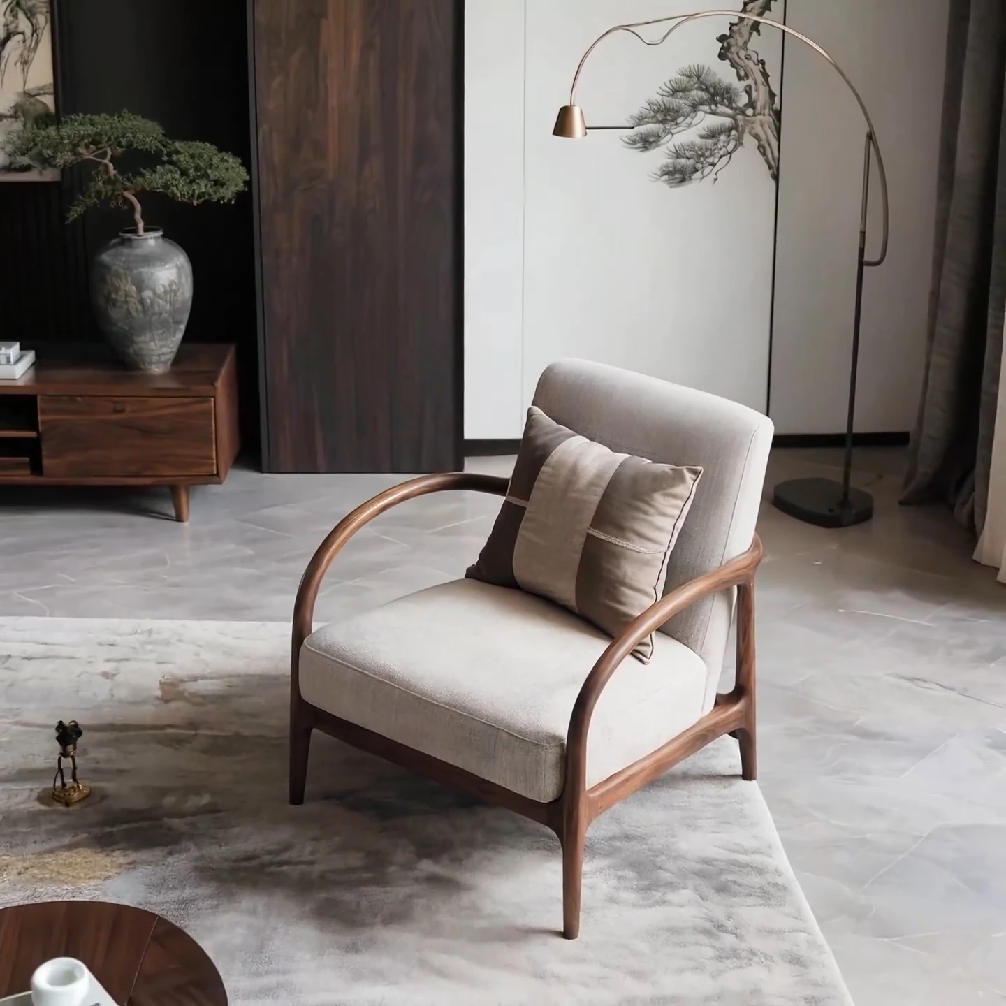 Premium Black Walnut Leather Recliner Chair - Luxurious Solid Wood Single Sofa for Your Study or Tea Room, Perfect for Relaxation and Comfort.
