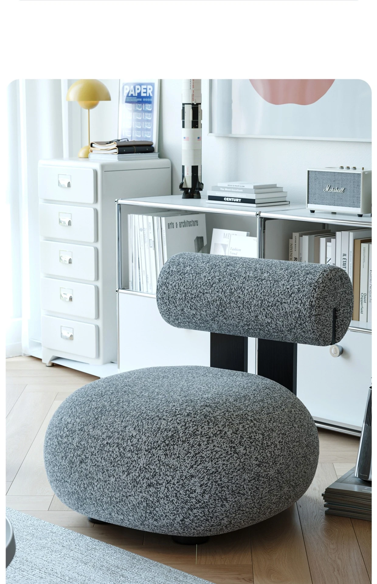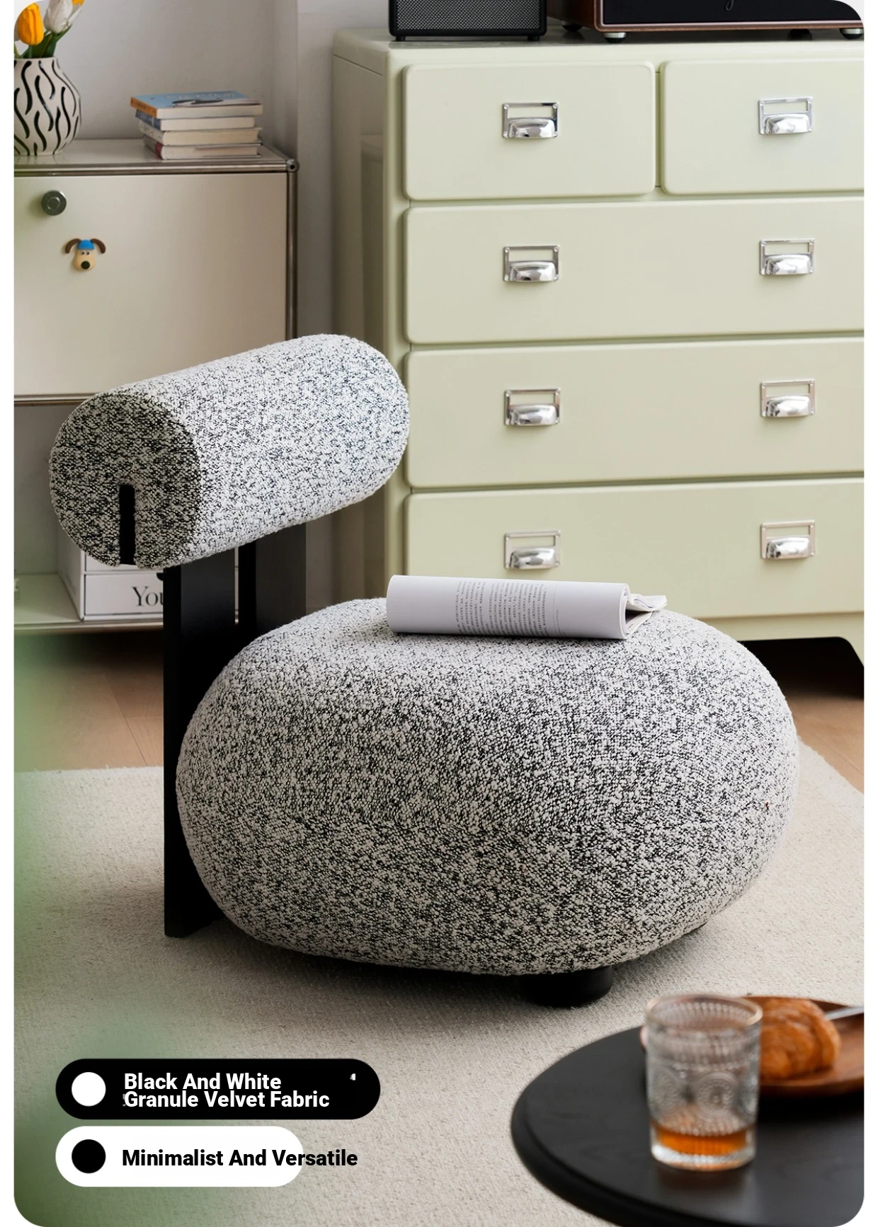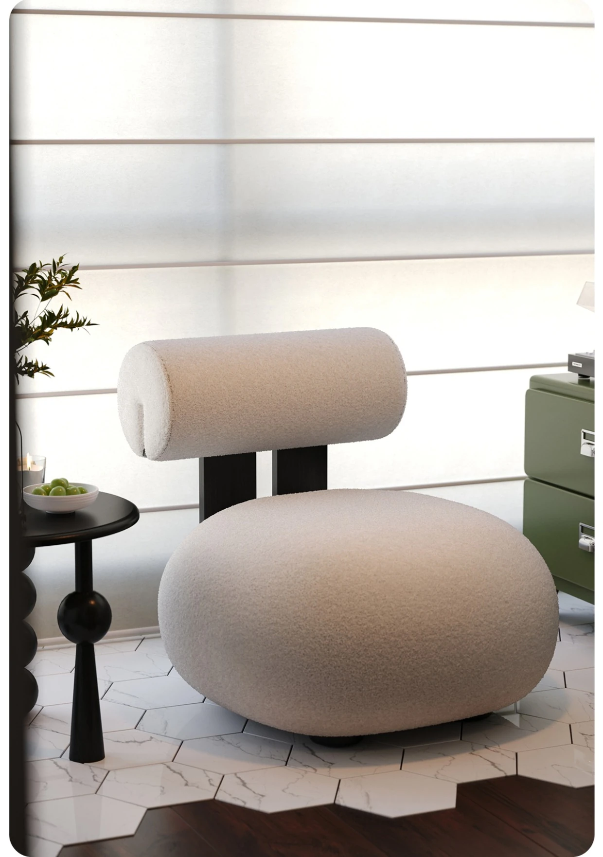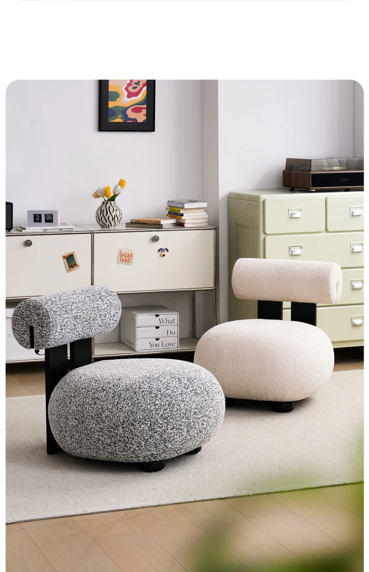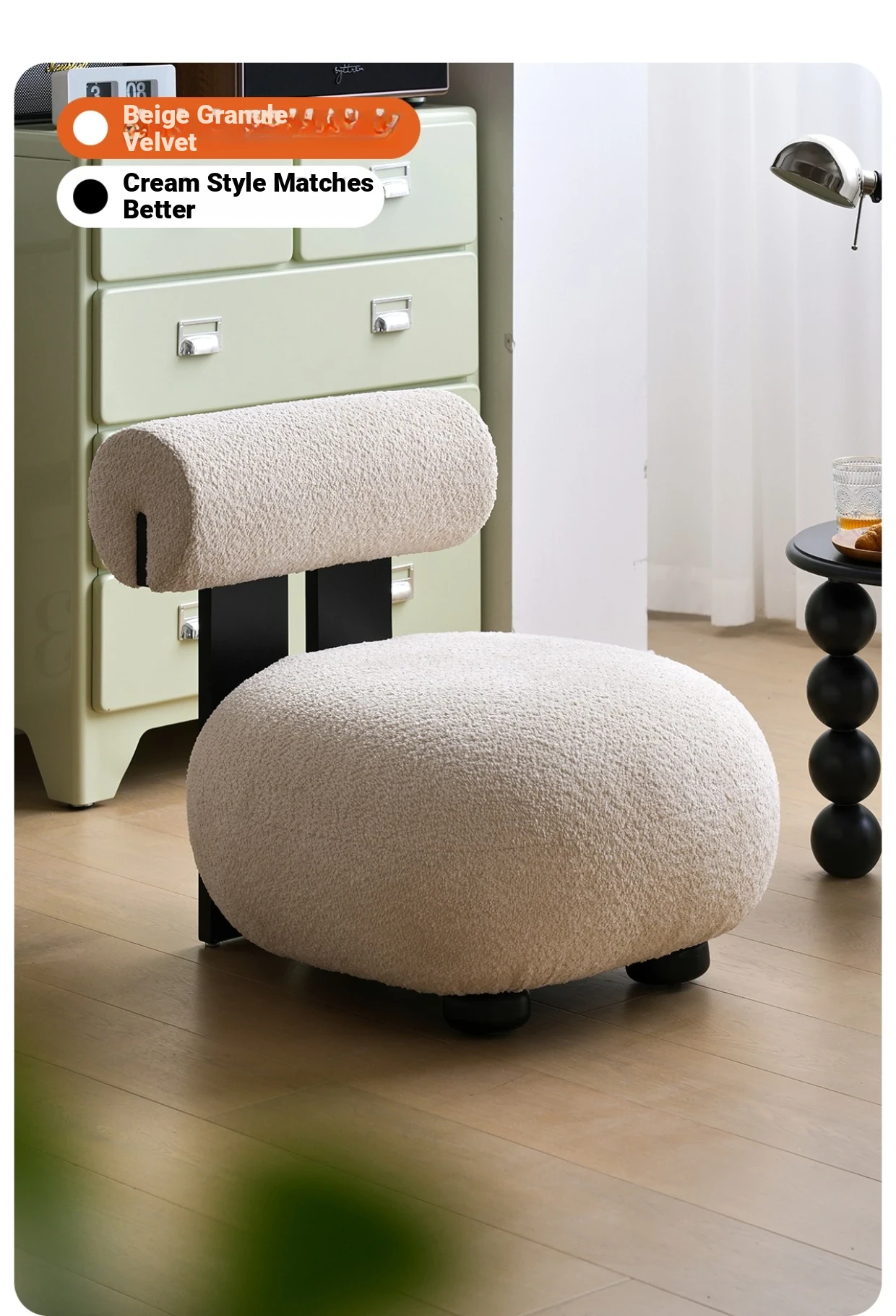 Retro Creamy Plush Single Sofa Chair for Small Living Rooms - Designer-Approved Cozy Lamb Fleece Armchair for Home and Airbnb, Perfectly Blending Style and Comfort in Minimalist Design