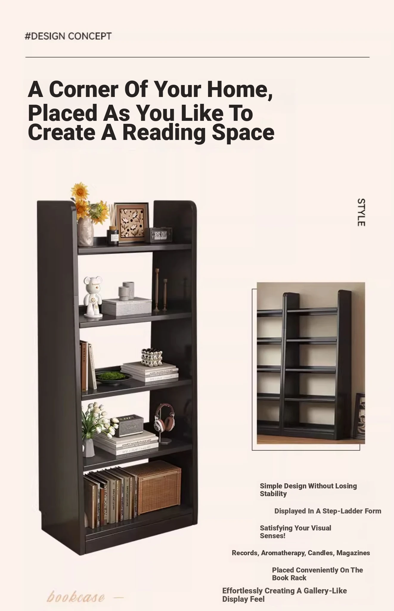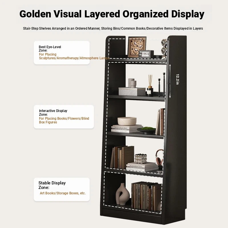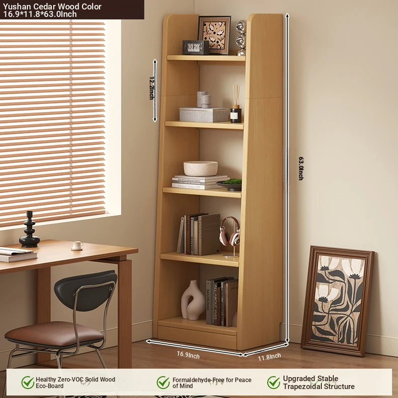 Rustic Wooden Bookshelf - Space-Saving Floor Storage Cabinet, Perfect for Living Room Wall, Narrow Display Unit for Home Use, Stylish and Functional Organizer