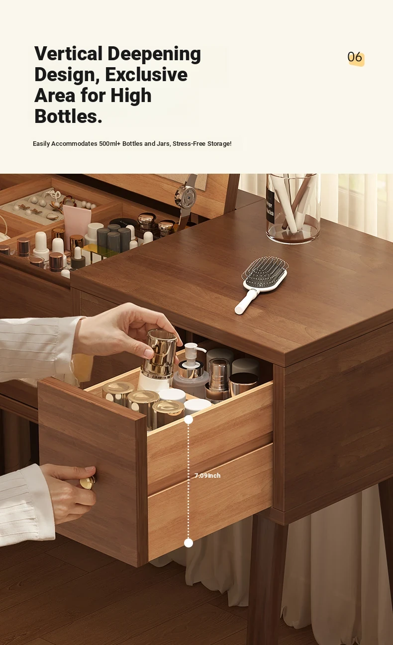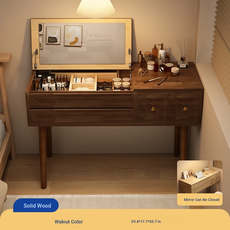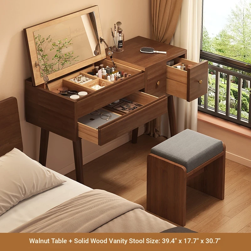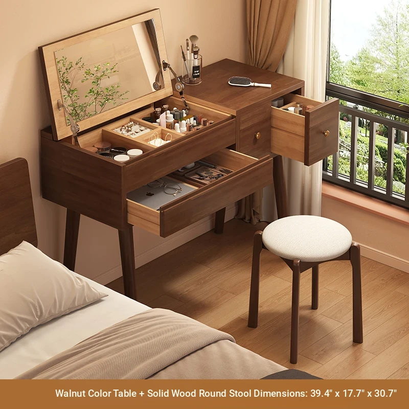 [Table + solid wood dressing stool⭐Whole shipment] walnut color 39.37in*17.72in*30.71in