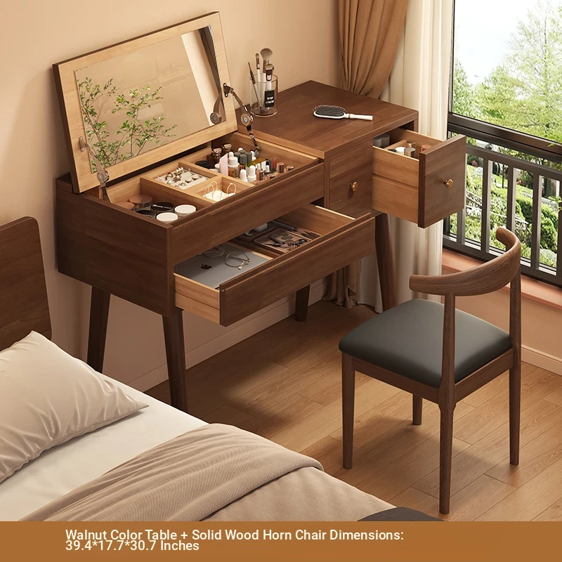 [Table + solid wood dressing chair⭐Whole shipment] walnut color 39.37in*17.72in*30.71in