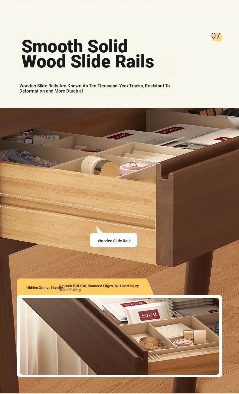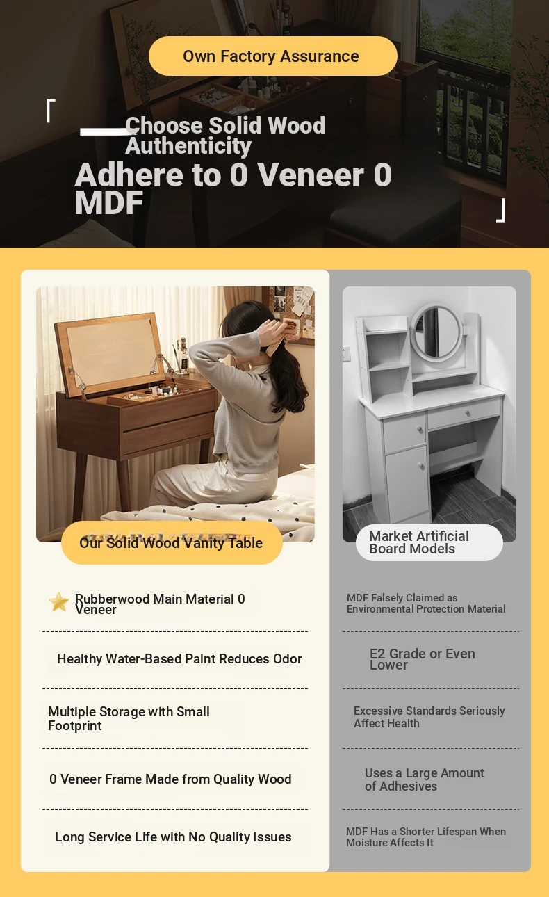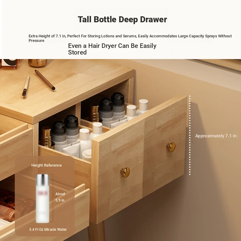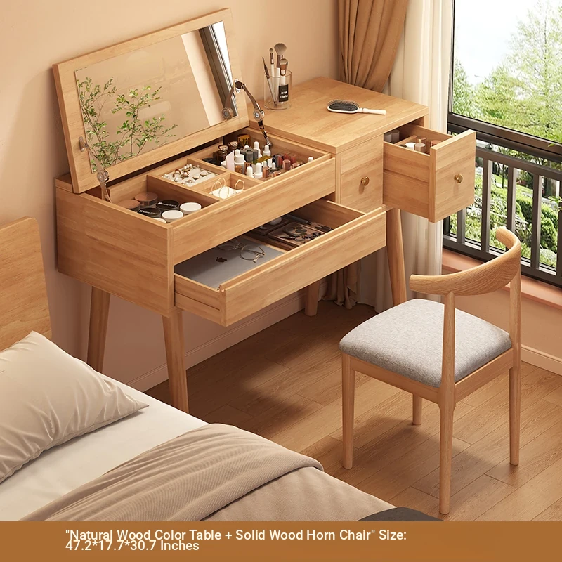 [Table + solid wood dressing chair⭐Whole shipment] log color 47.24in*17.72in*30.71in