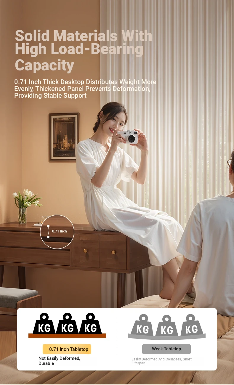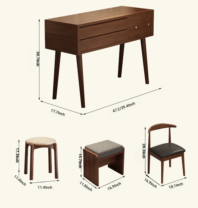 [Table + solid wood dressing stool⭐Whole shipment] walnut color 47.24in*17.72in*30.71in