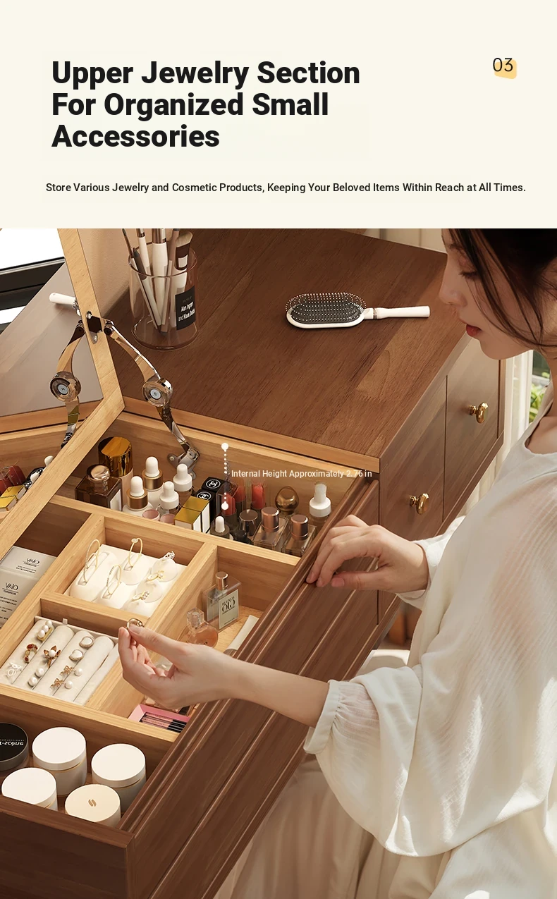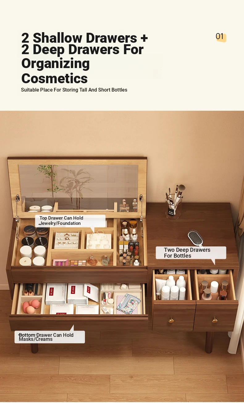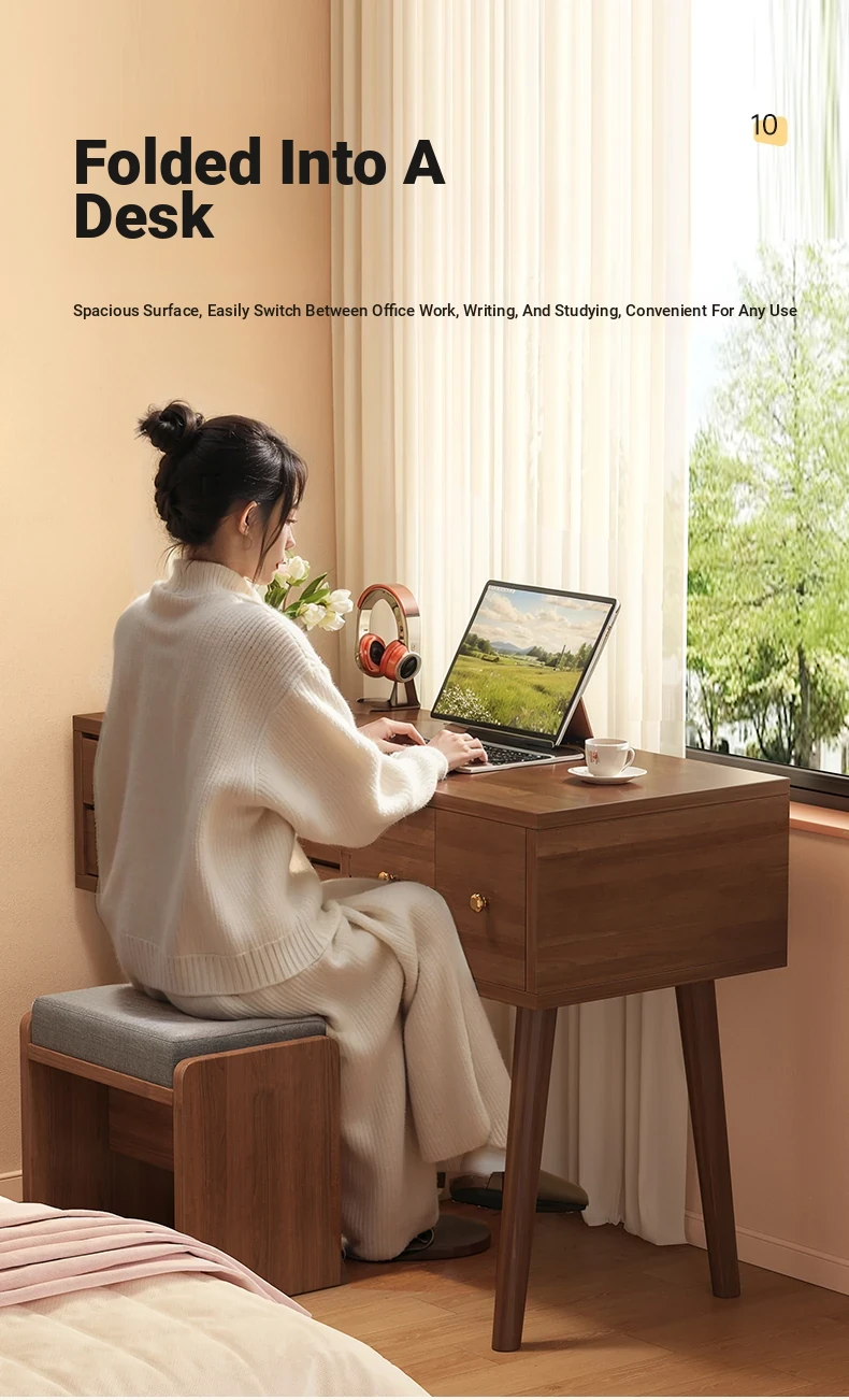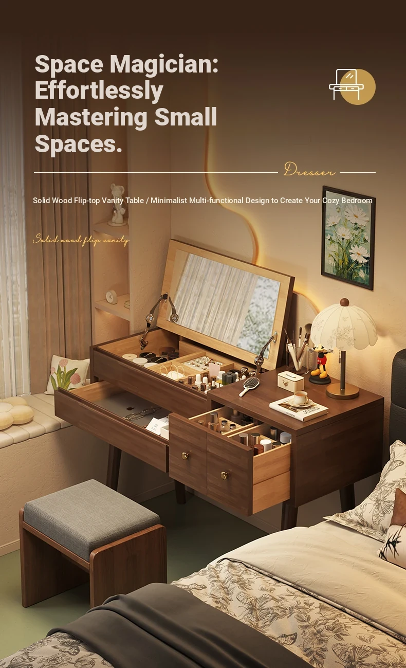Rustic Wooden Makeup Vanity with Flip-Top Nightstand - Compact Mini Corner Storage for Bedroom, 2025 New Design for Stylish Organization