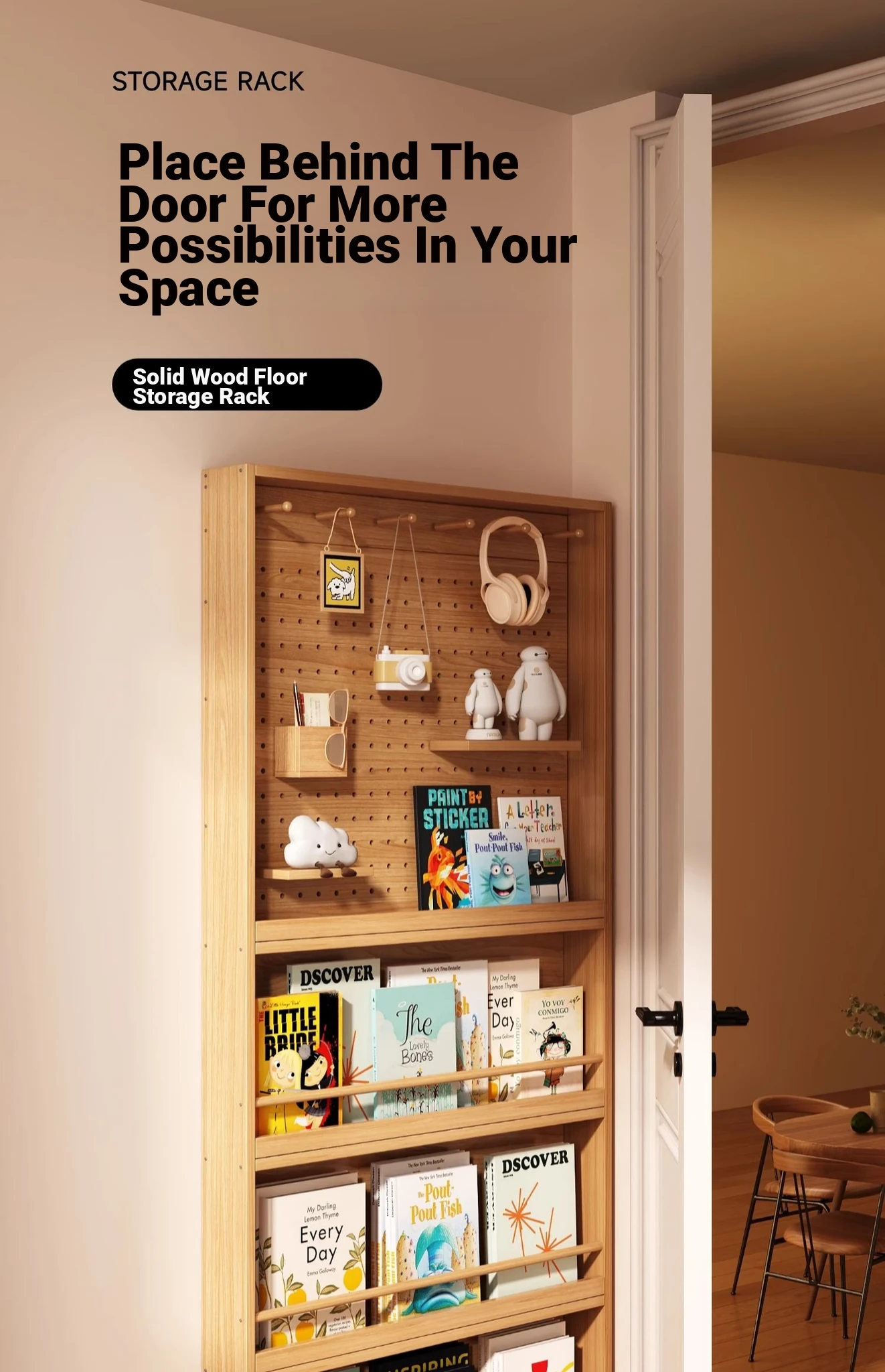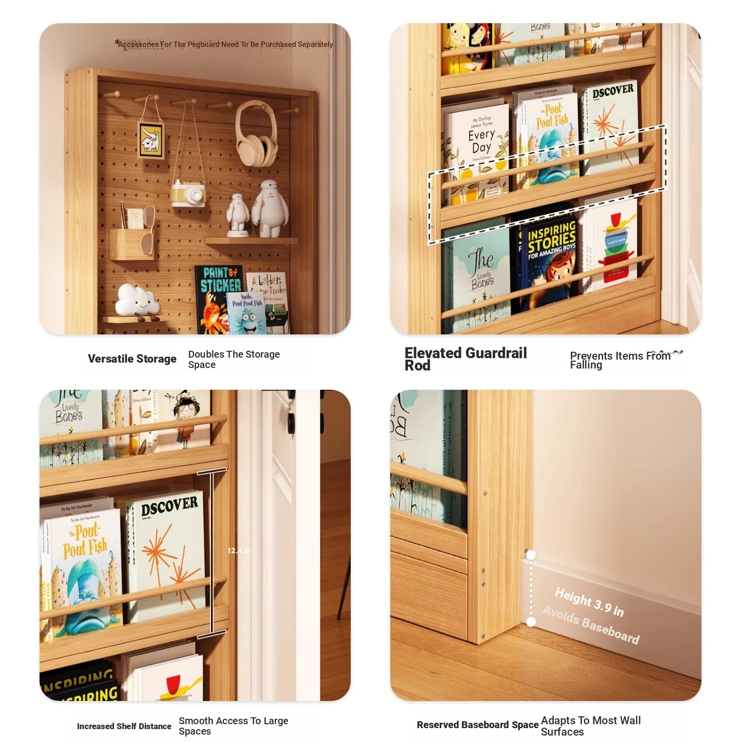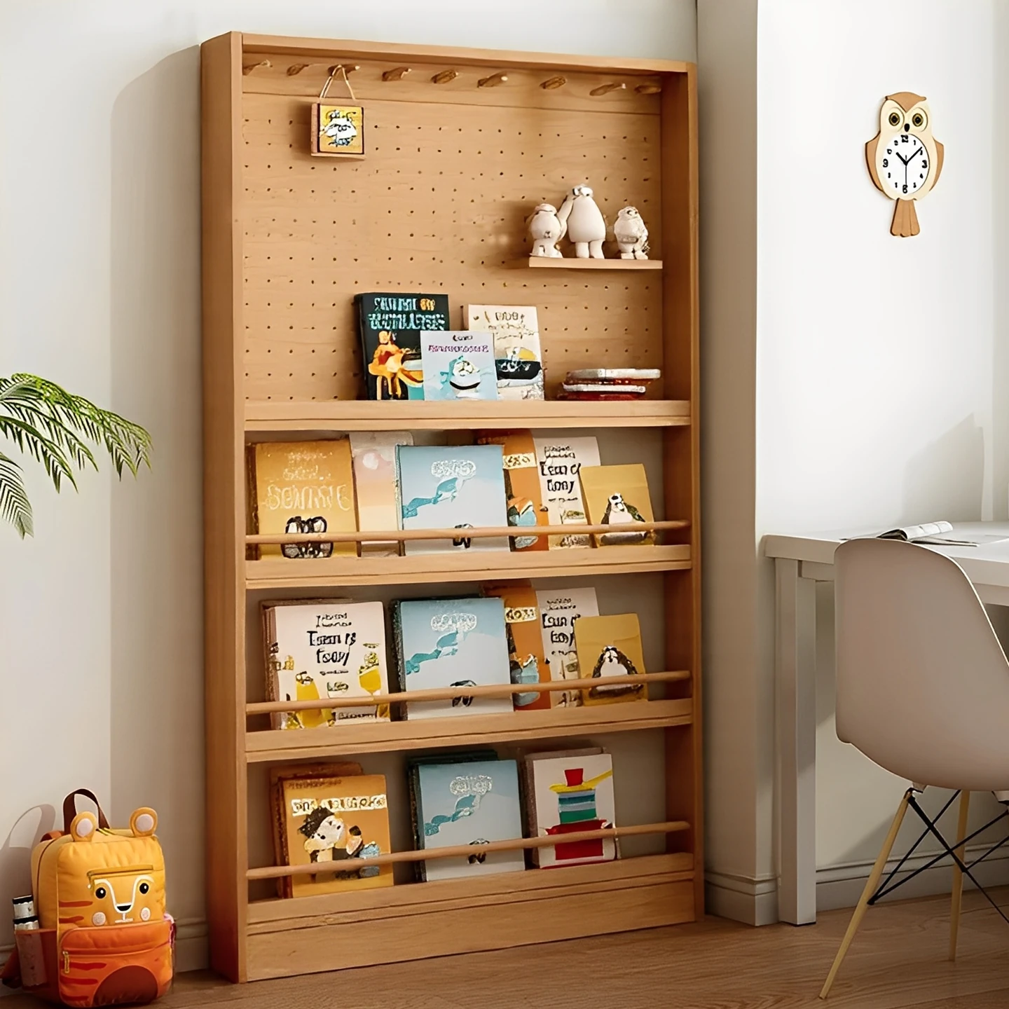 Slim Wall-Mounted Bookshelf with Hidden Storage - Perfect for Children's Picture Books, Versatile Pegboard Display Rack, Space-Saving Design, Ideal for Any Room!