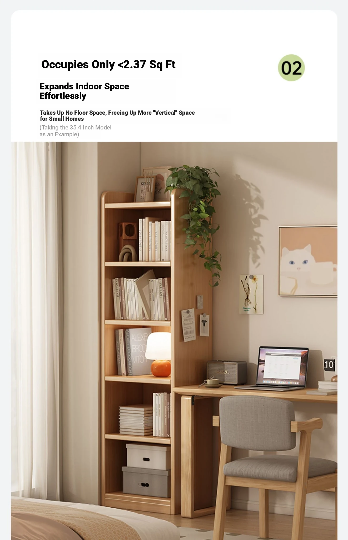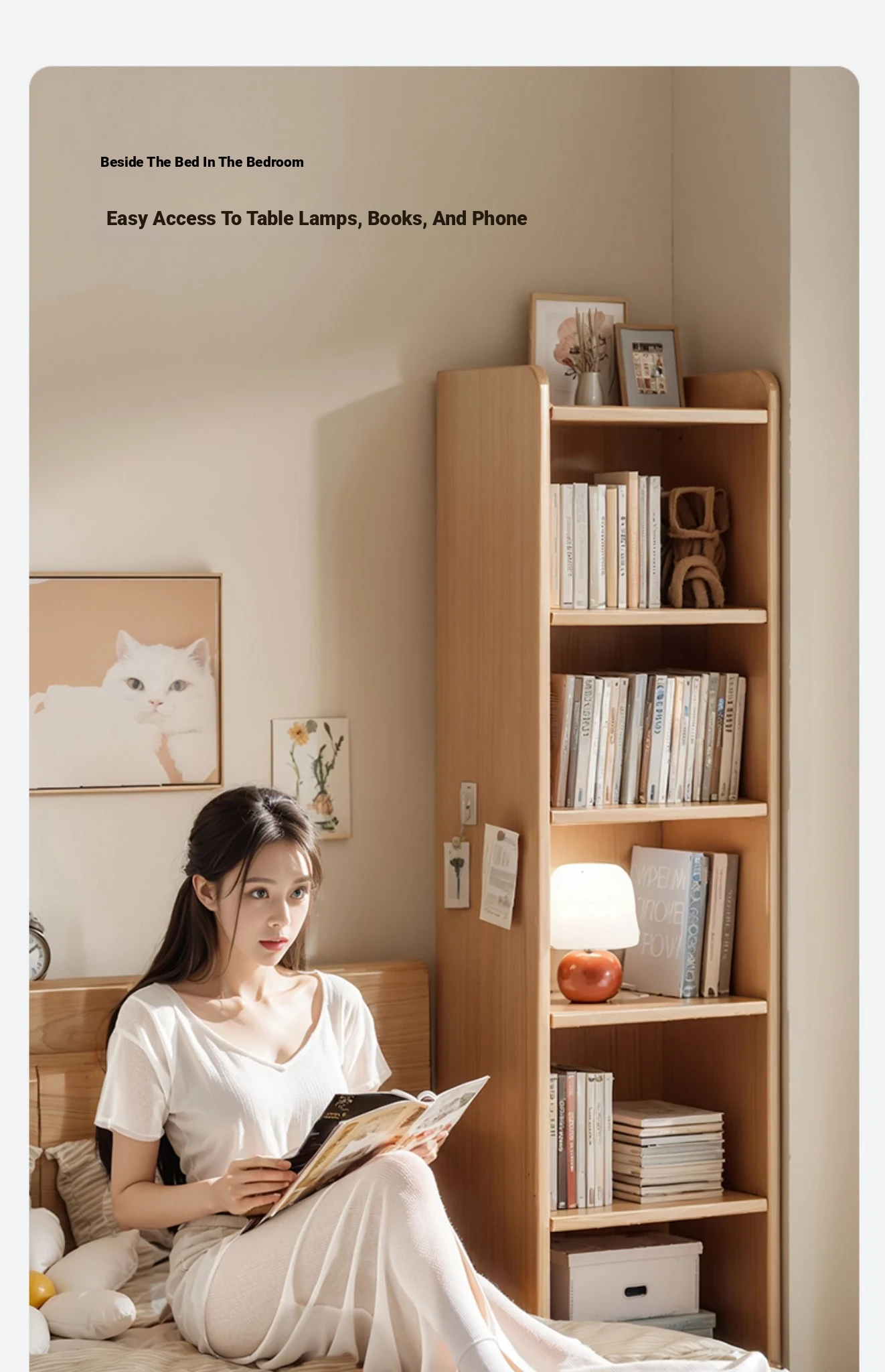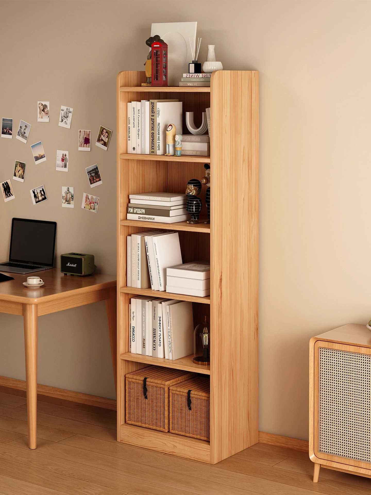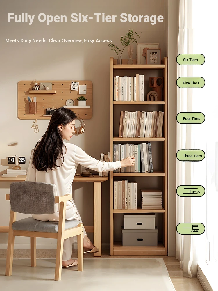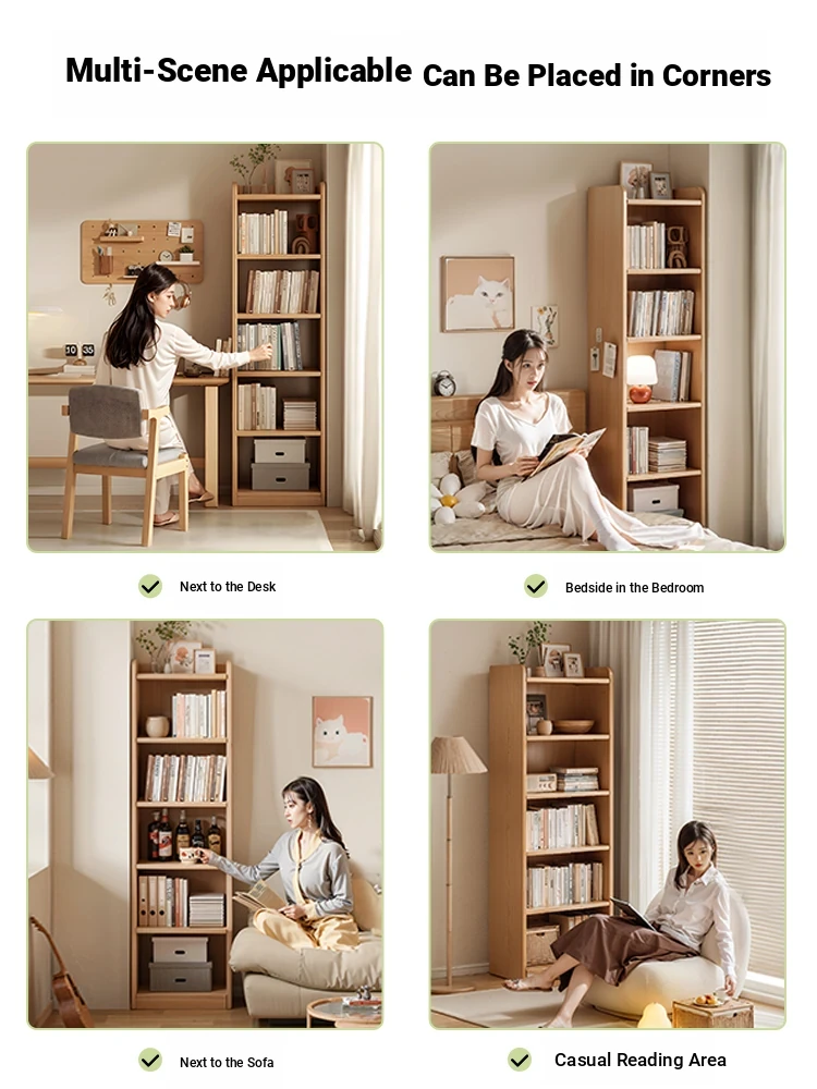 Solid Wood Bookshelf for Students - Space-Saving Wall-Mounted Storage Cabinet, Compact Narrow Organizer Perfect for Home Use