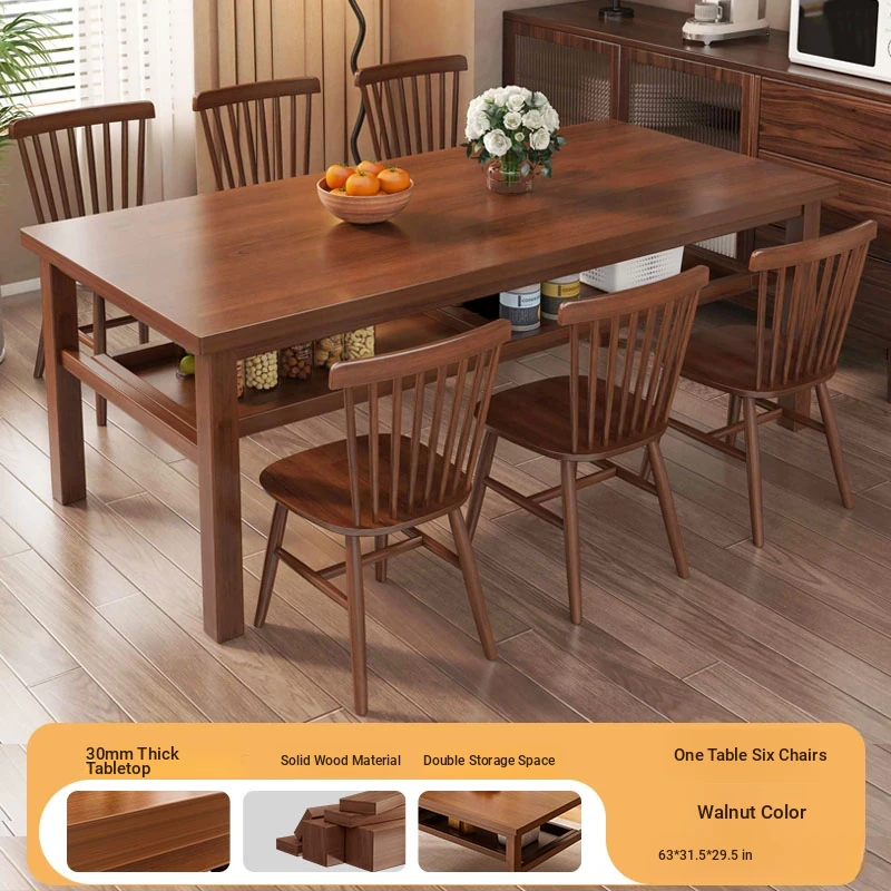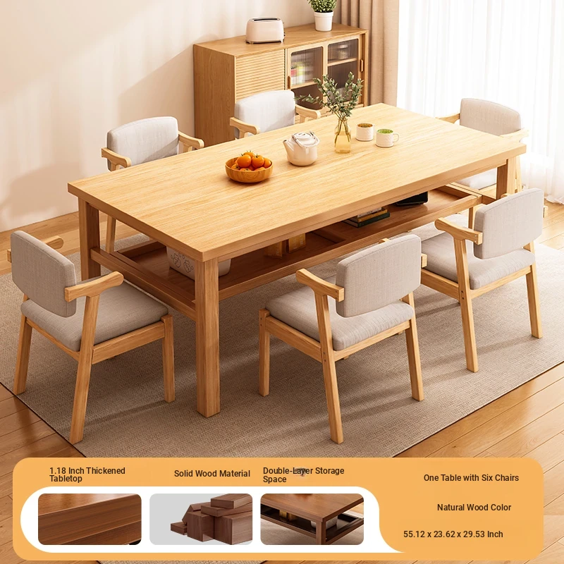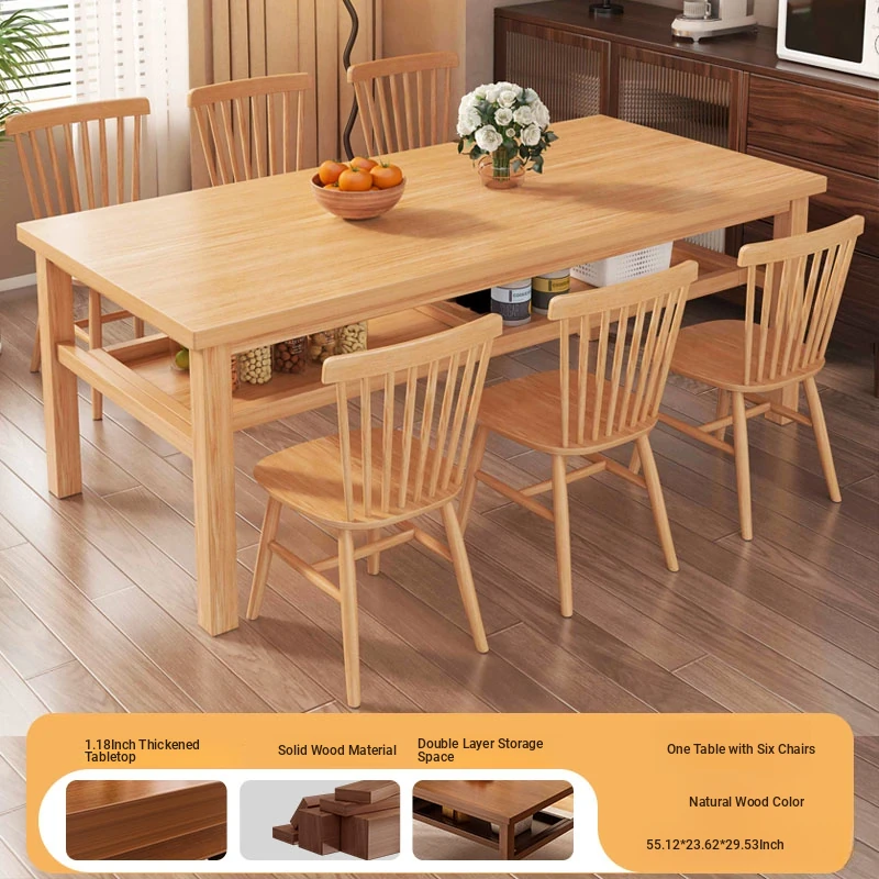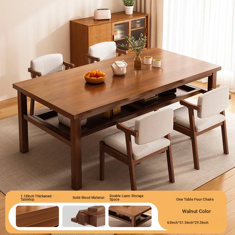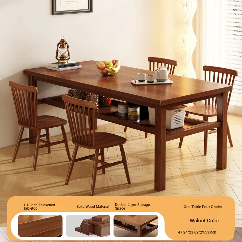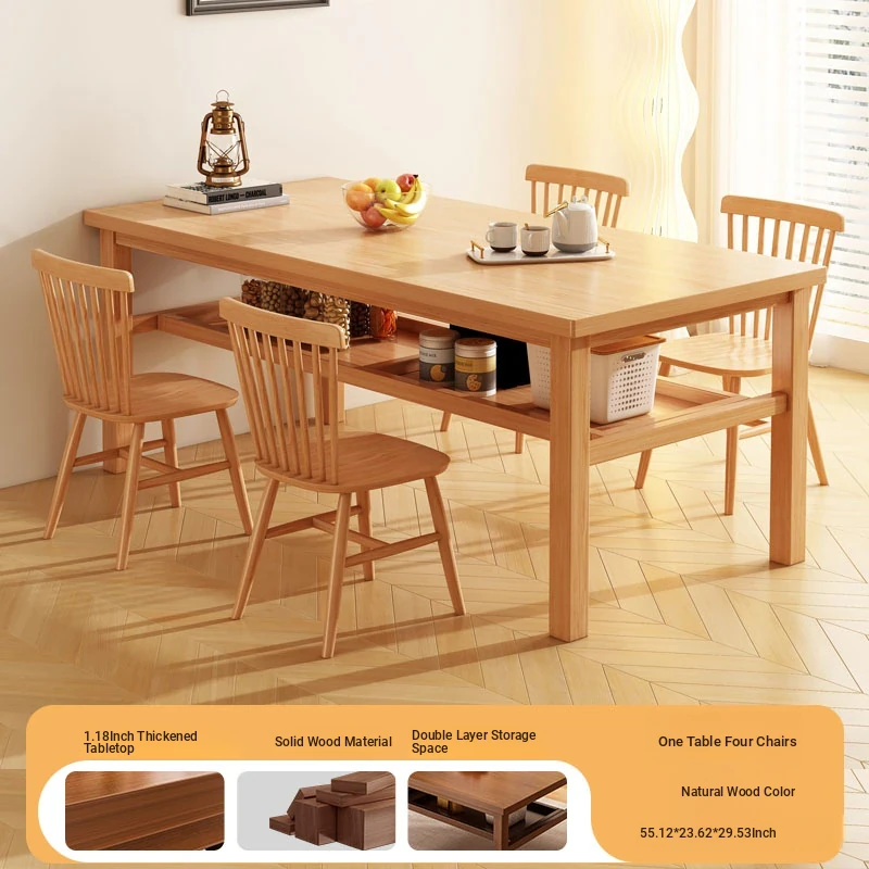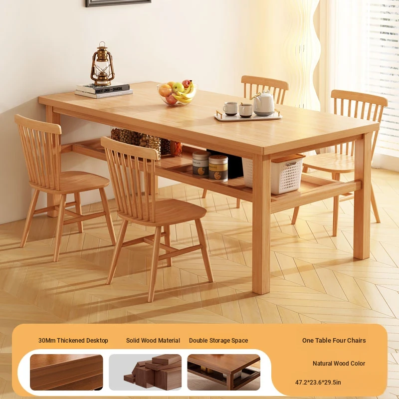 Solid Wood Dining Table Set for Small Homes - Rectangular Table with Four Chairs, Perfect for Dining in Living Room, Features Double-Layer Storage for Convenience