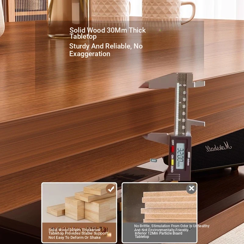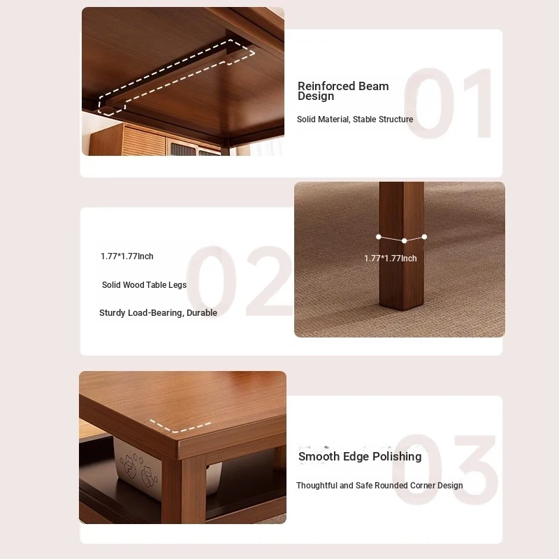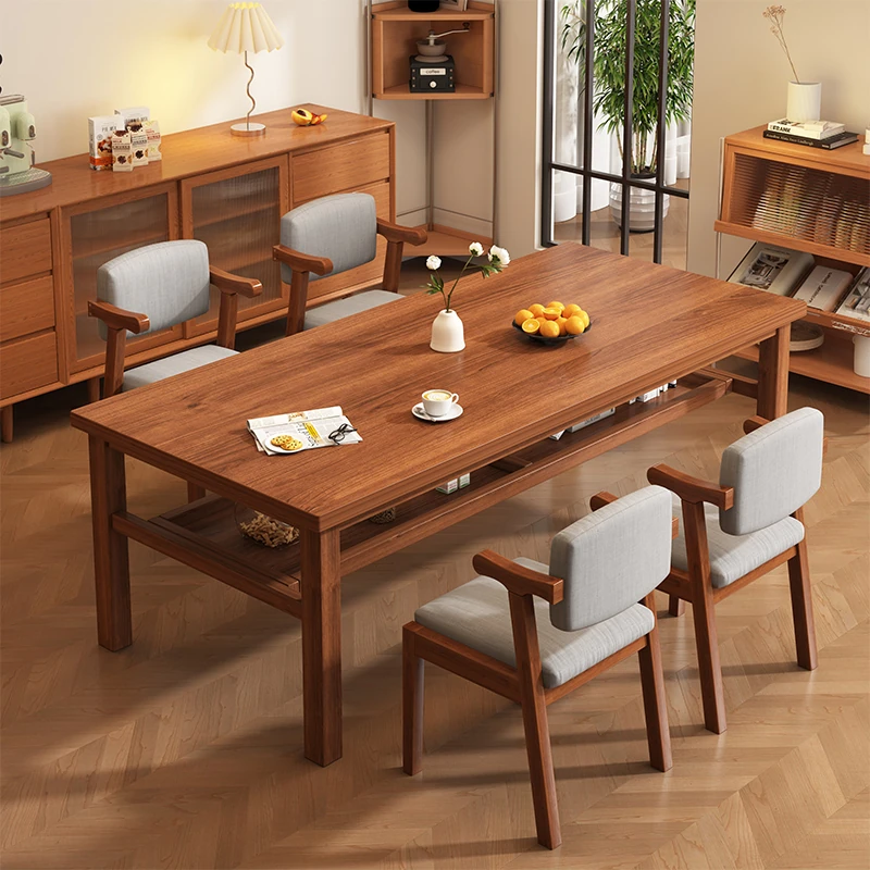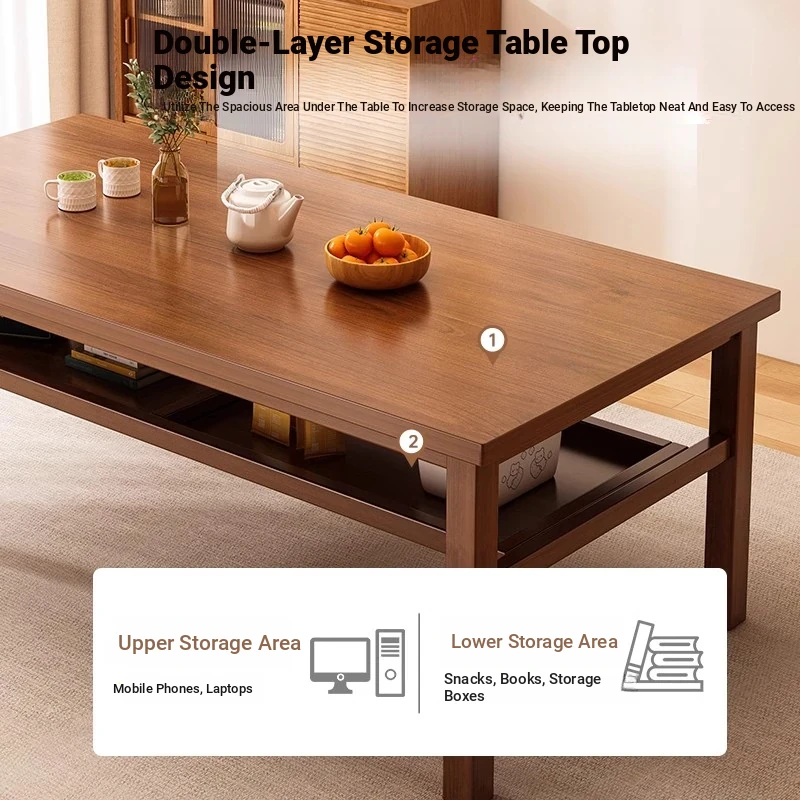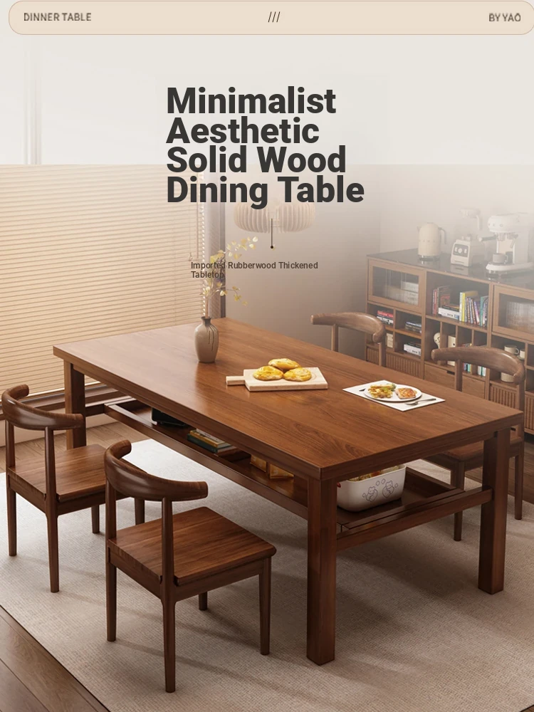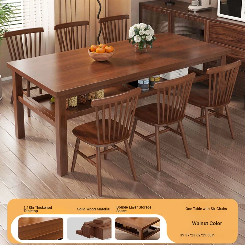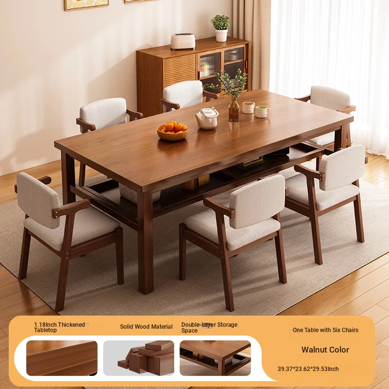 Solid Wood Dining Table Set for Small Homes - Rectangular Table with Four Chairs, Perfect for Dining in Living Room, Features Double-Layer Storage for Convenience
