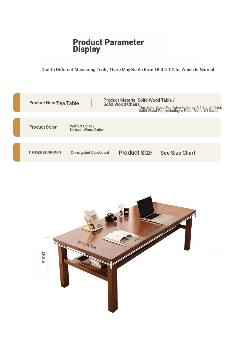 [Full solid wood single table] log color⭐62.99in*31.50in*29.53in