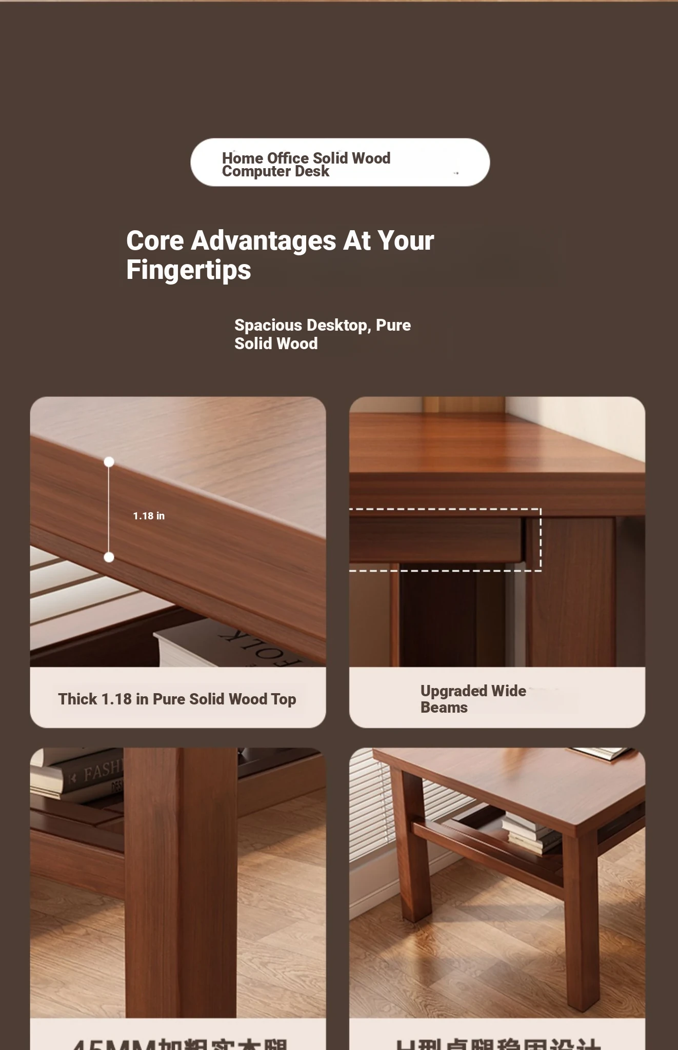 [Full solid wood single table] walnut color⭐47.24in*23.62in*29.53in