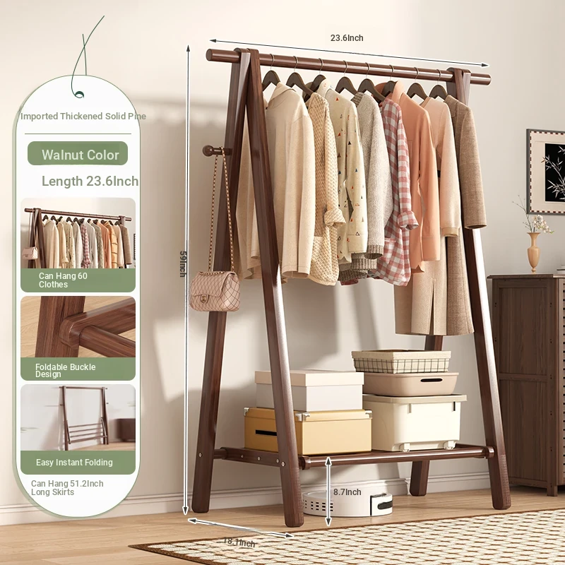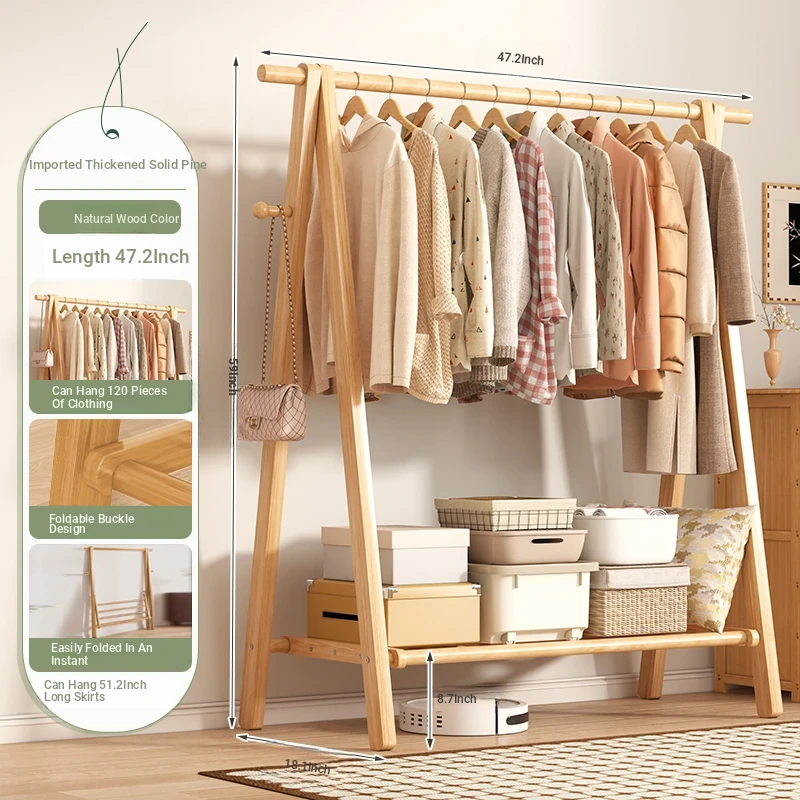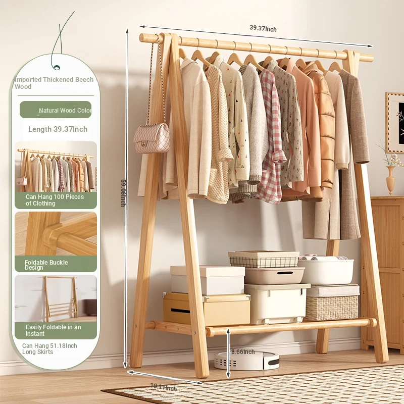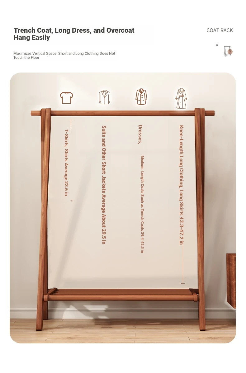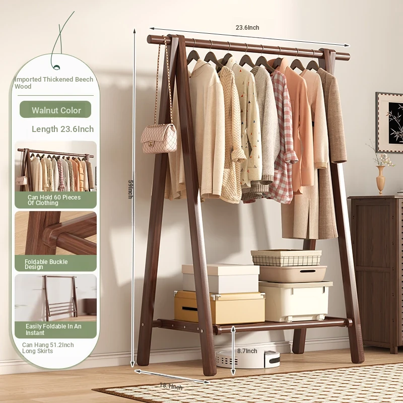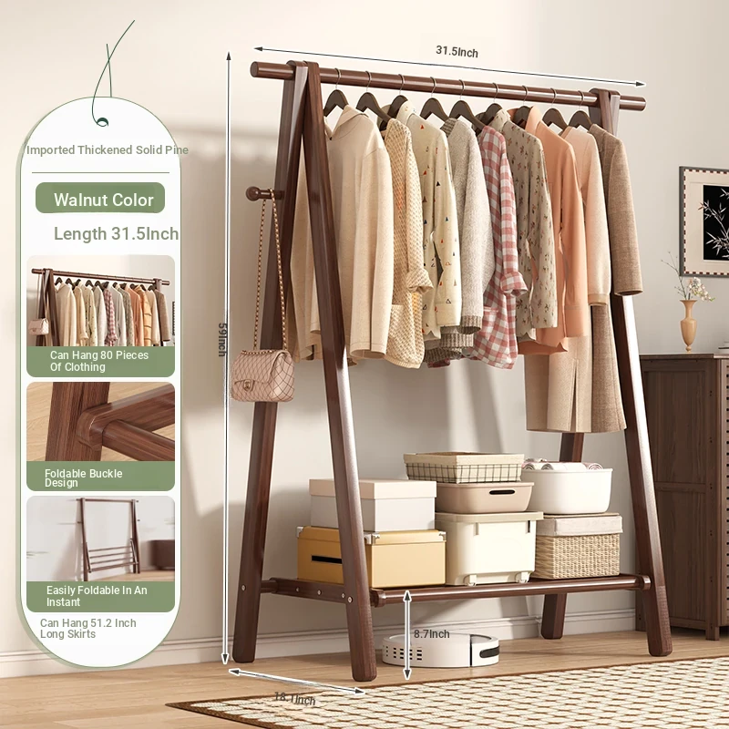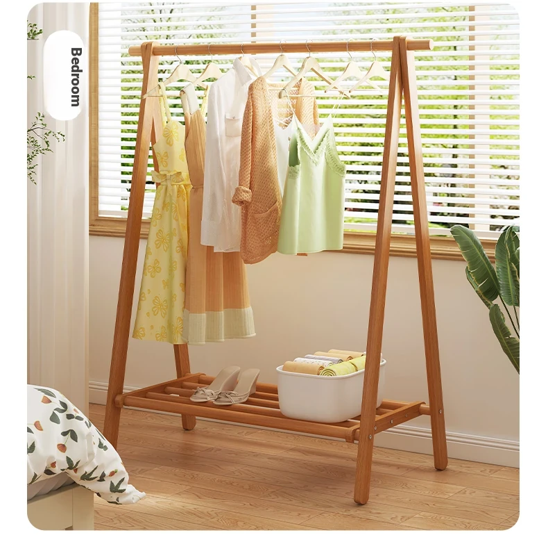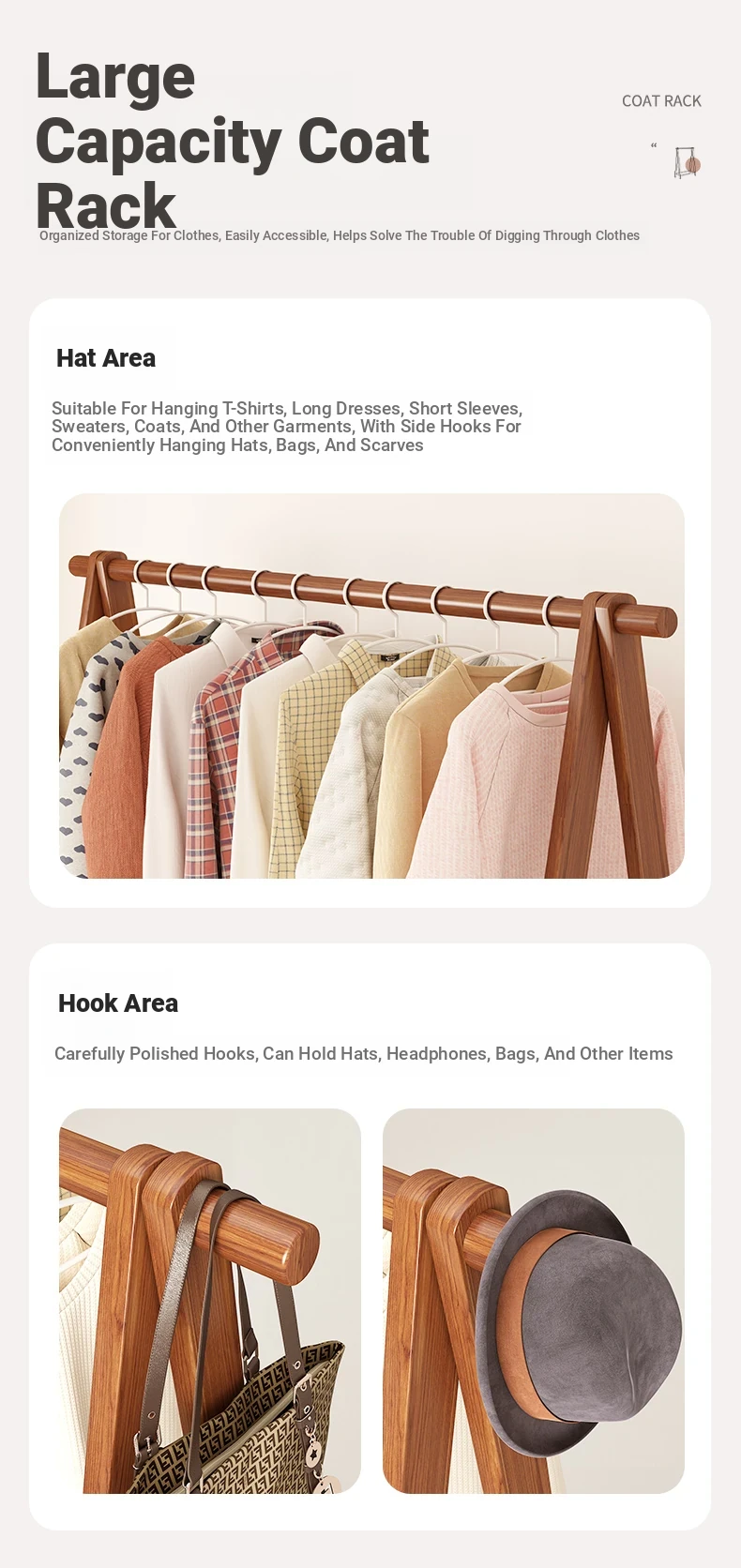 Solid Wood Floor Hanger - Stylish and Simple Clothes Rack for Bedroom, Ideal for Home Use, Indoor Coat and Garment Stand, Durable Wooden Drying Rack for Your Everyday Needs