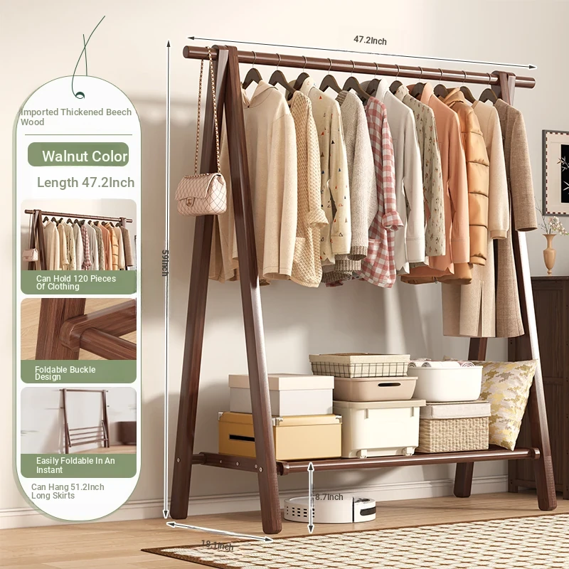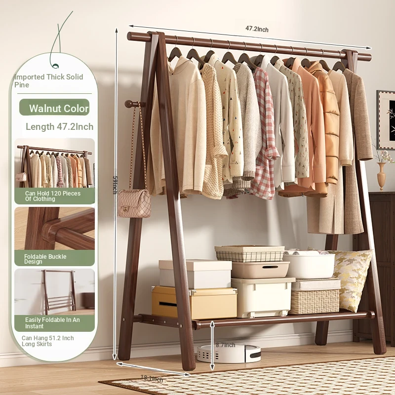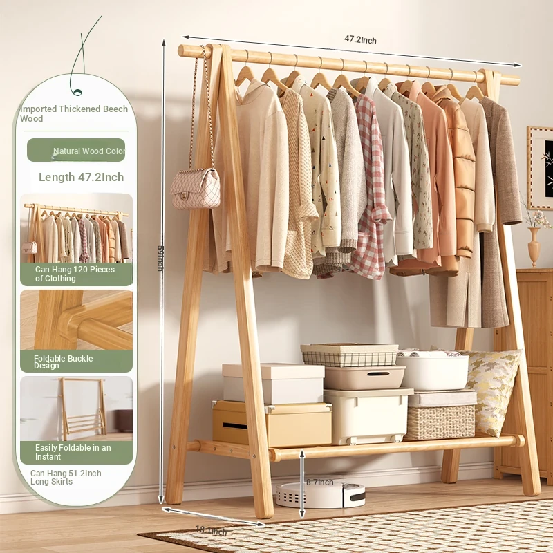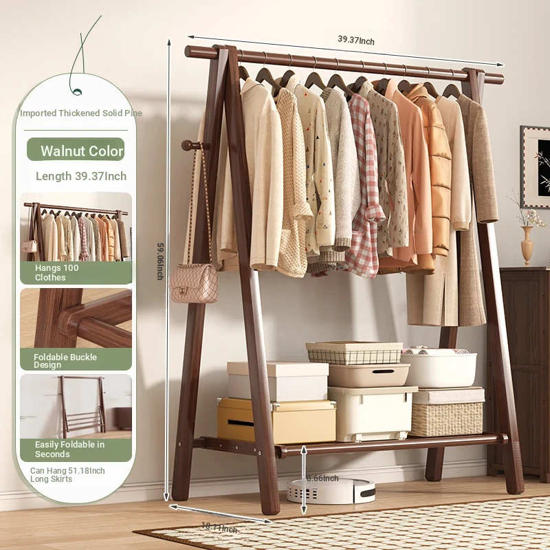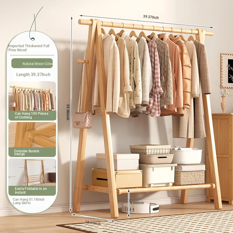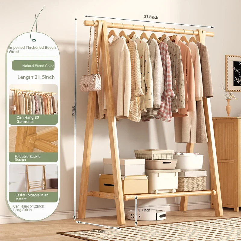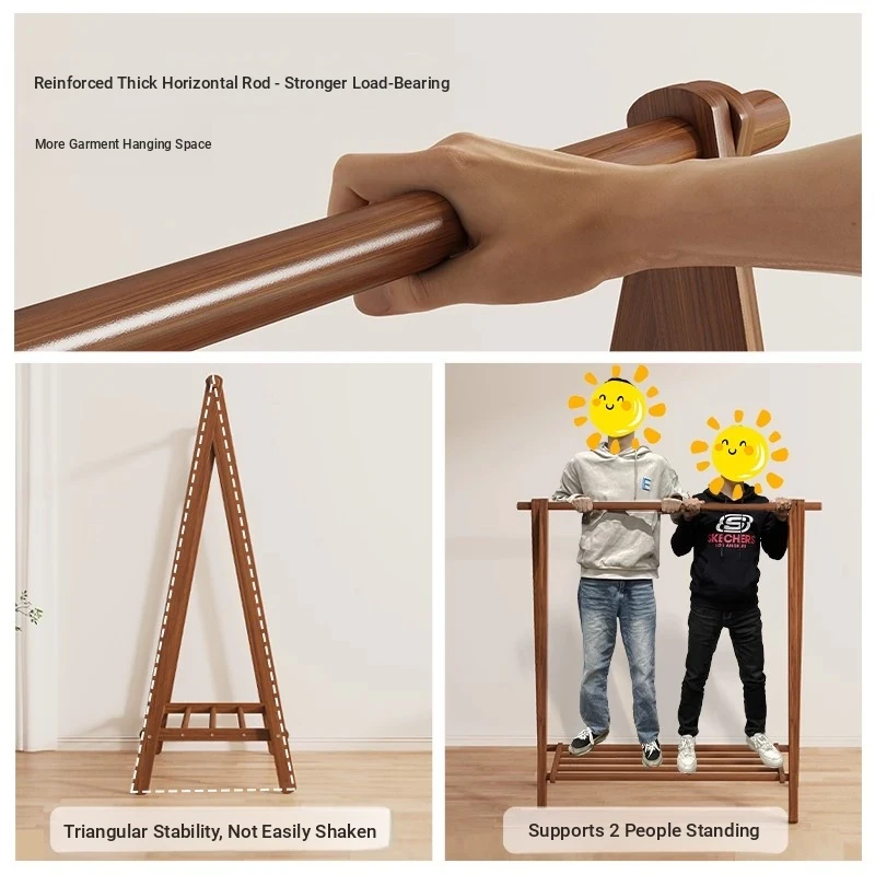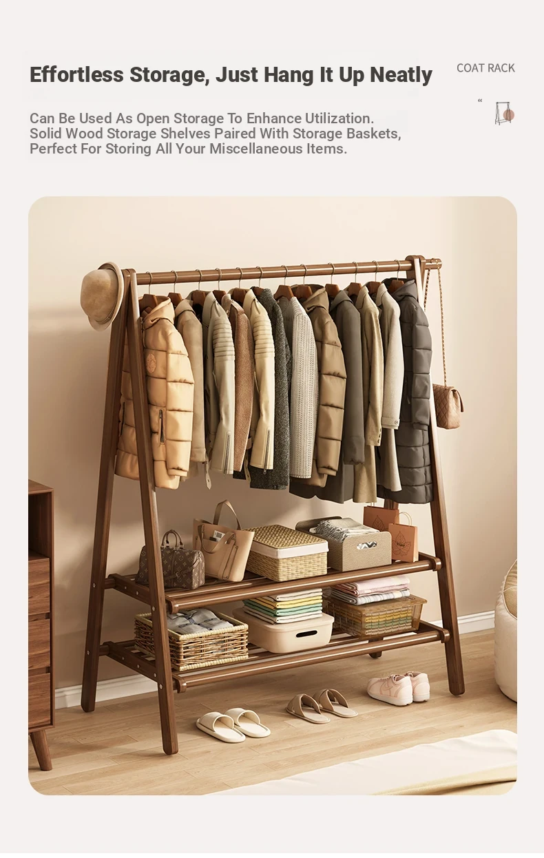 Solid Wood Floor Hanger - Stylish and Simple Clothes Rack for Bedroom, Ideal for Home Use, Indoor Coat and Garment Stand, Durable Wooden Drying Rack for Your Everyday Needs