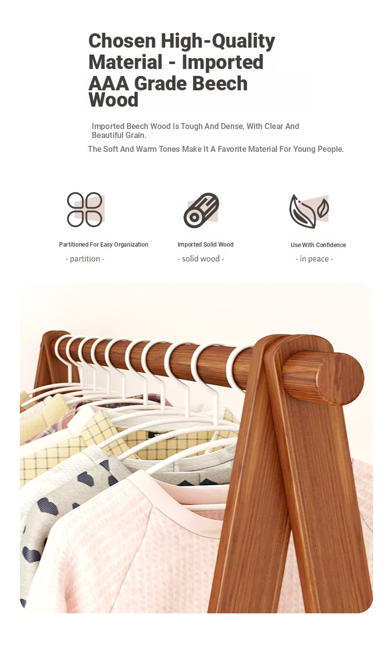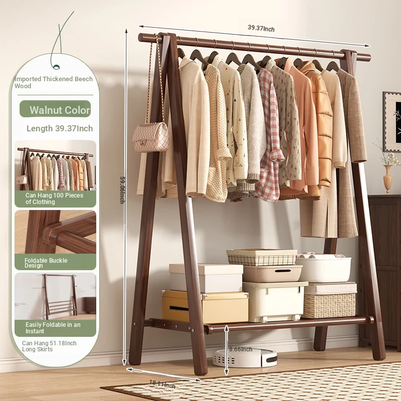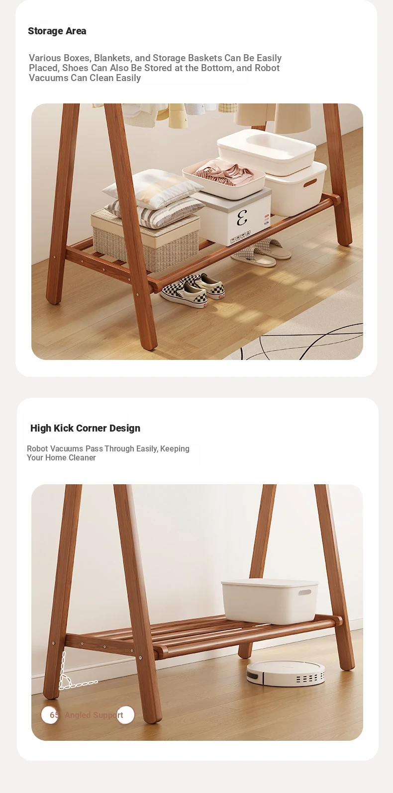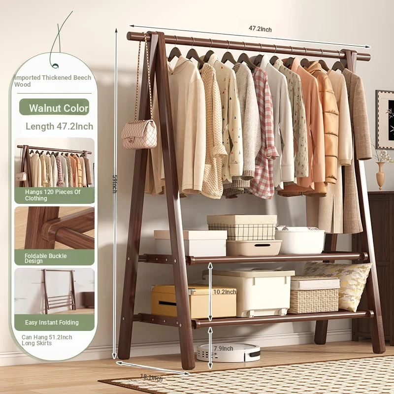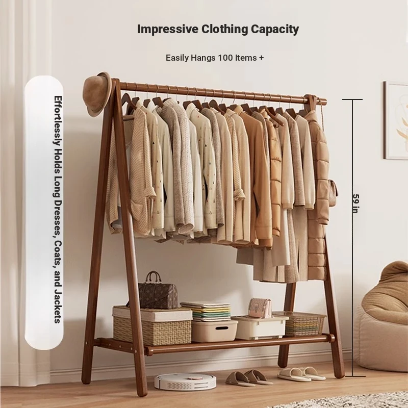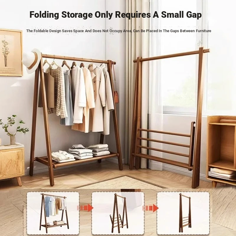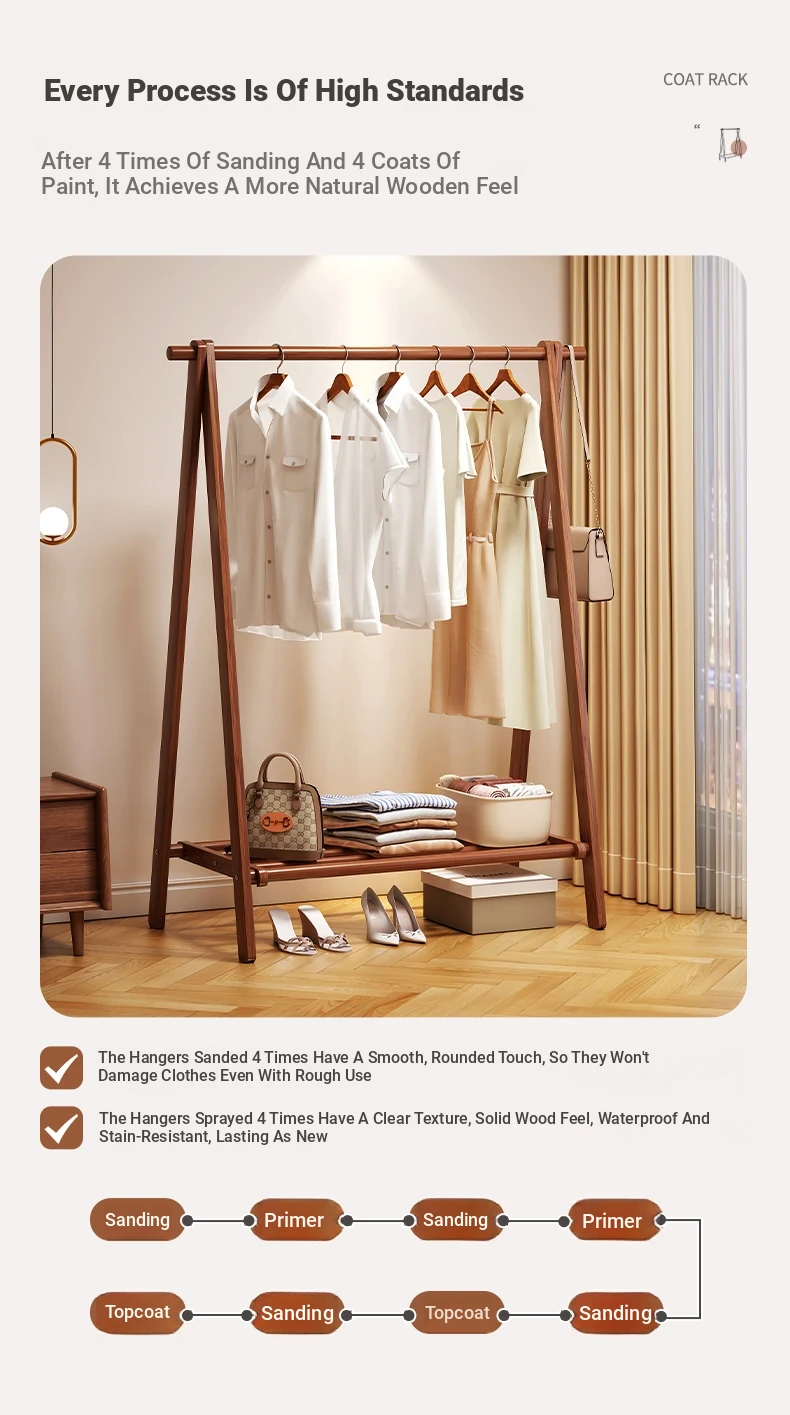 Solid Wood Floor Hanger - Stylish and Simple Clothes Rack for Bedroom, Ideal for Home Use, Indoor Coat and Garment Stand, Durable Wooden Drying Rack for Your Everyday Needs