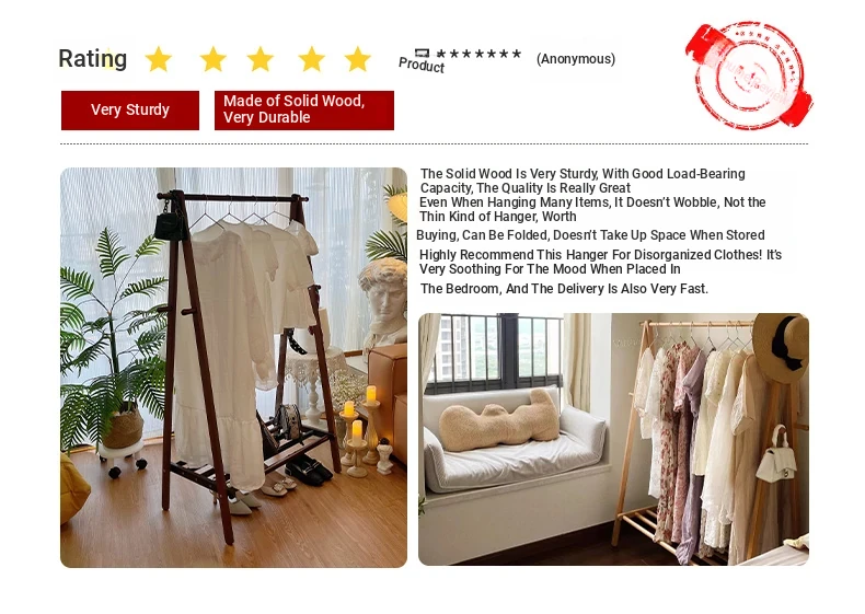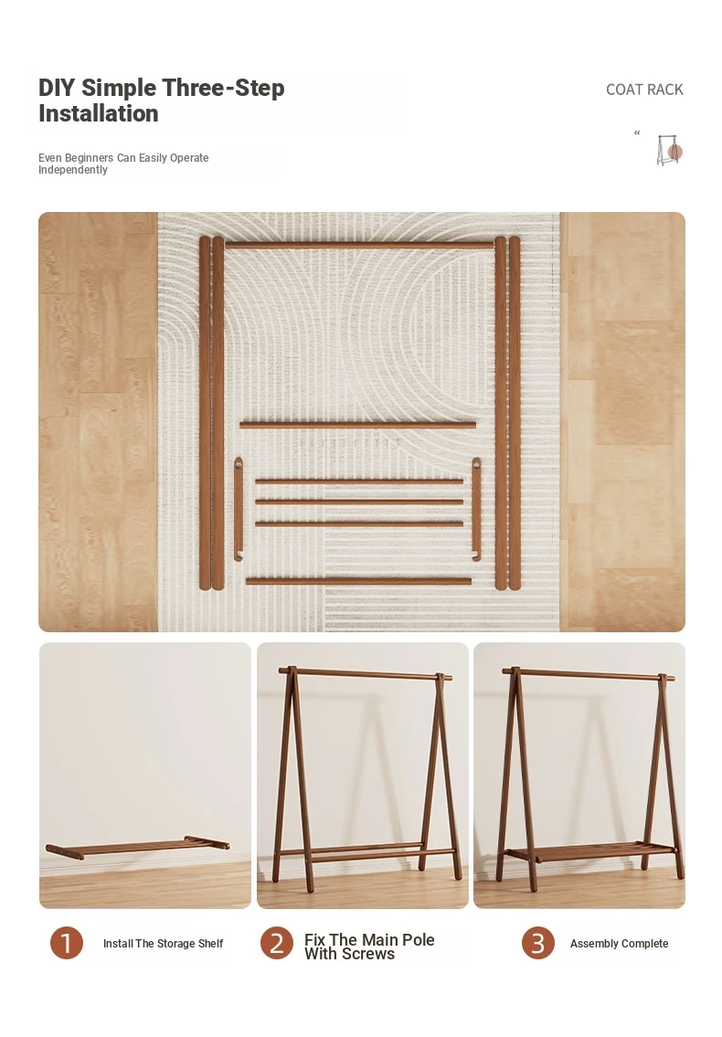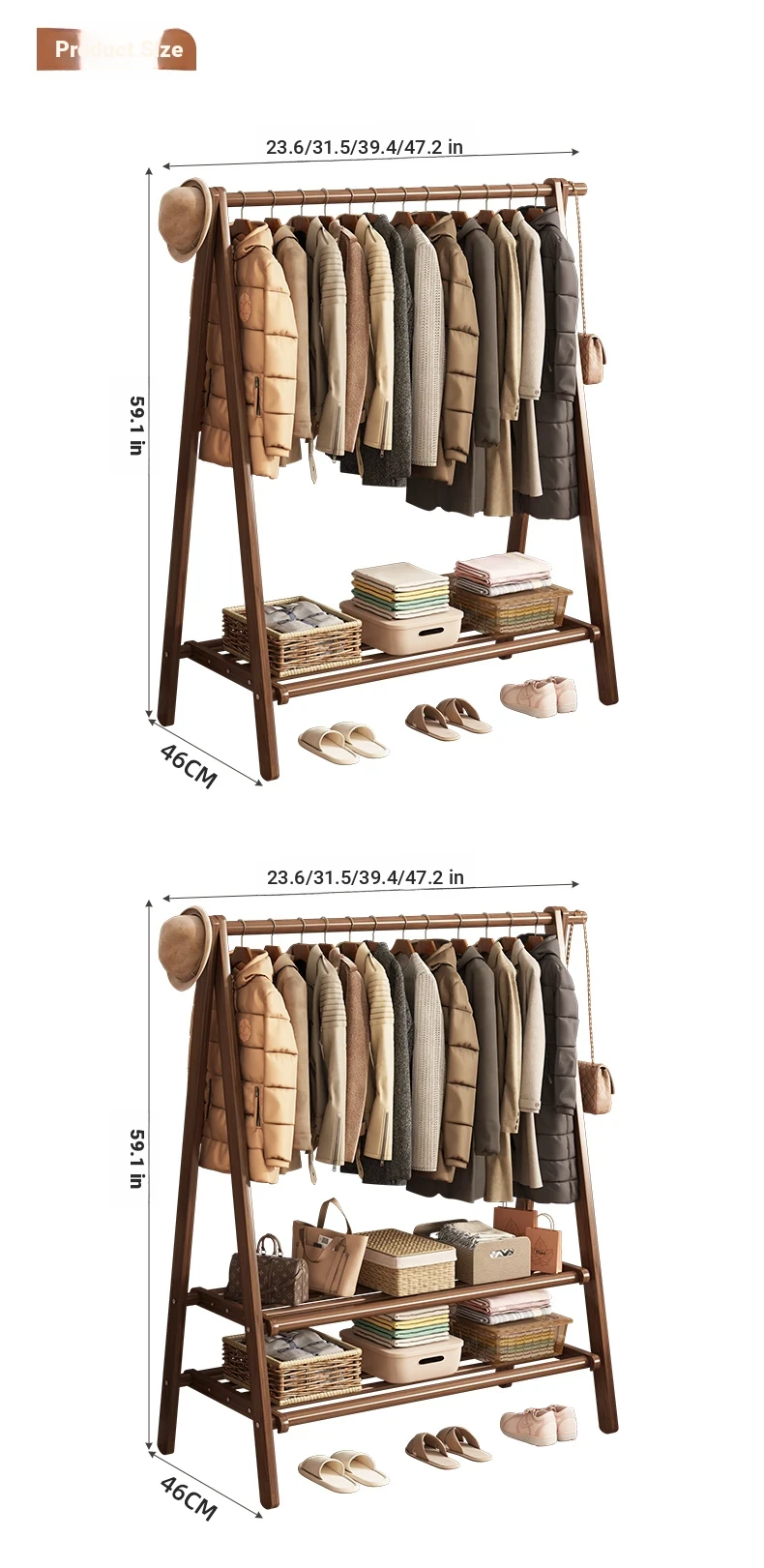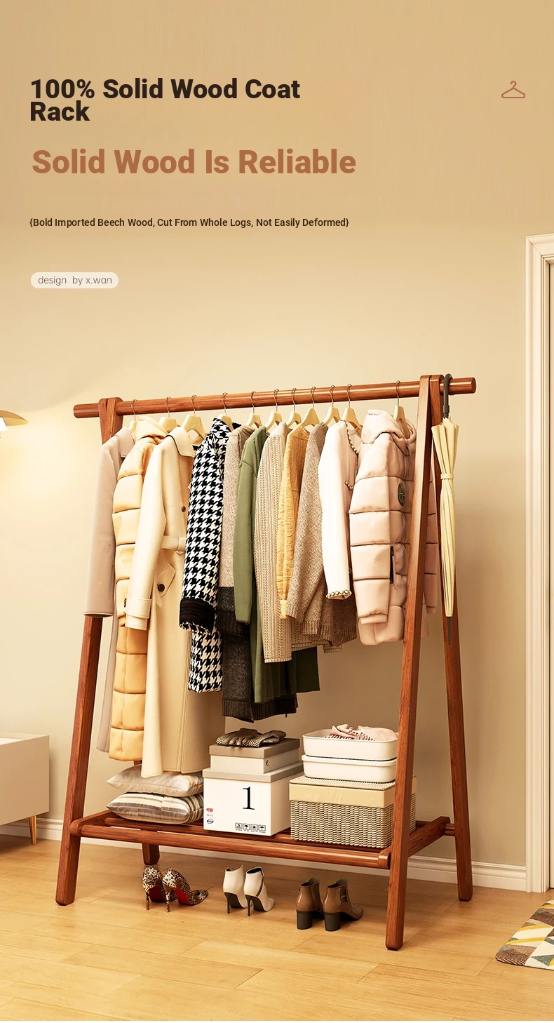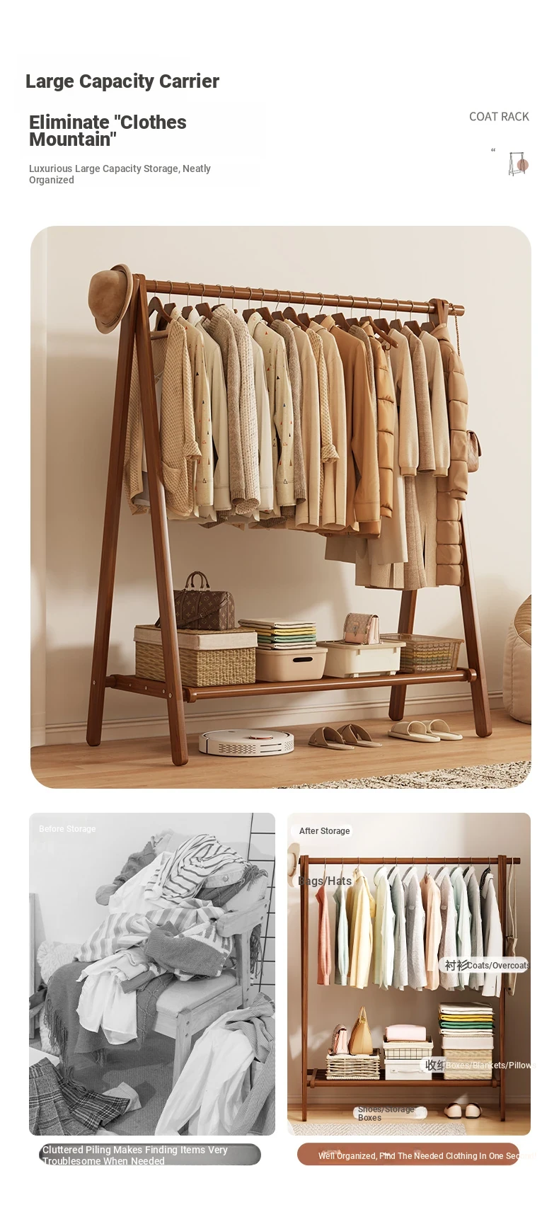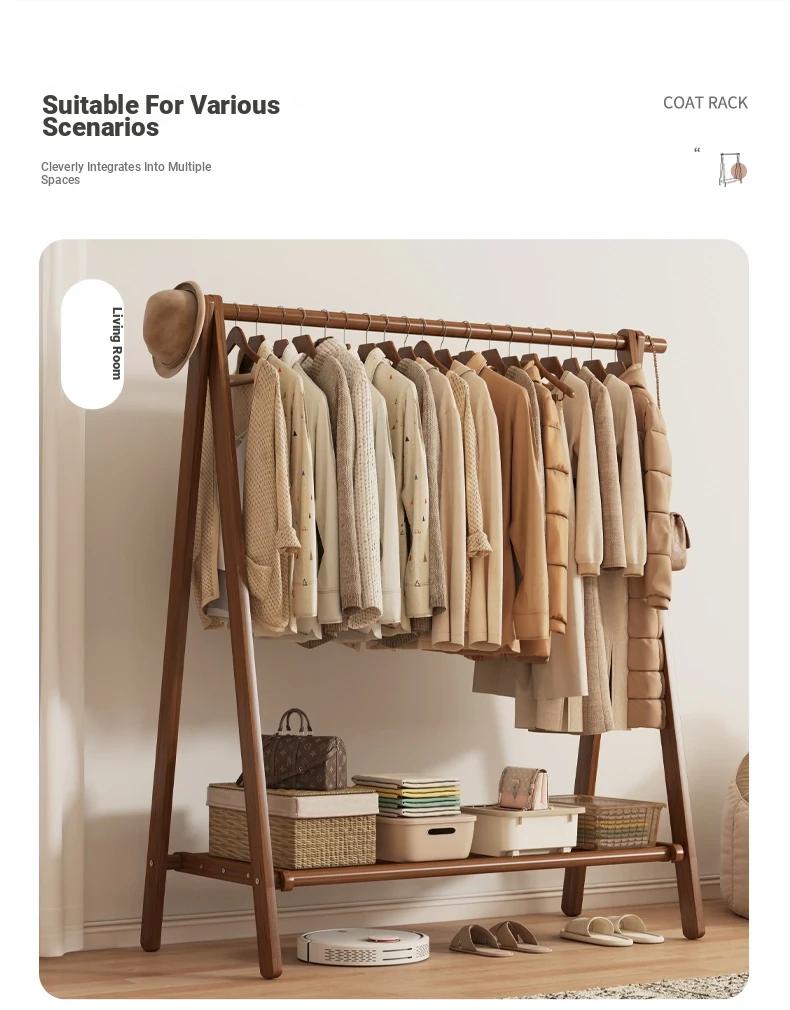 Solid Wood Floor Hanger - Stylish and Simple Clothes Rack for Bedroom, Ideal for Home Use, Indoor Coat and Garment Stand, Durable Wooden Drying Rack for Your Everyday Needs