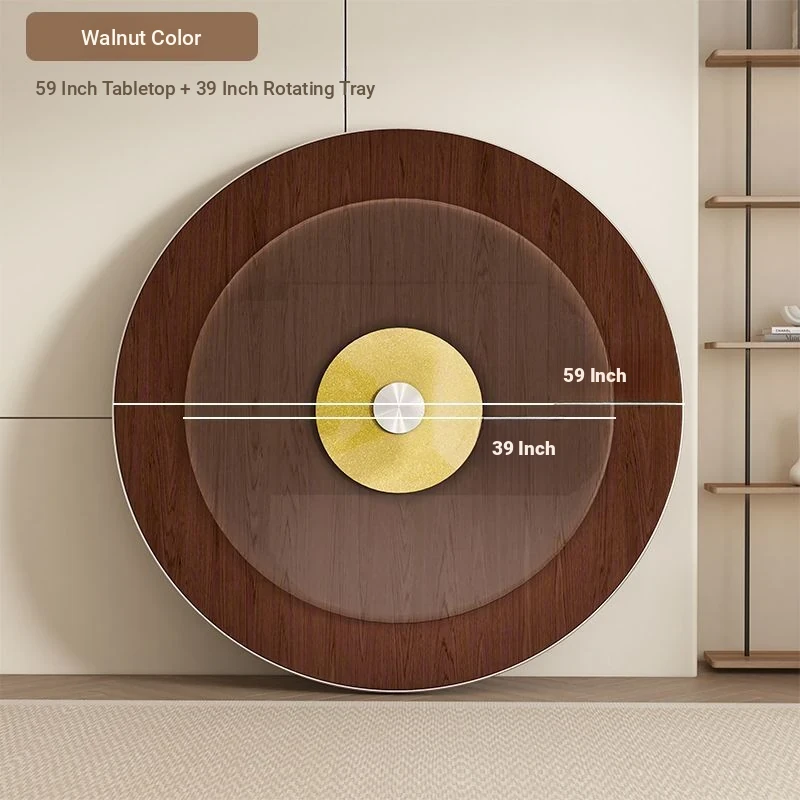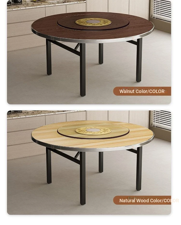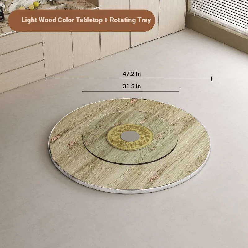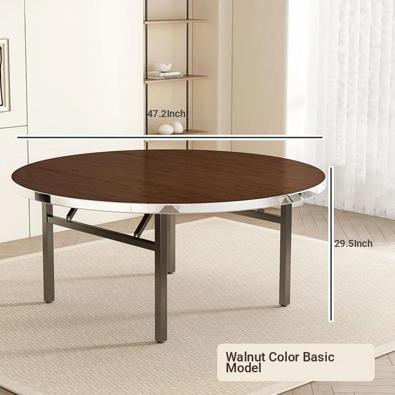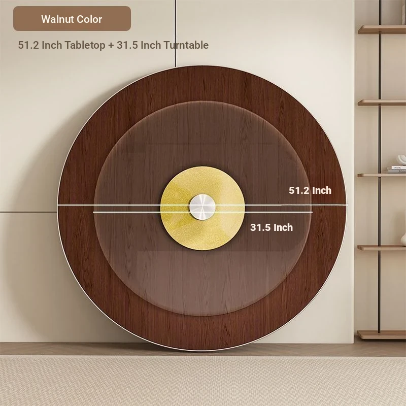 47.24 in desktop +31.50 in turntable + square table feet/steel edge walnut color (hot sale)