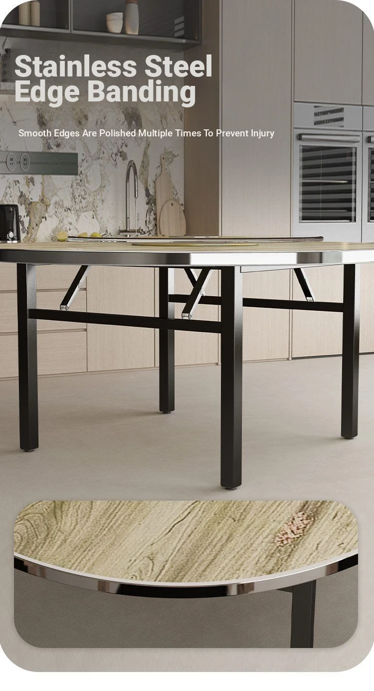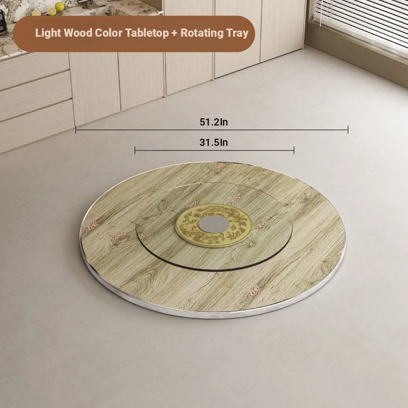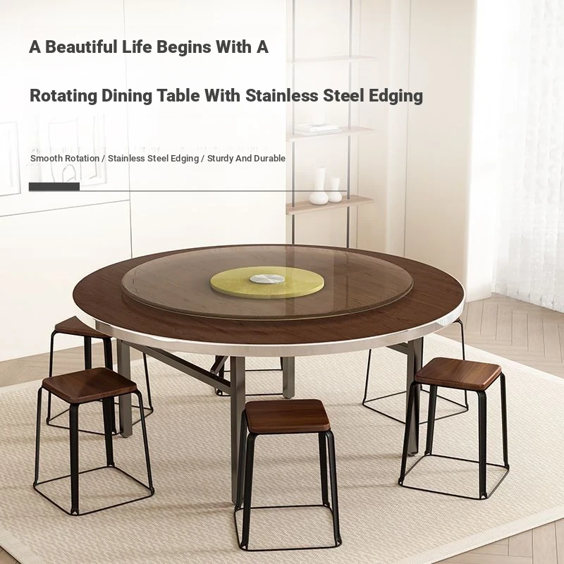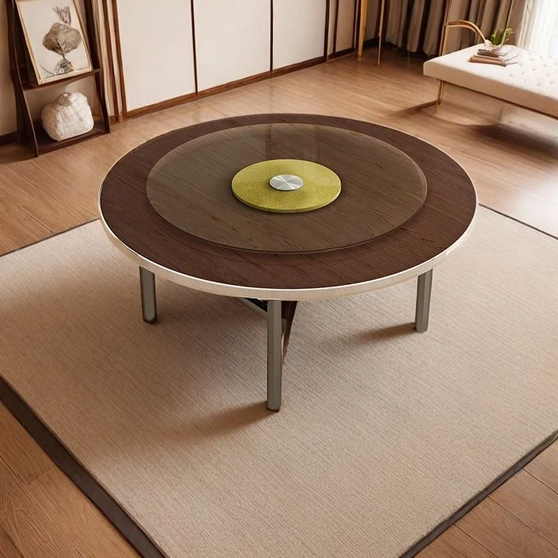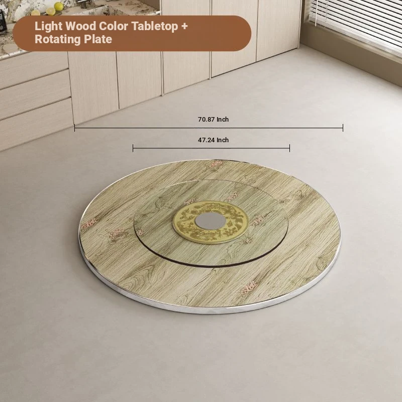 47.24 in desktop +31.50 in turntable + square table feet/steel edge walnut color (hot sale)